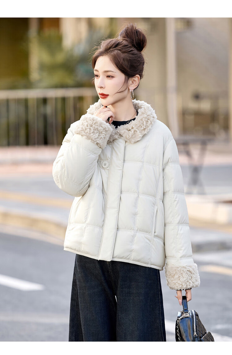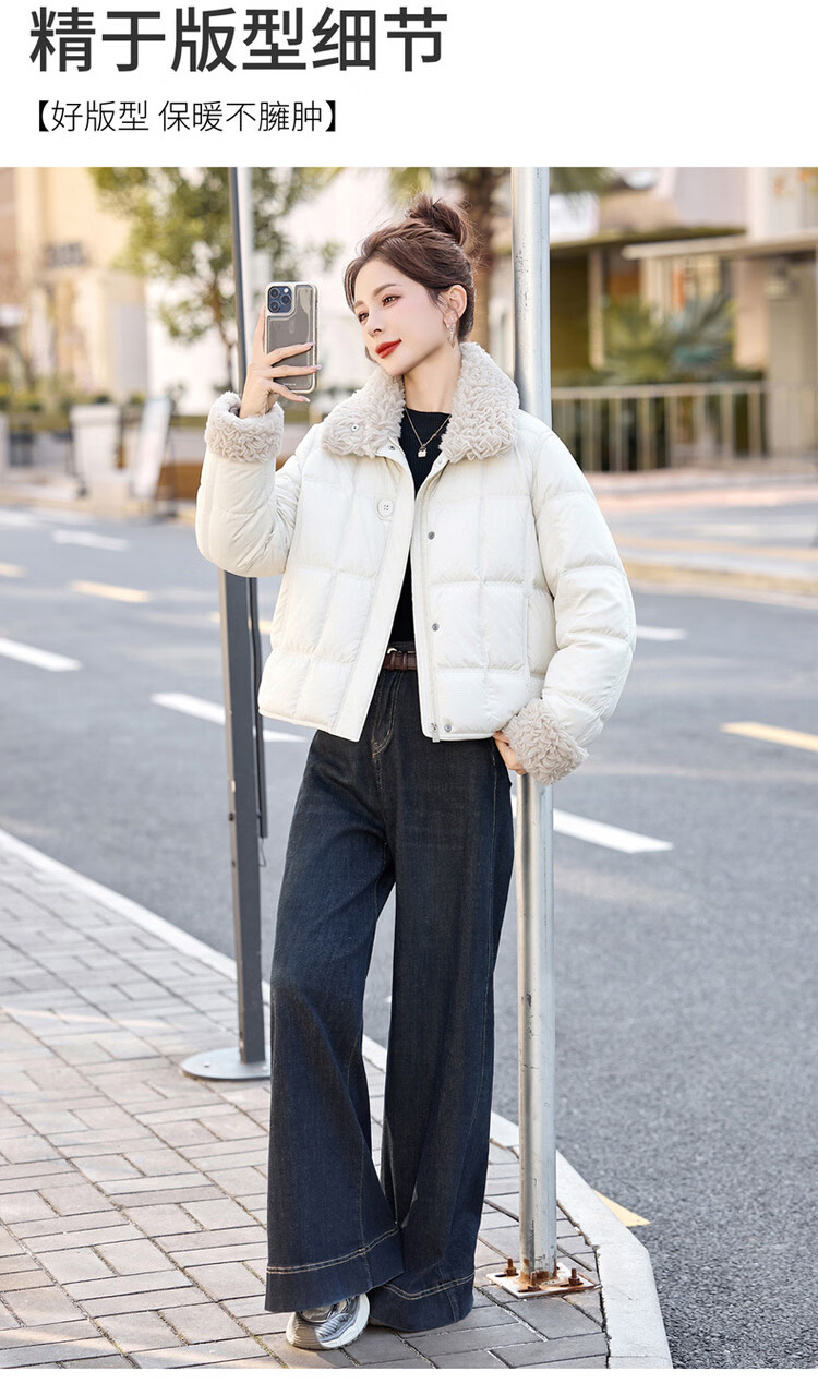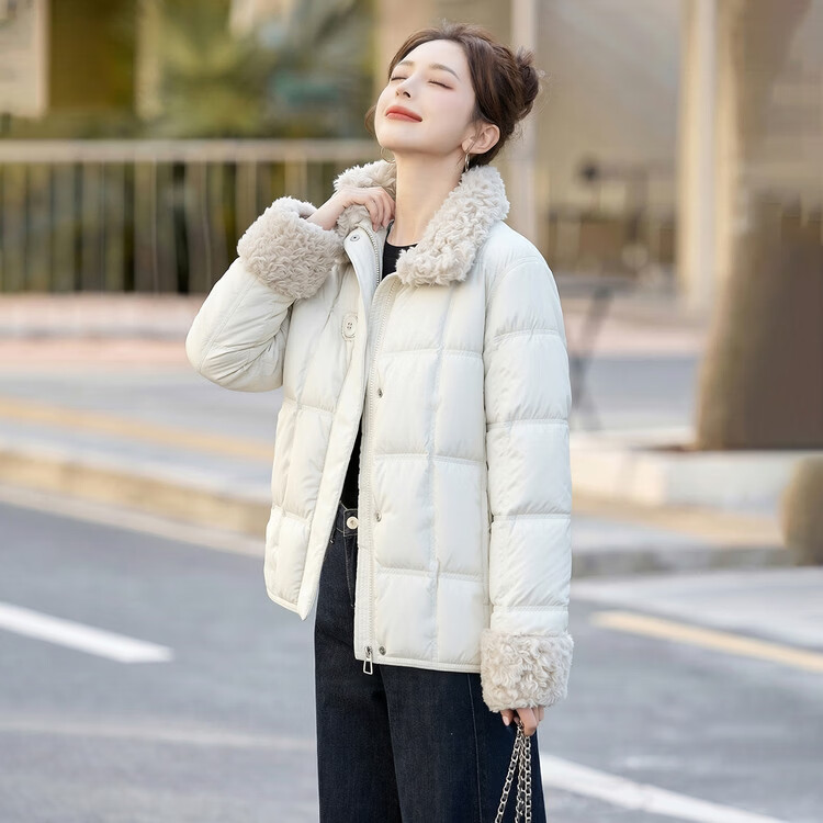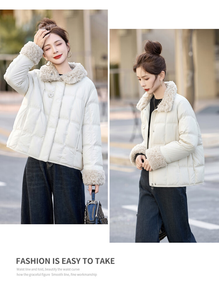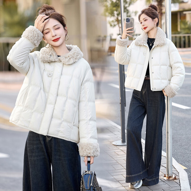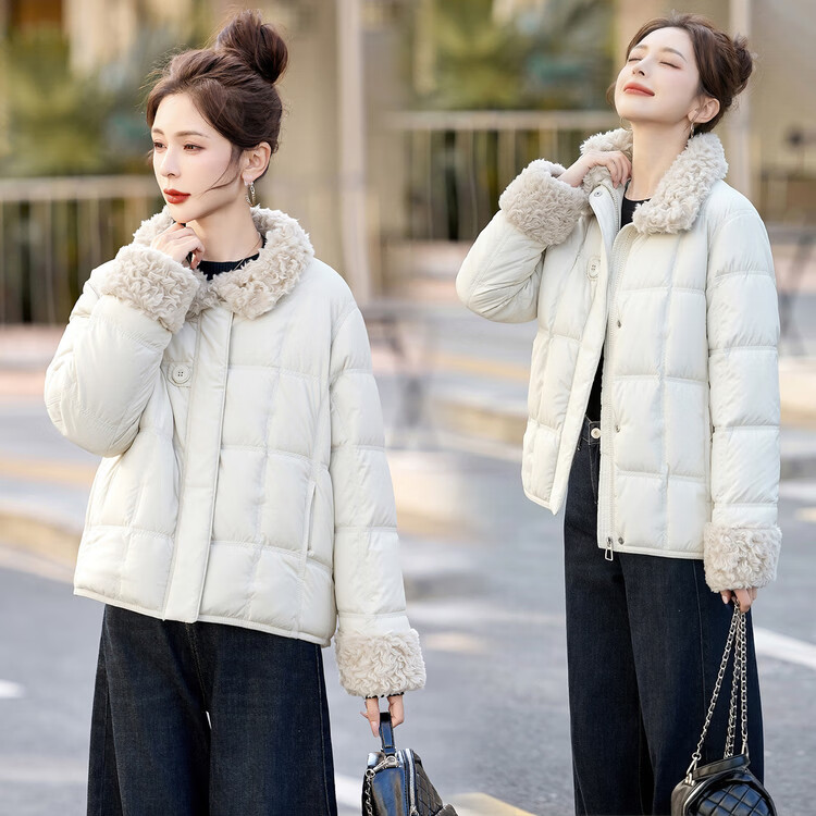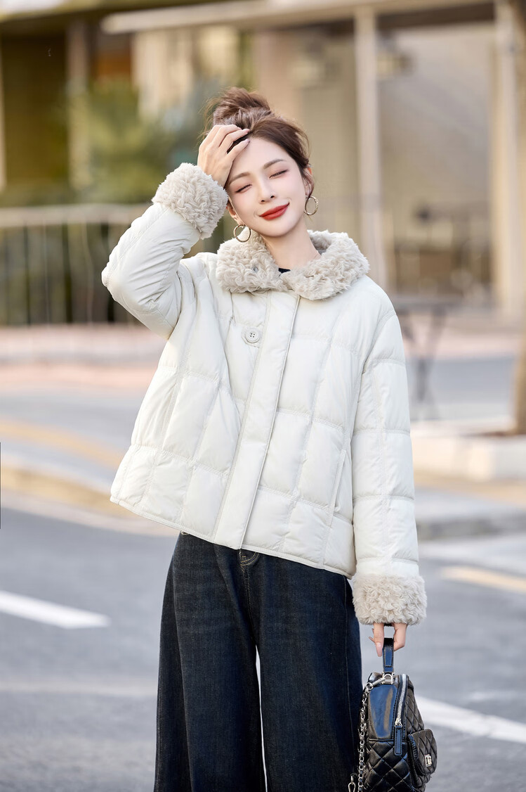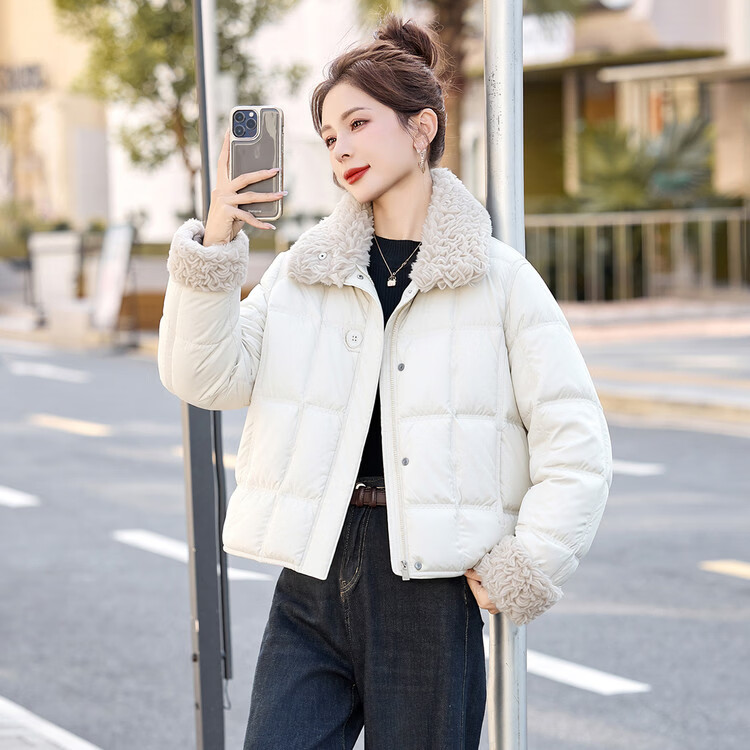 Hengyuan Xianggan super good-looking down jacket women's short 2026 winter new style small thickened warm white duck down jacket beige L