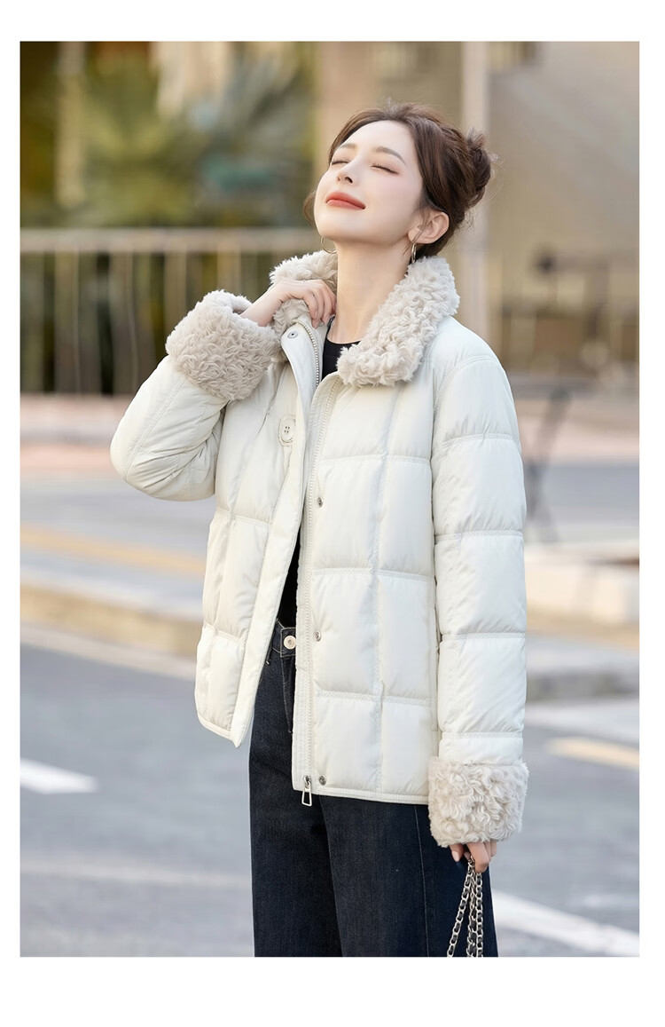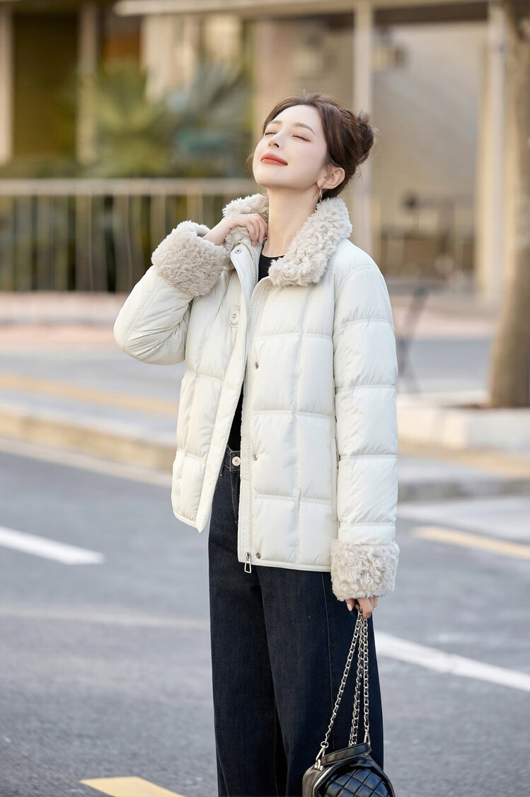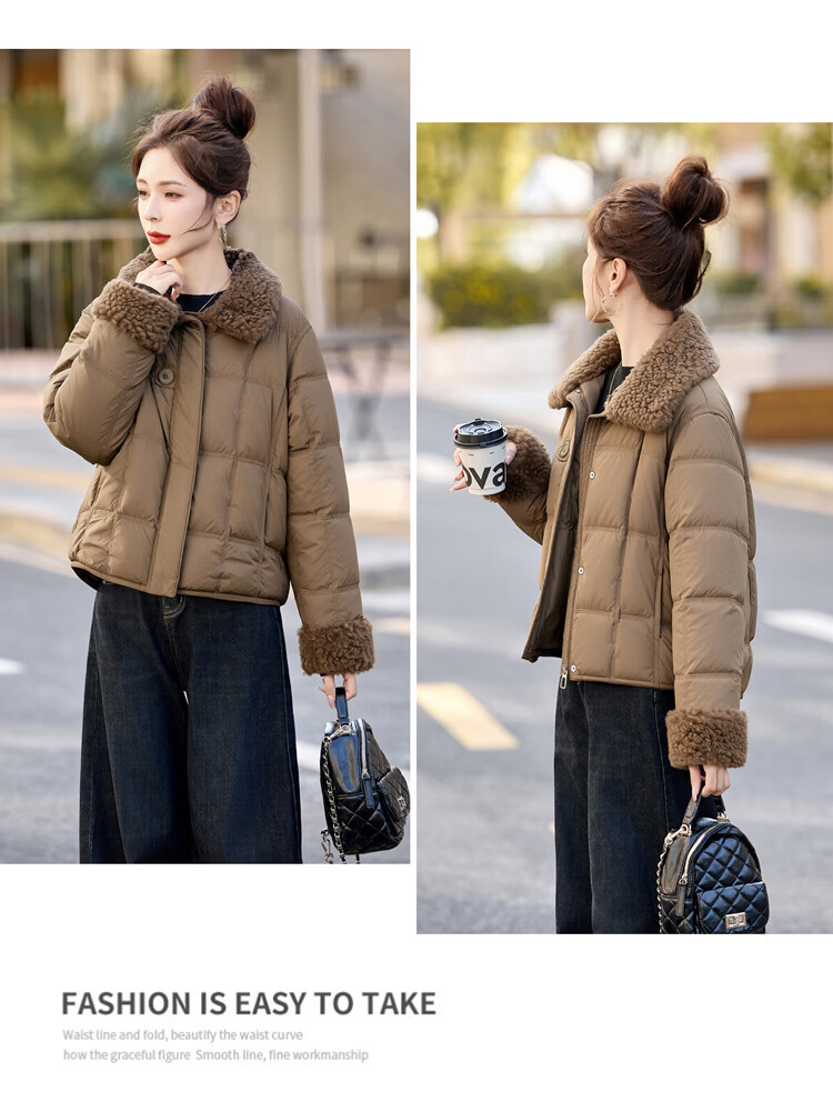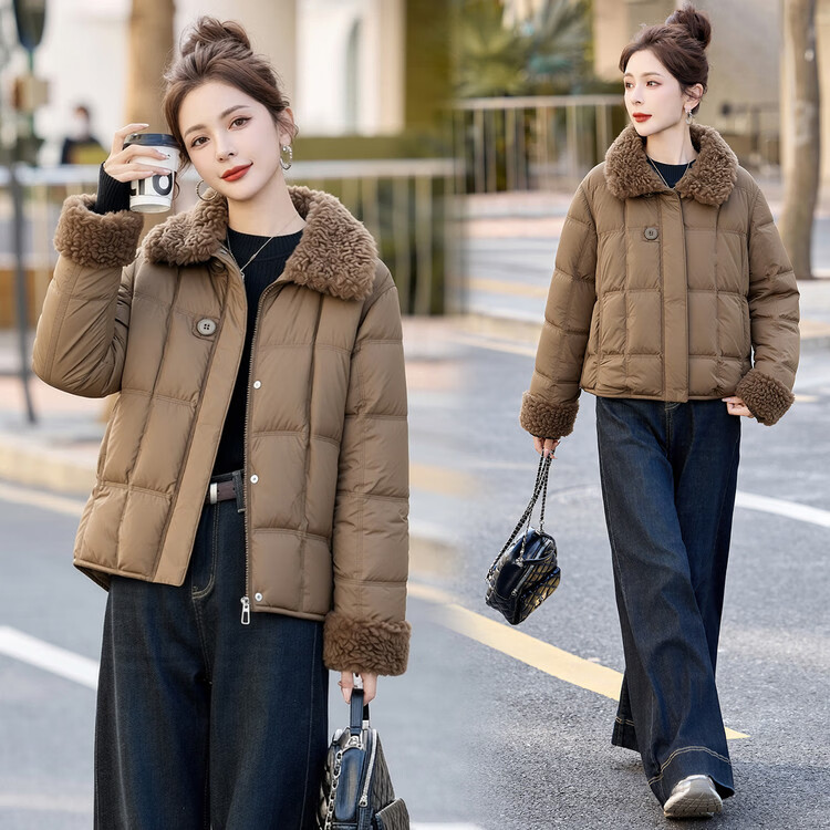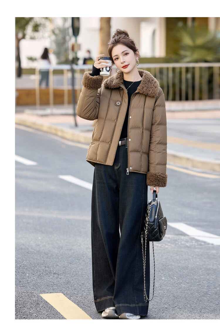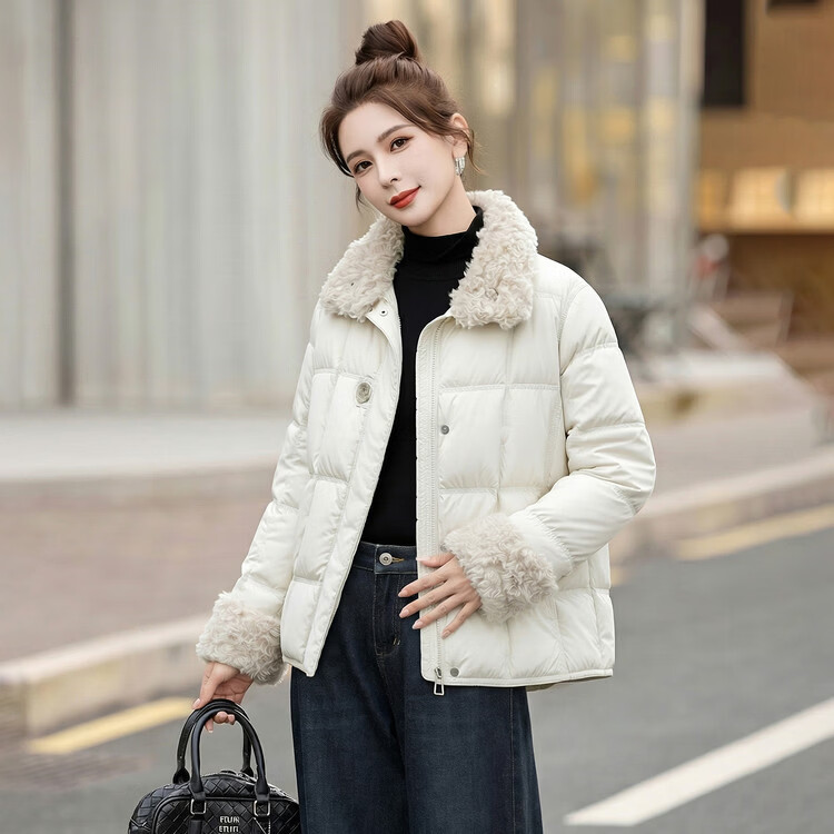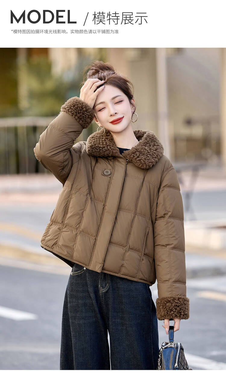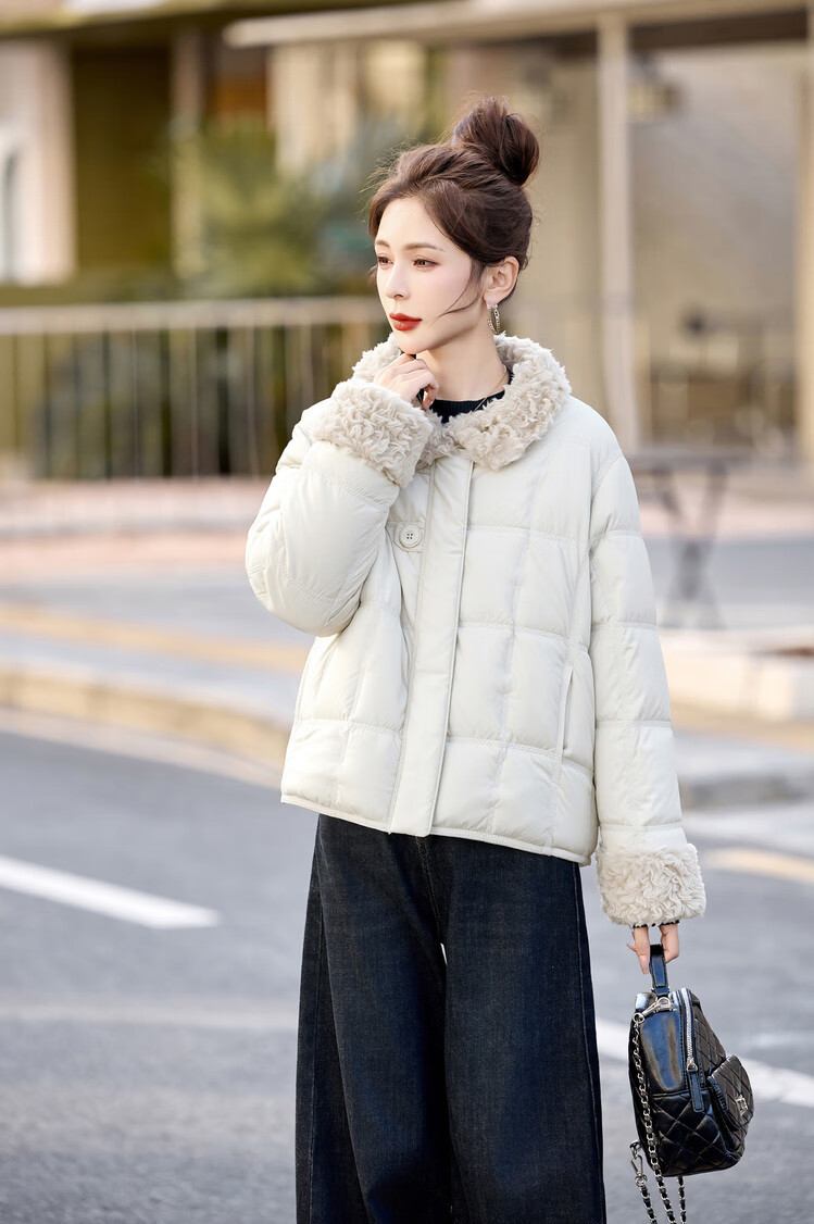 Hengyuan Xianggan super good-looking down jacket women's short 2026 winter new style small thickened warm white duck down jacket beige L