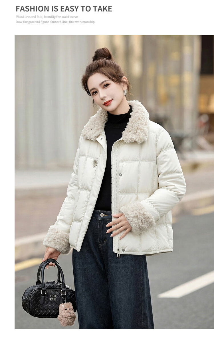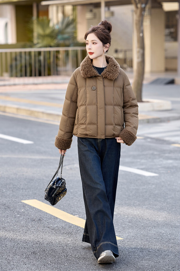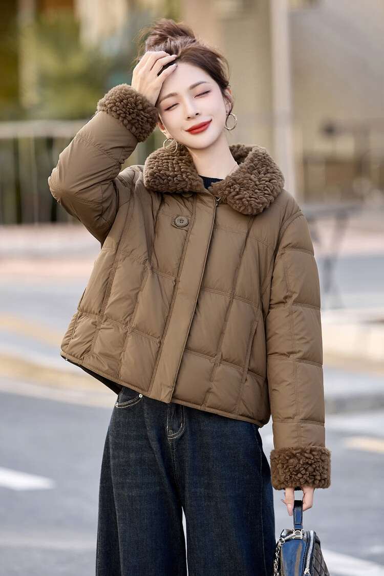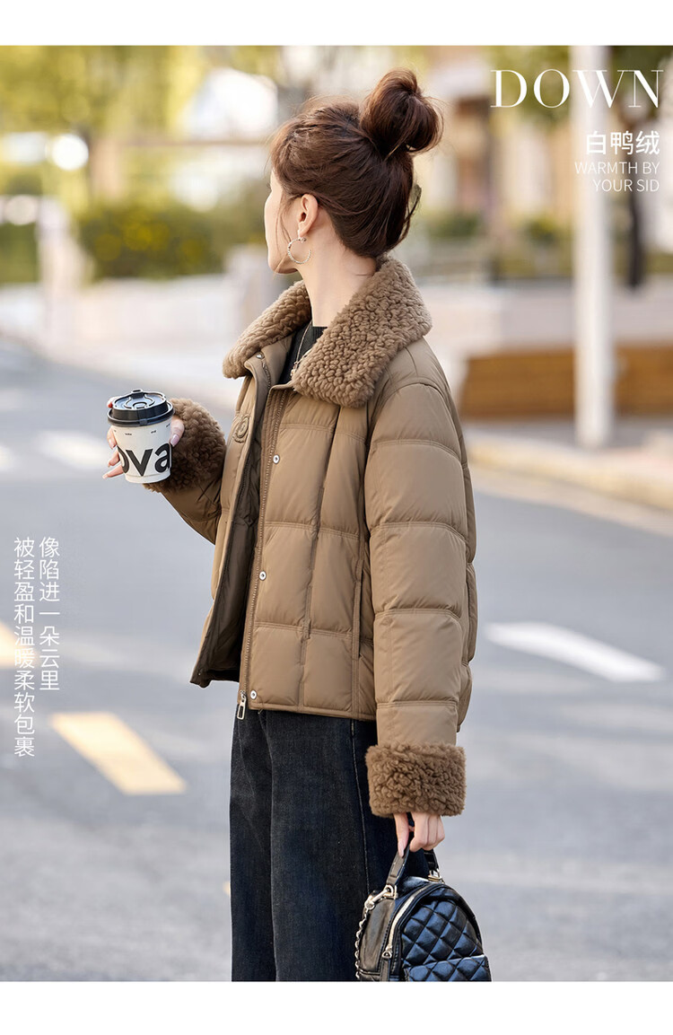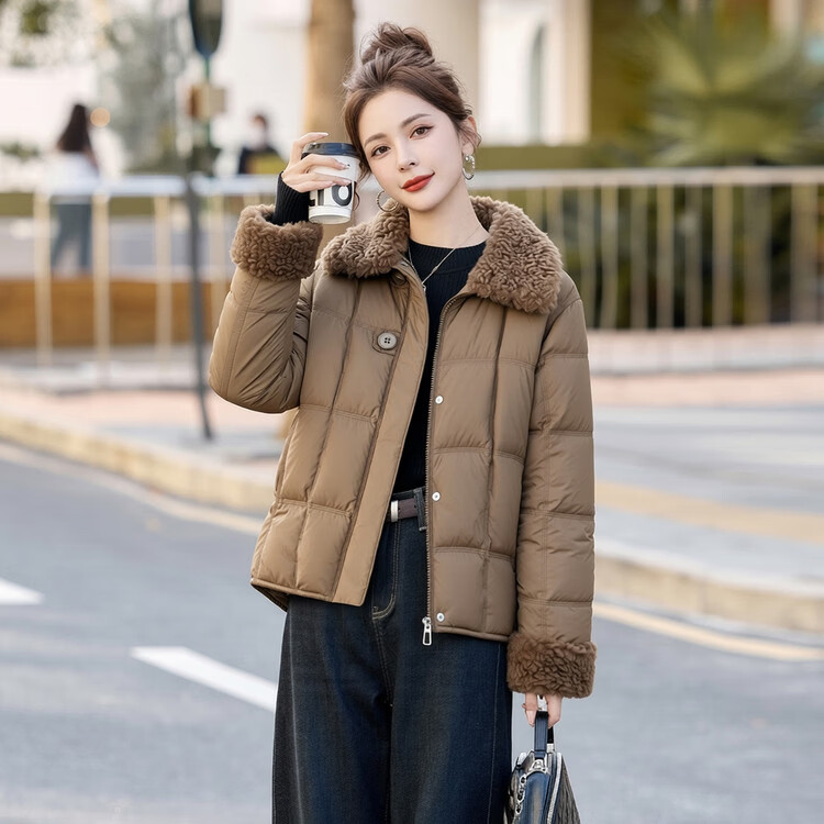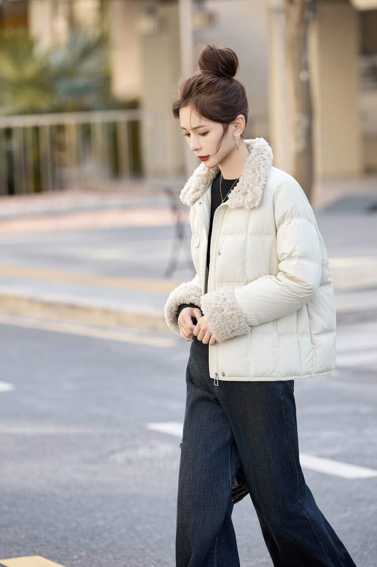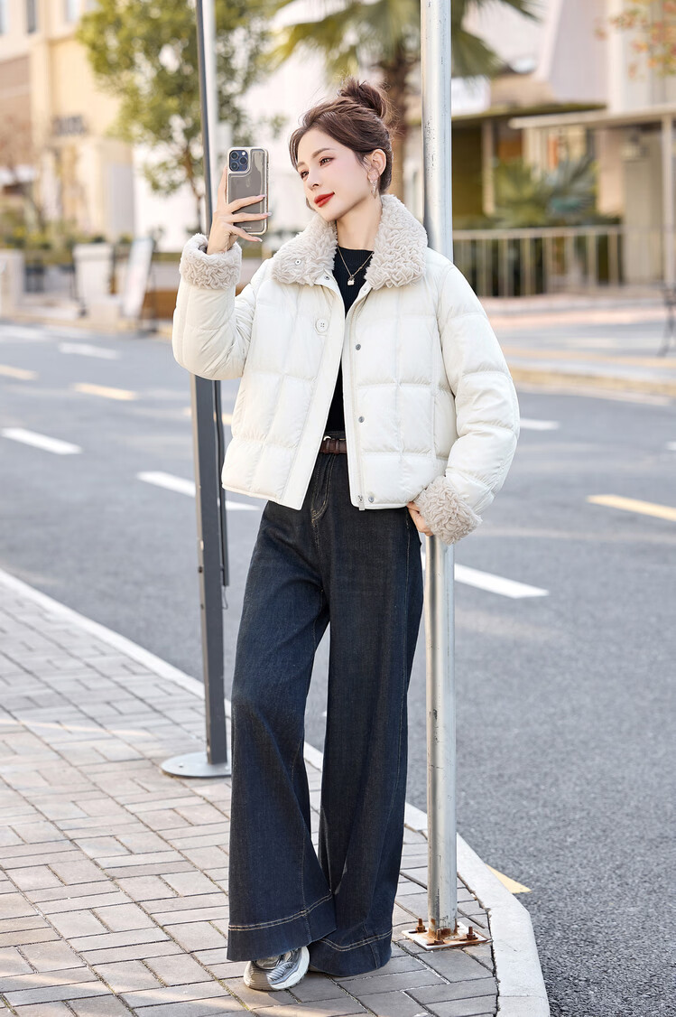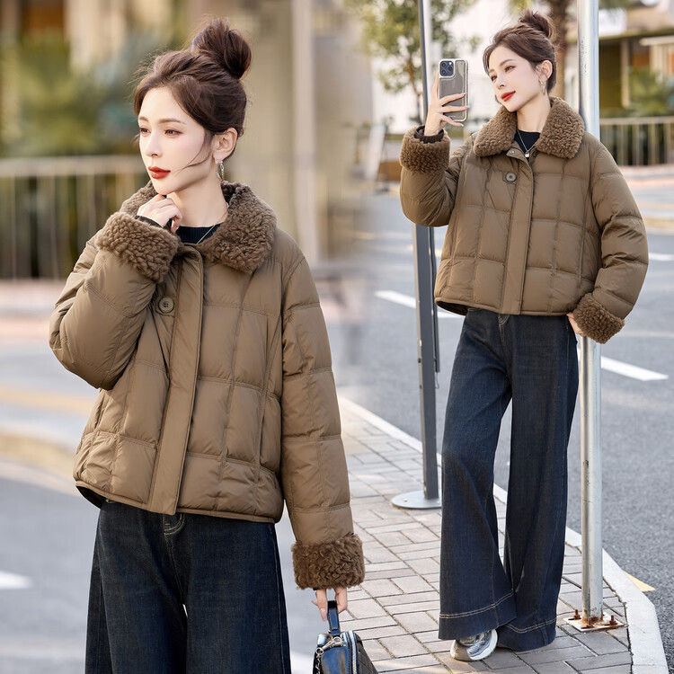 Hengyuan Xianggan super good-looking down jacket women's short 2026 winter new style small thickened warm white duck down jacket beige L