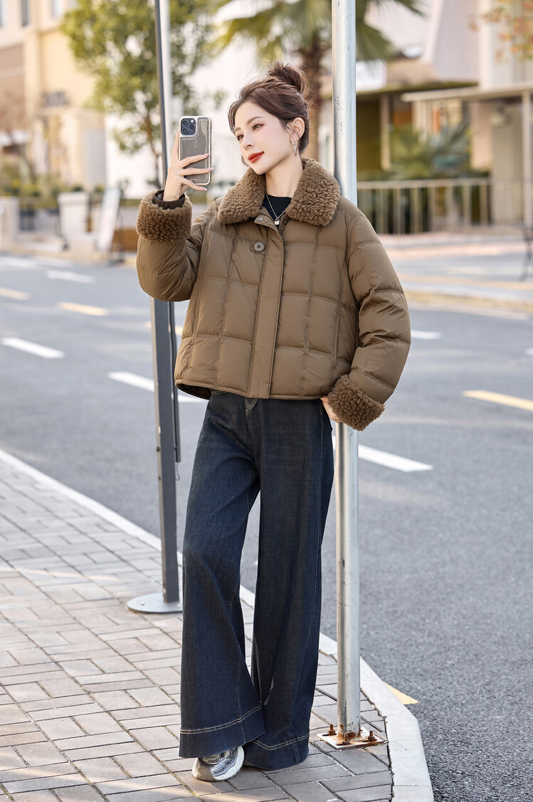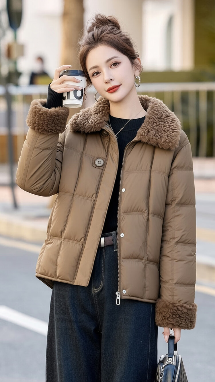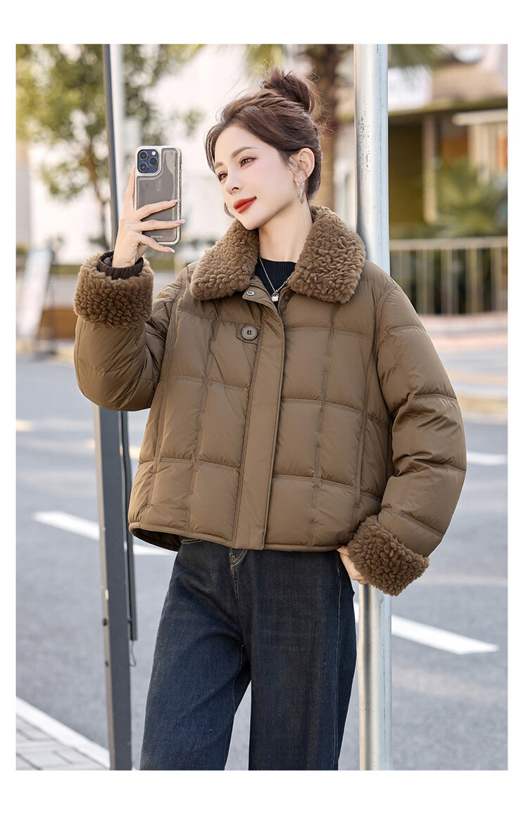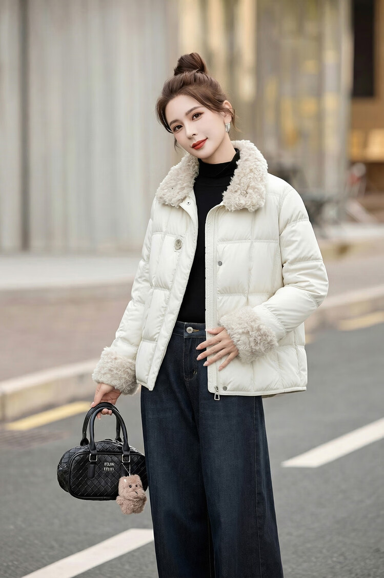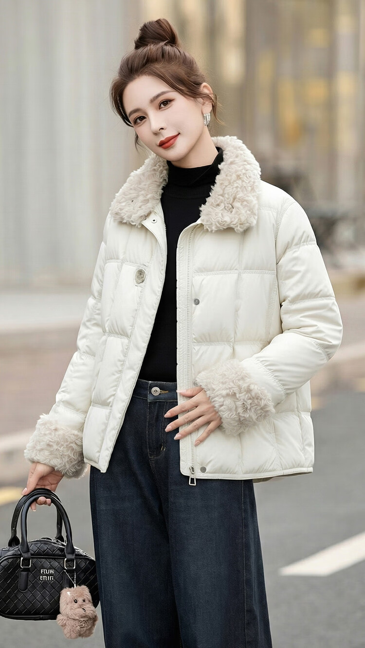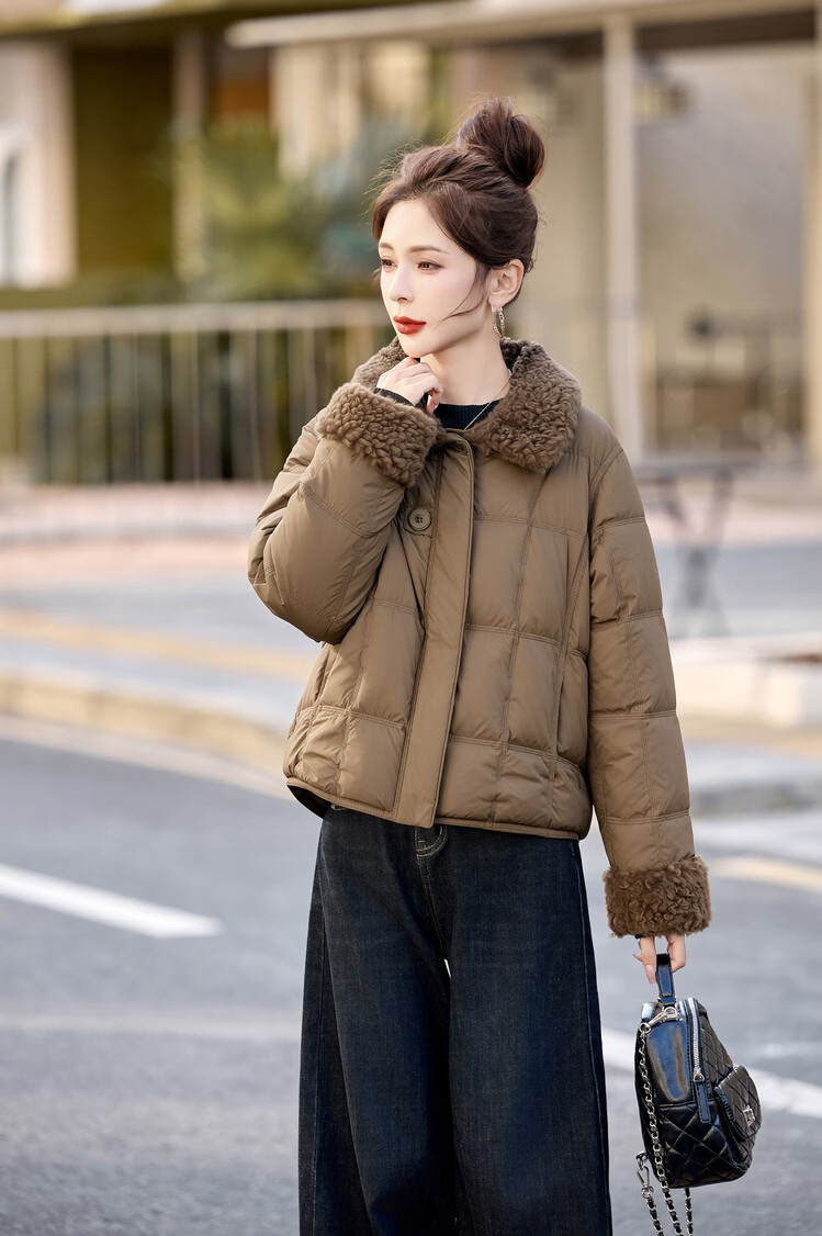 Hengyuan Xianggan super good-looking down jacket women's short 2026 winter new style small thickened warm white duck down jacket beige L
