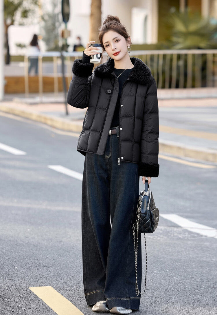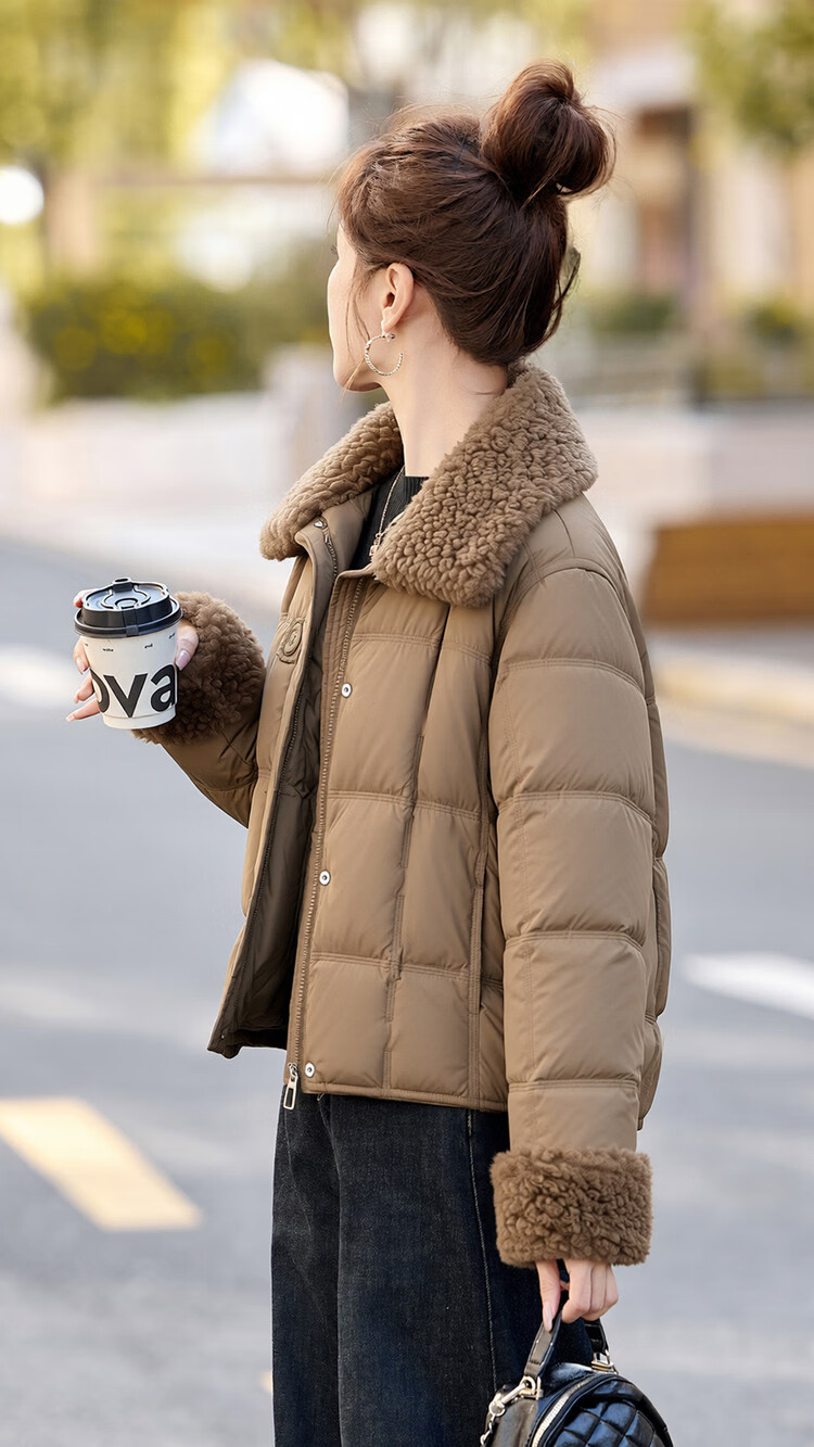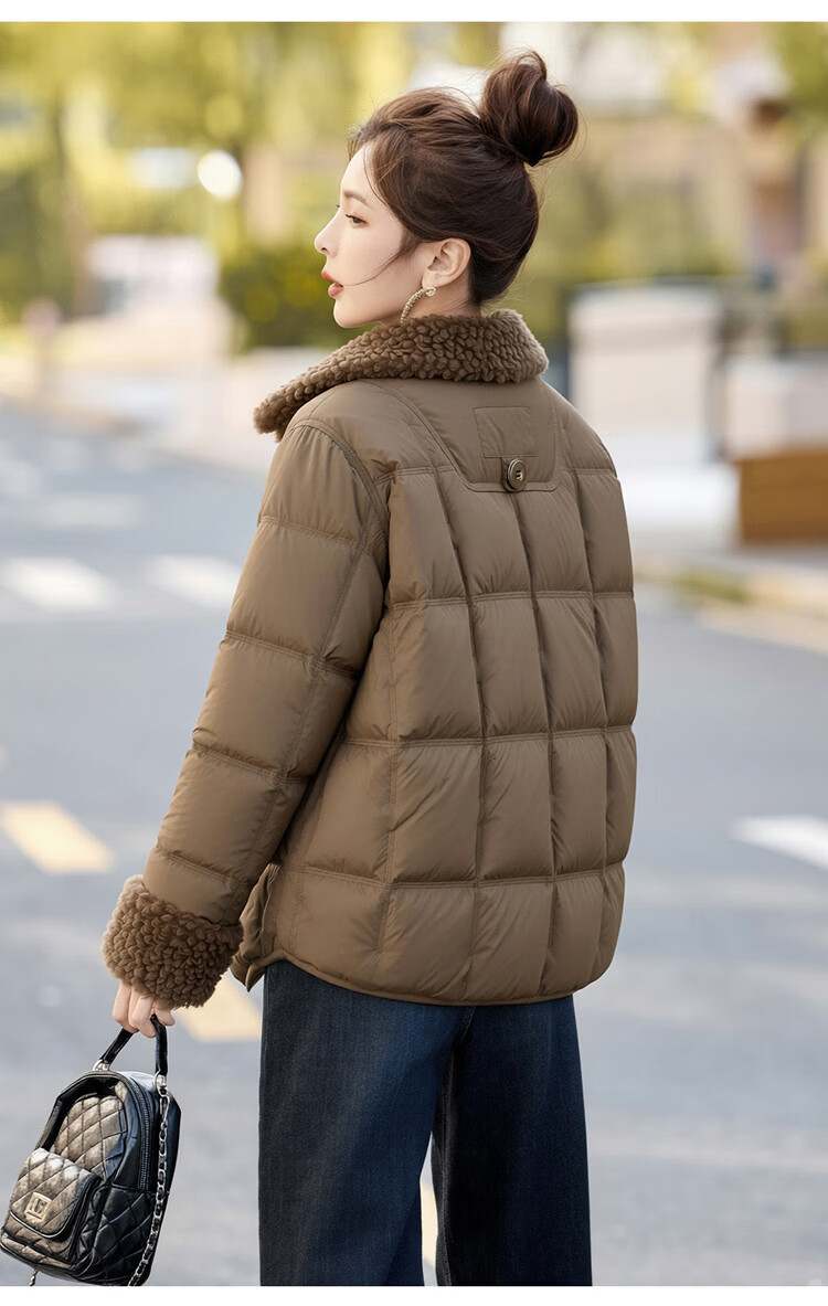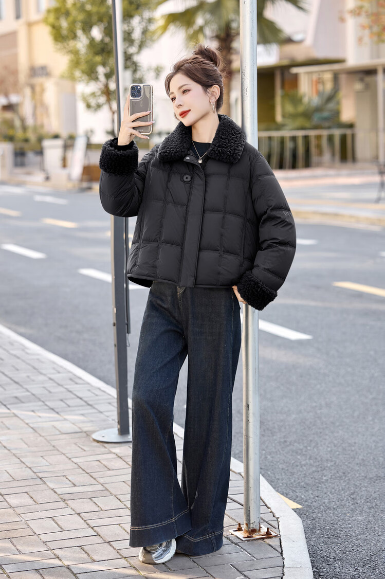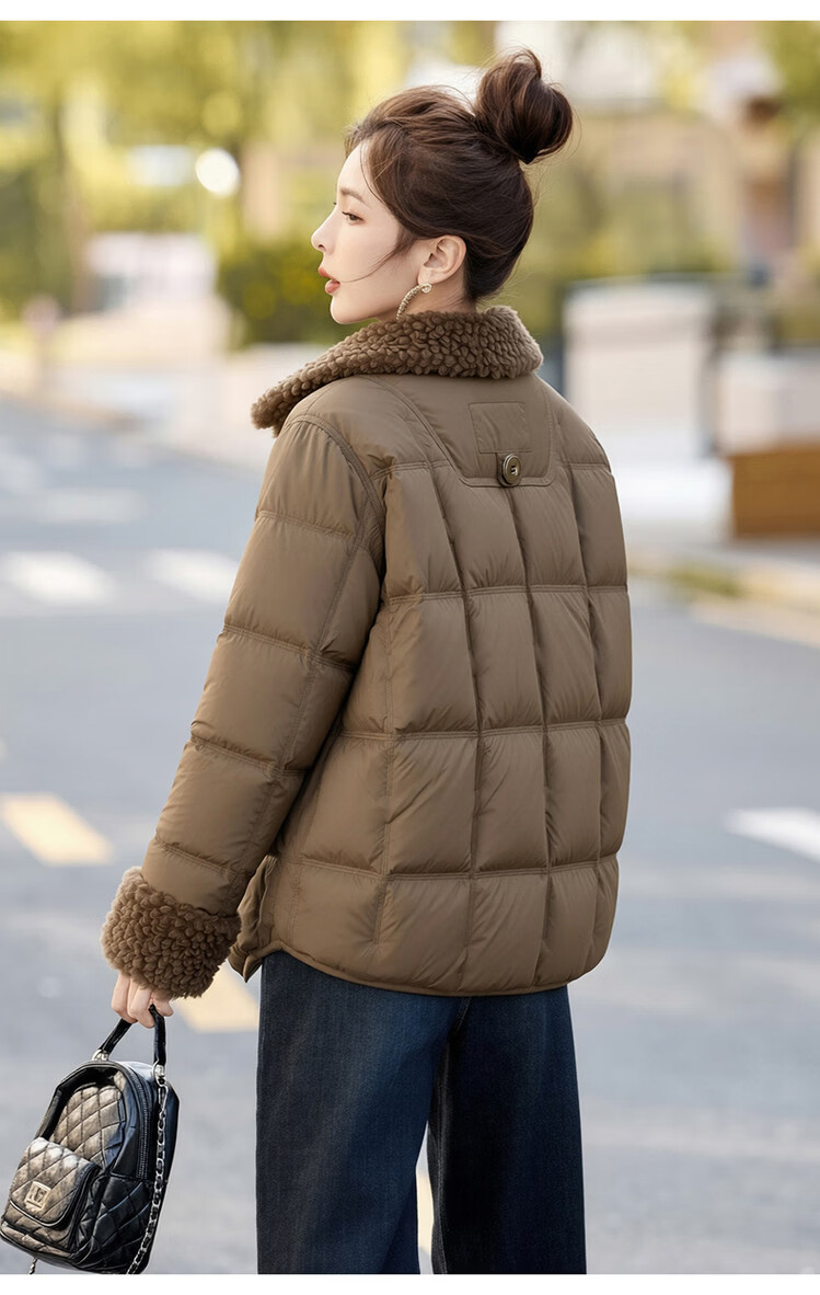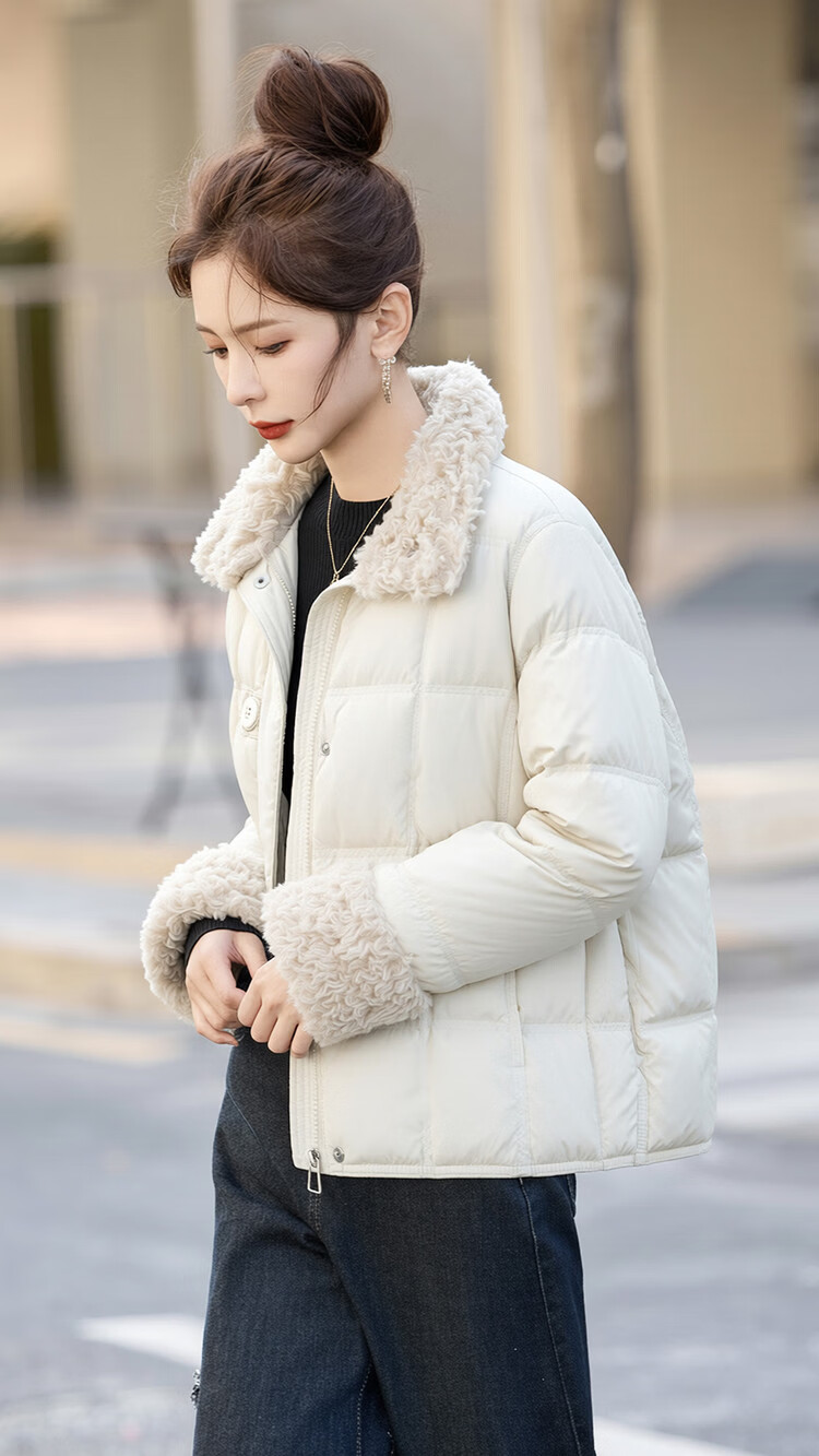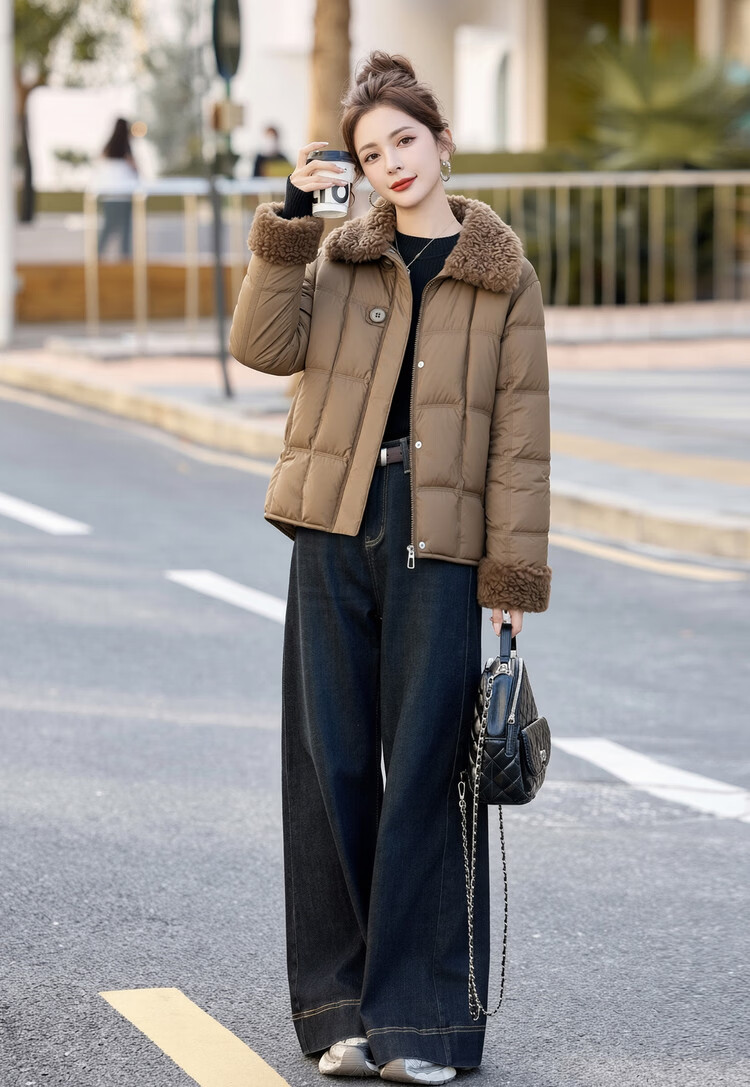 Hengyuan Xianggan super good-looking down jacket women's short 2026 winter new style small thickened warm white duck down jacket beige L