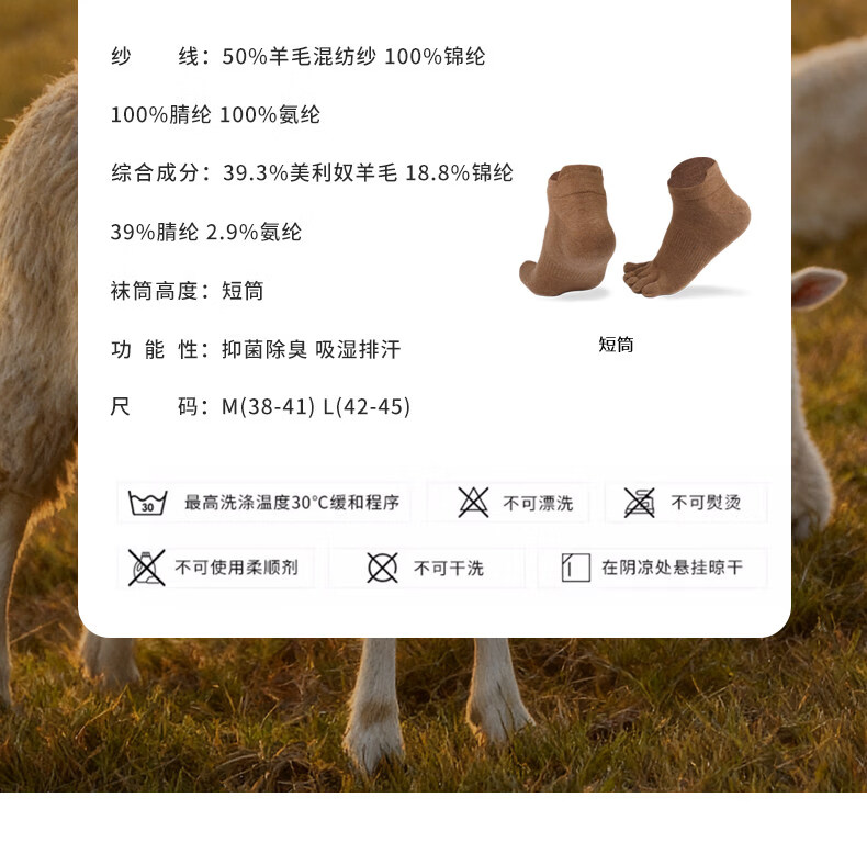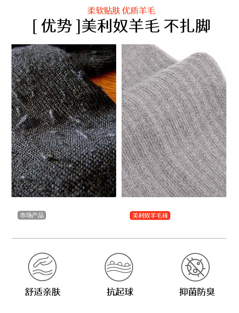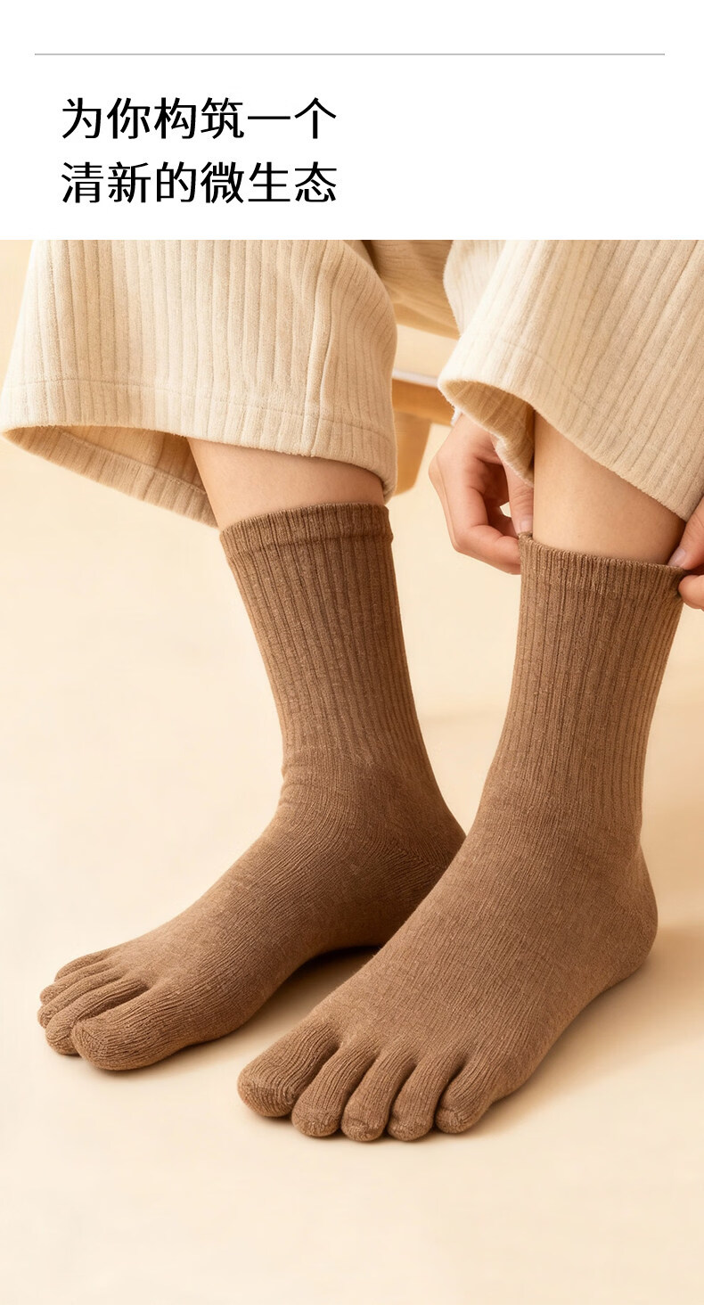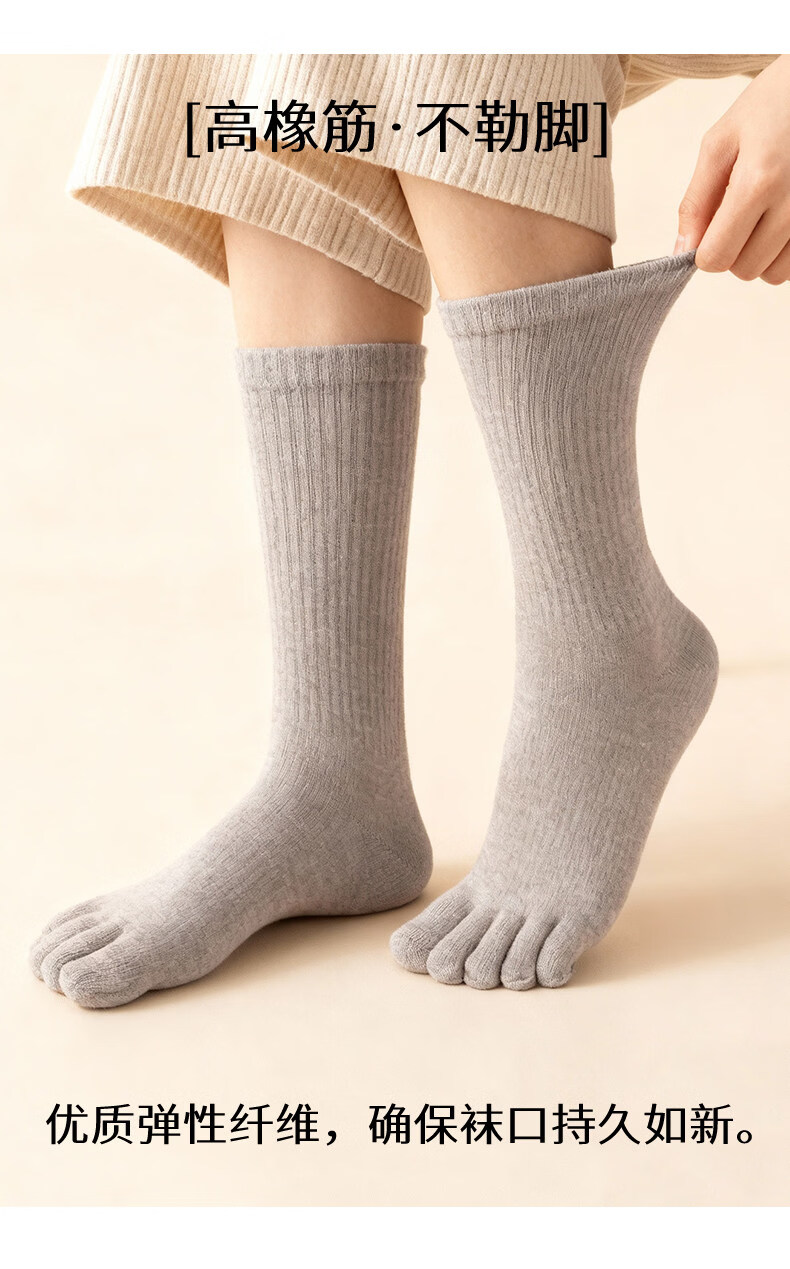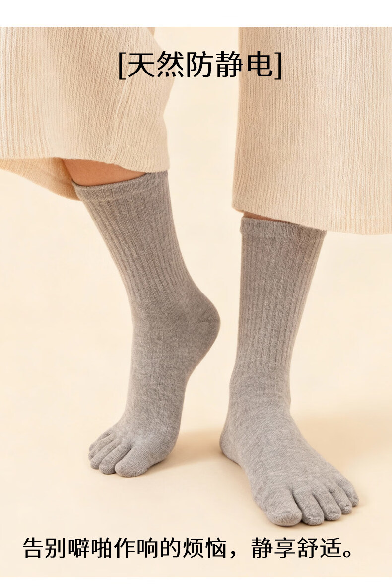 Gray shell merino wool five-finger socks for men and women, deodorant warm mid-calf socks, breathable sports split toe socks, long tube, light gray M