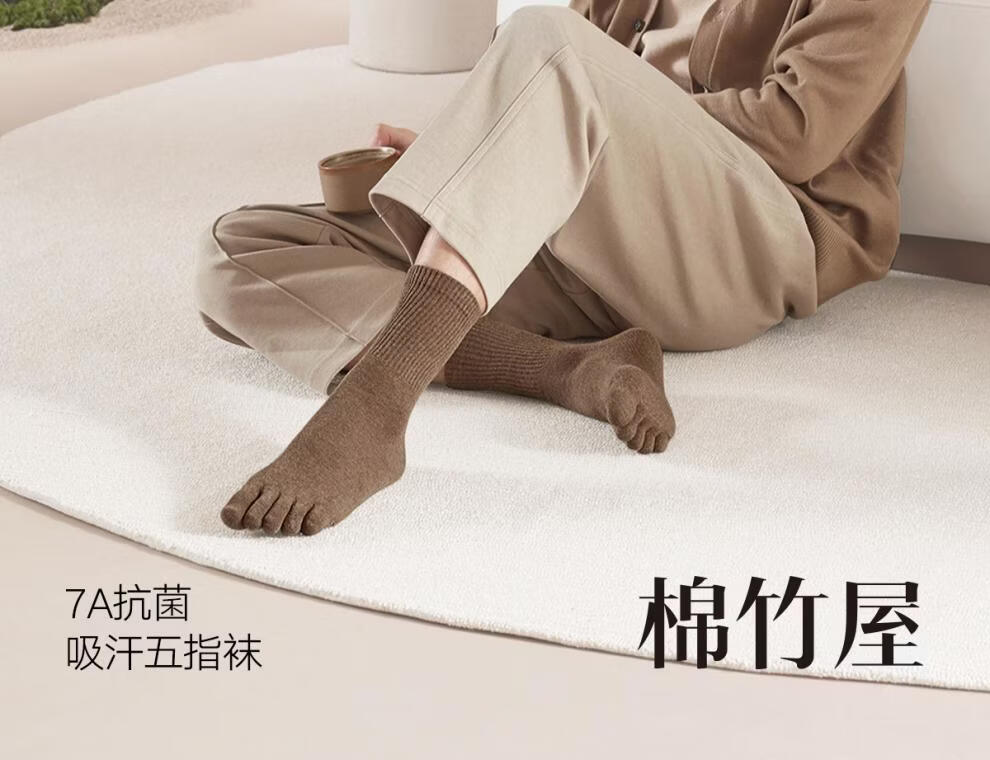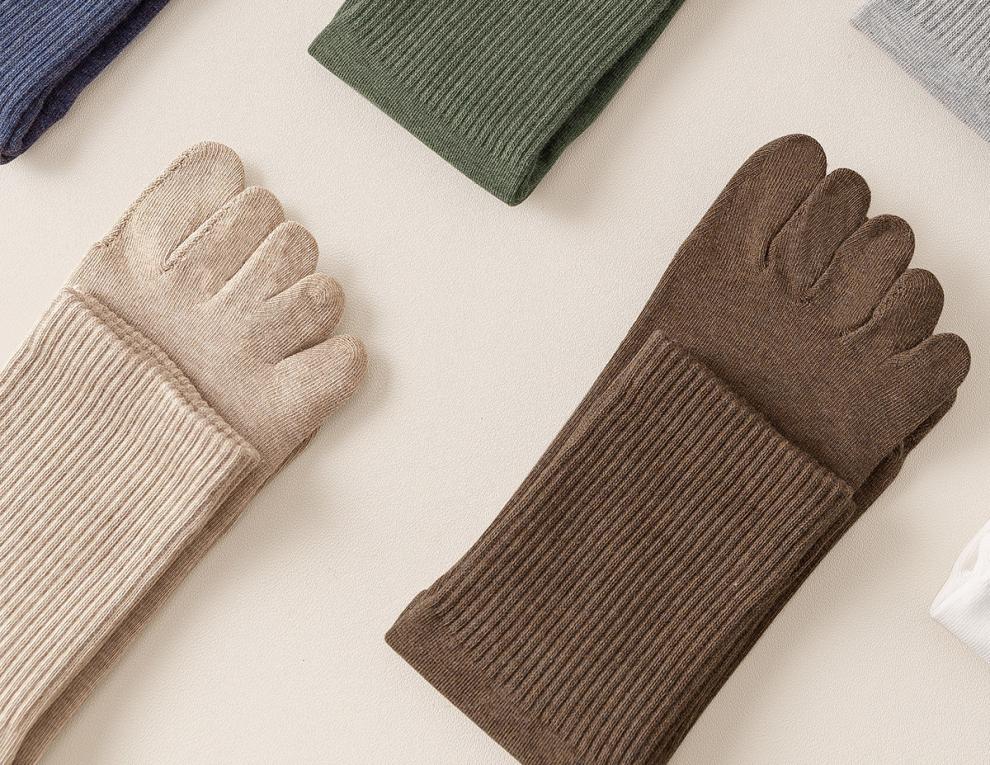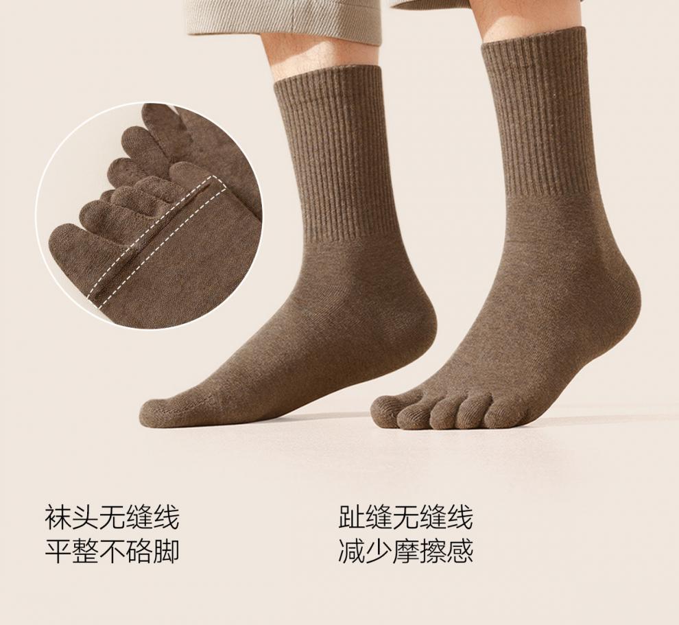 Cotton bamboo house socks men's toe socks autumn and winter cotton anti-odor foot sweat-absorbent black mid-calf men's stockings combination two (khaki + camel + dark gray + black) one size fits all regular style_-4 pairs of boneless suture_long staple cotton 39-44