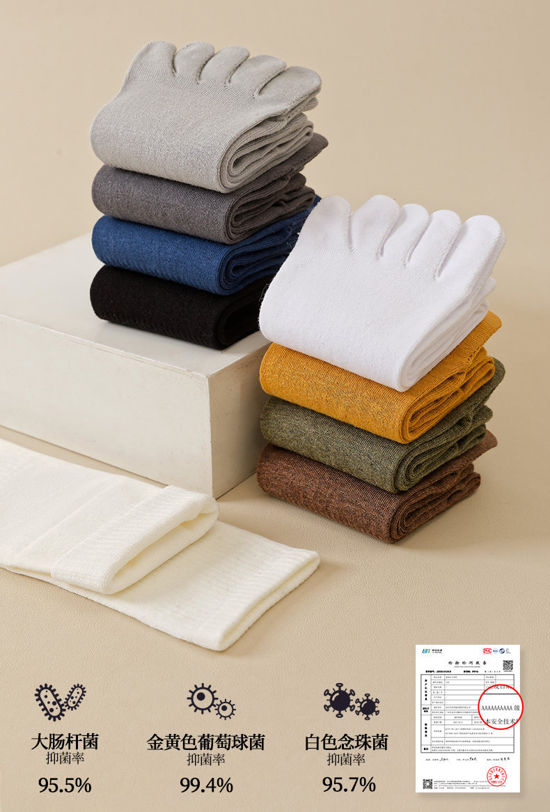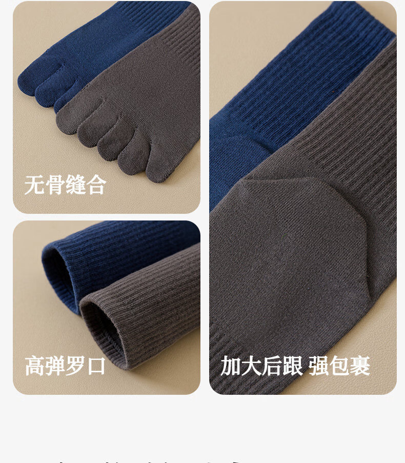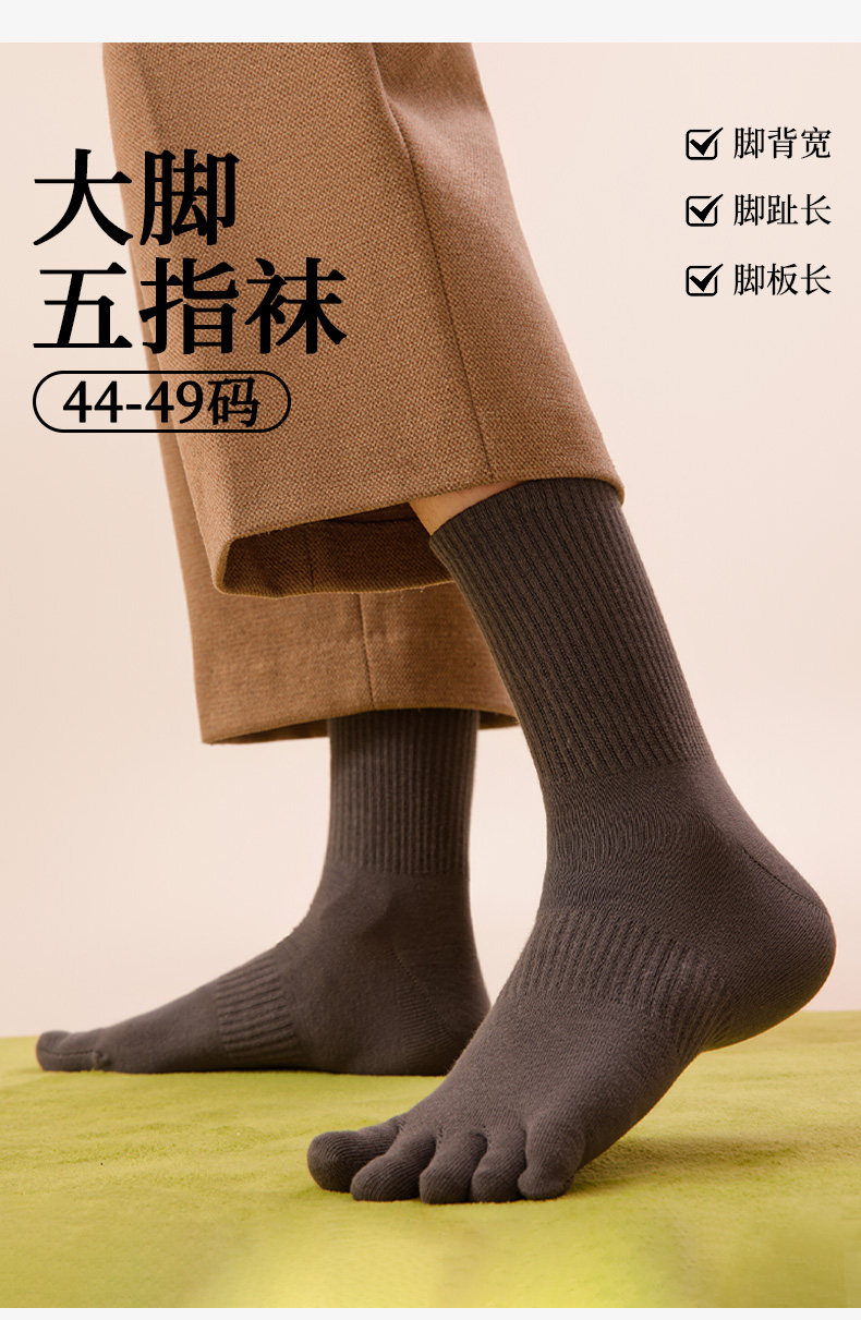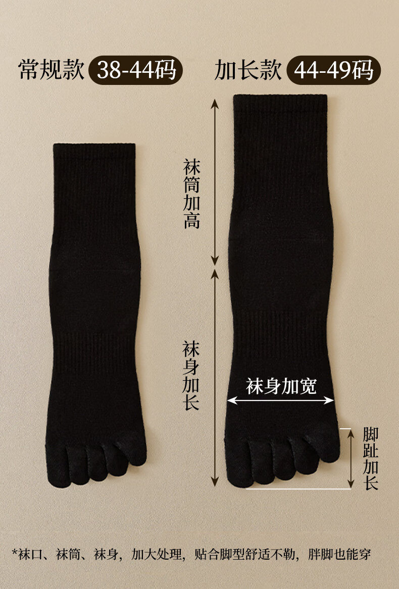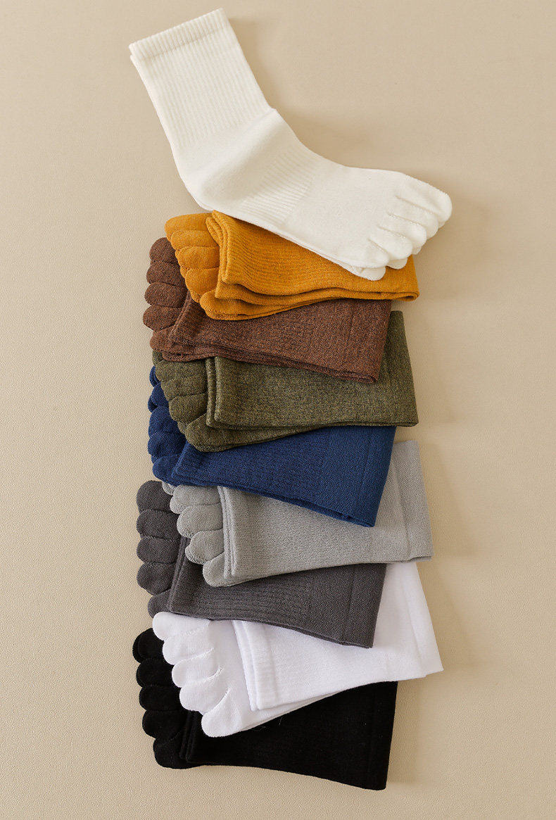 Ashinami plus size five-finger socks men's pure cotton mid-calf split-toe socks autumn and winter sports white cotton stockings sports deodorant black-dark gray-light gray-bleached M plus size 40-49 tube height about 15C