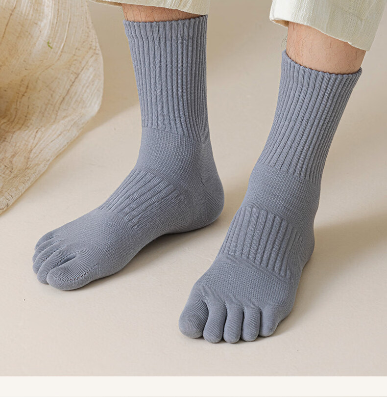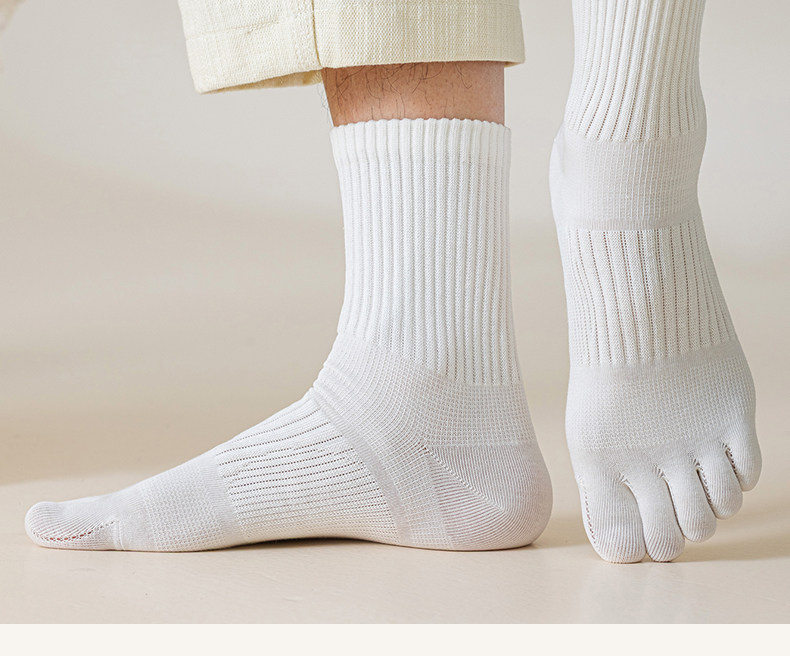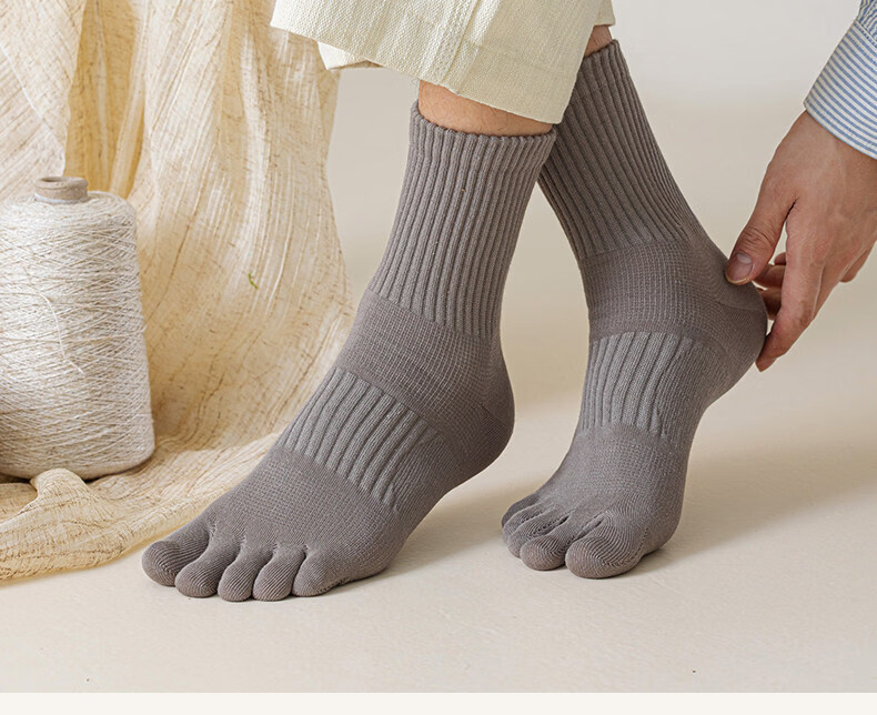 Men's mid-calf toe socks spring and autumn style ramie anti-odor sweat-absorbent breathable split-toe long socks men's winter stockings dark brown + white + black + khaki one size fits all _ recommended size 39-45 absorb sweat and not stink footwear freight insurance