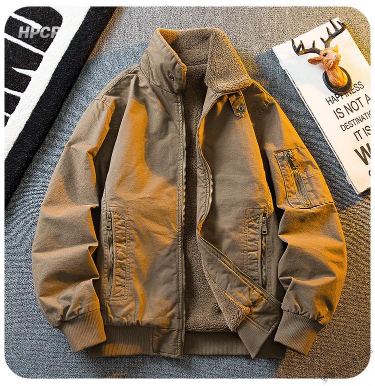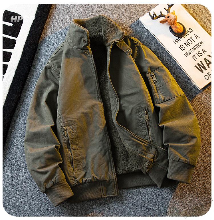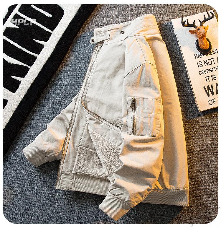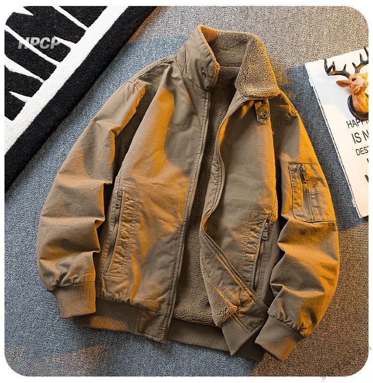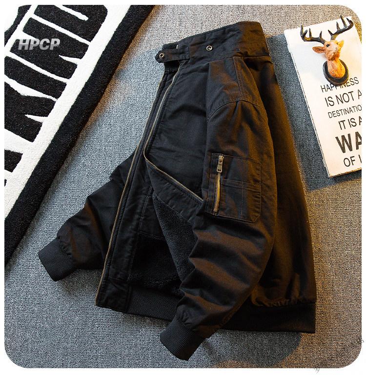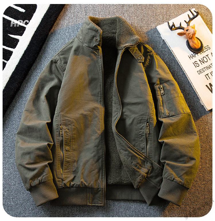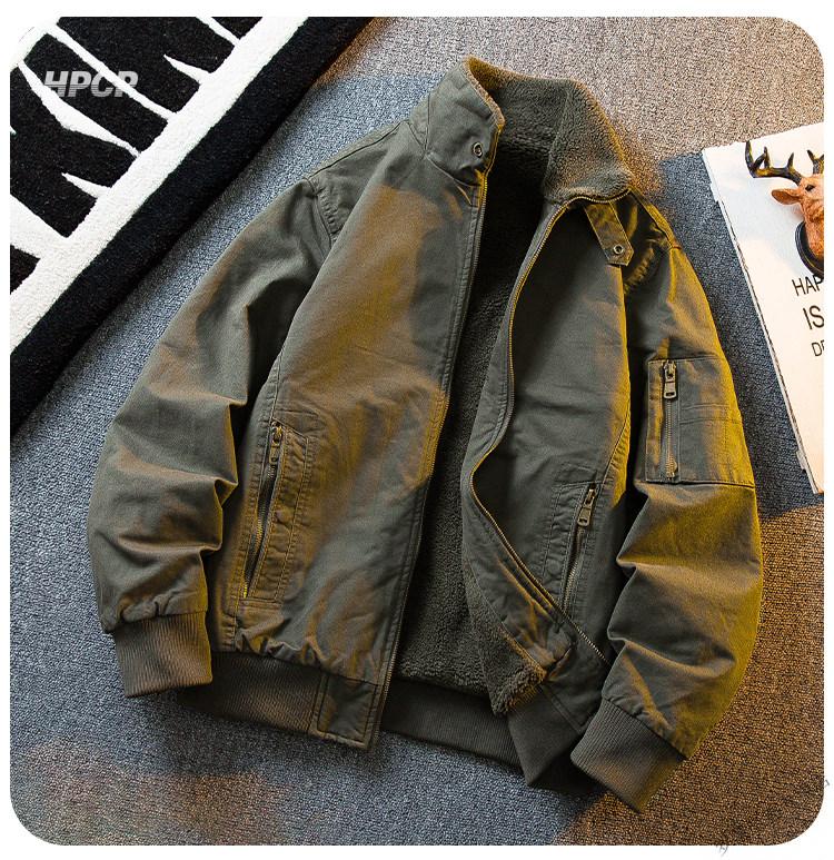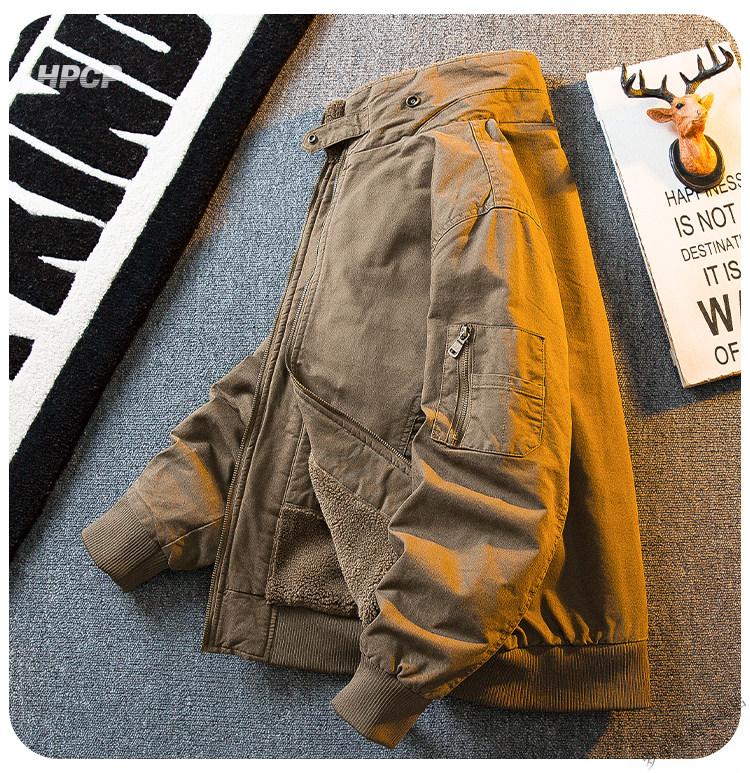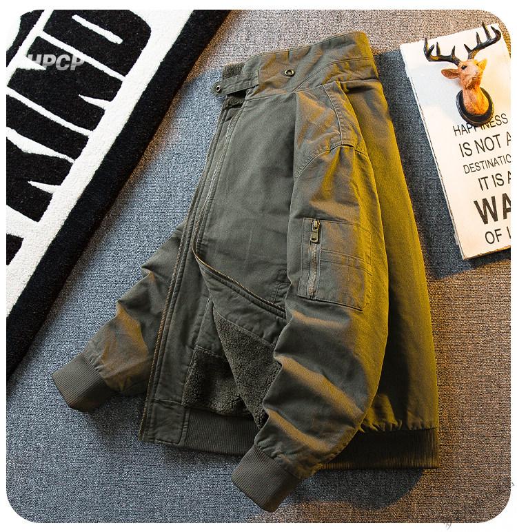 ROMON HPCP American Workwear Military Style Flight Suit Jacket Men's Winter Warm Plus Velvet Thickened Lamb Wool Cotton Jacket Military Green Upgrade 2.0 Upgrade Pocket Version M (95-115Jin Jin equals 0.5kg)
