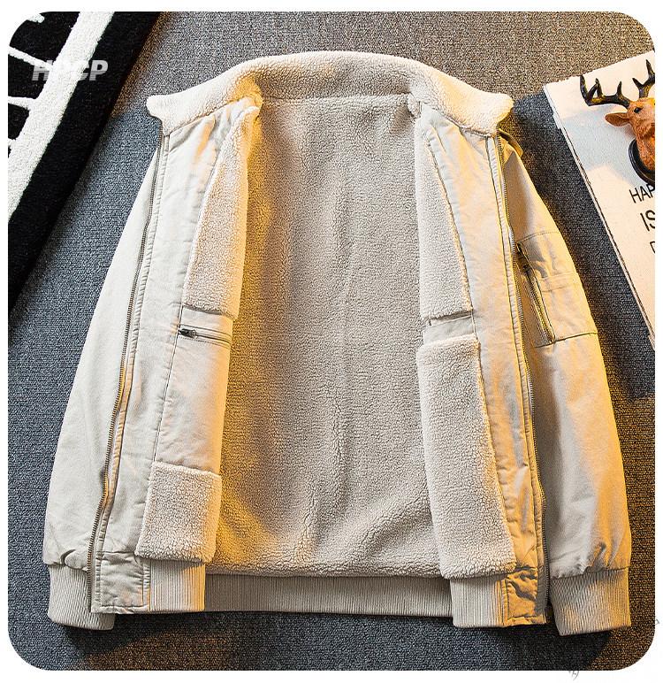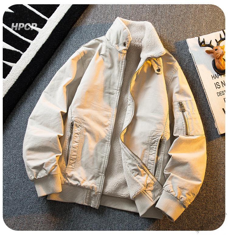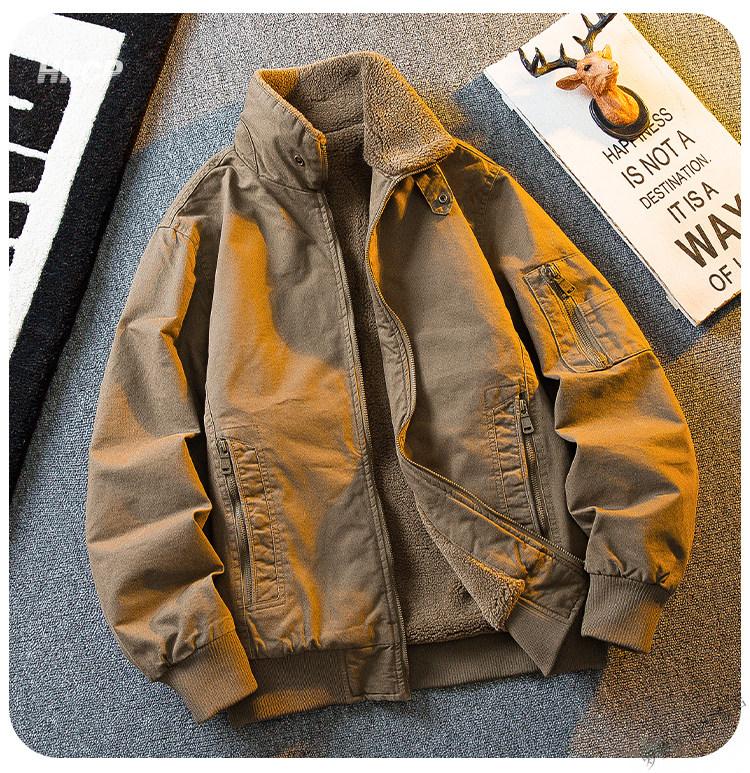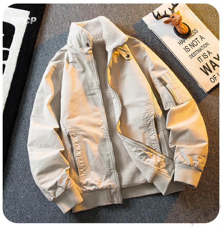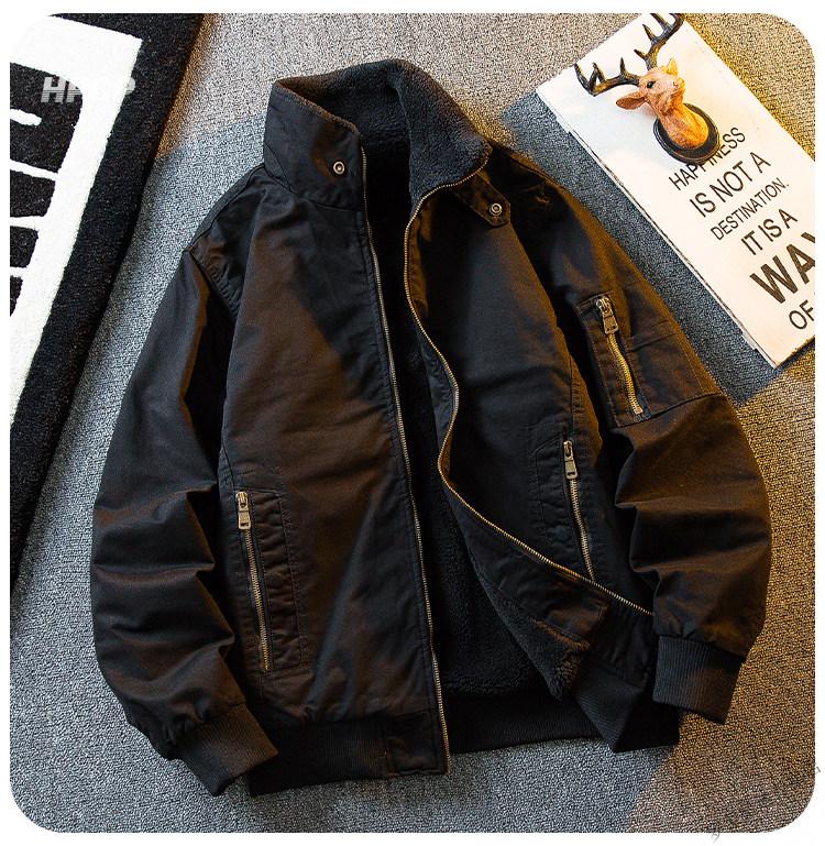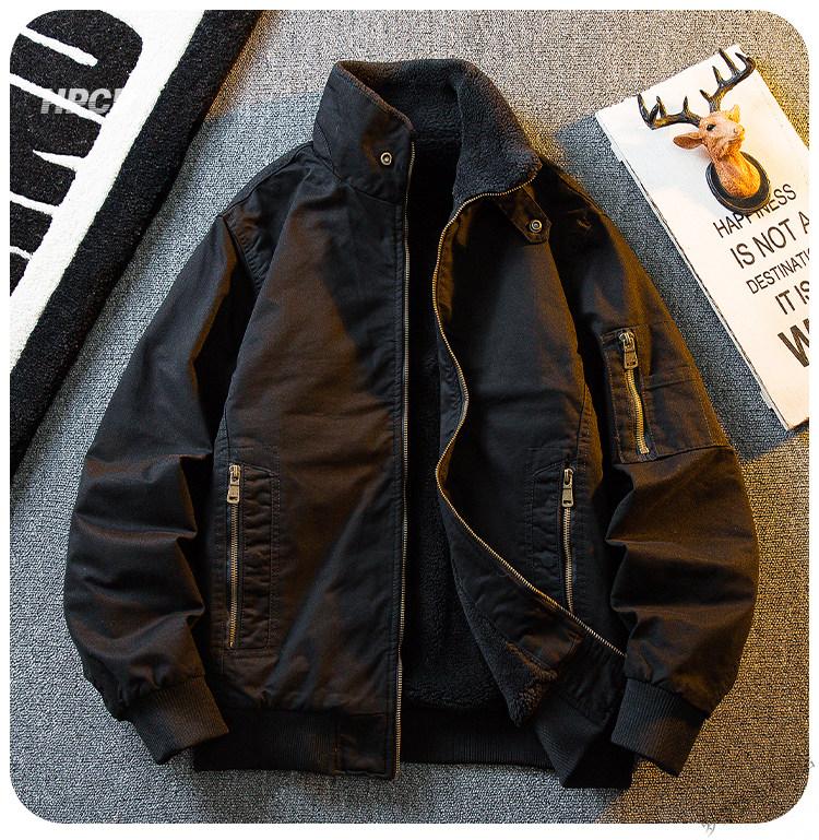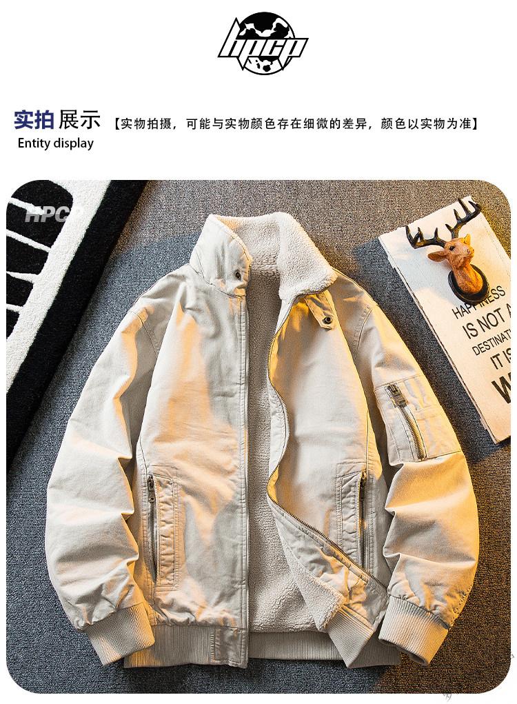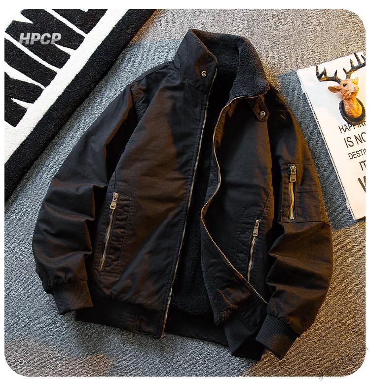 ROMON HPCP American Workwear Military Style Flight Suit Jacket Men's Winter Warm Plus Velvet Thickened Lamb Wool Cotton Jacket Military Green Upgrade 2.0 Upgrade Pocket Version M (95-115Jin Jin equals 0.5kg)