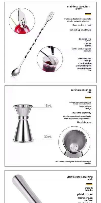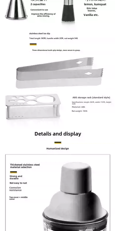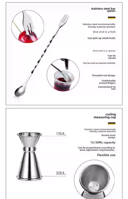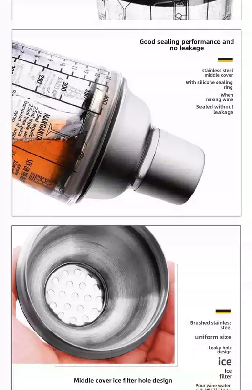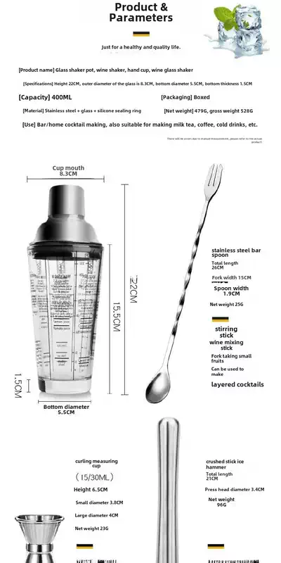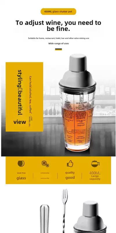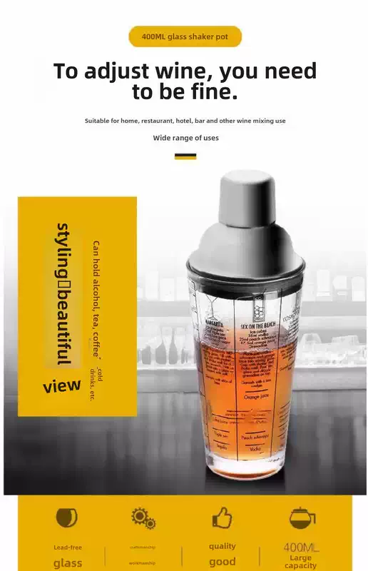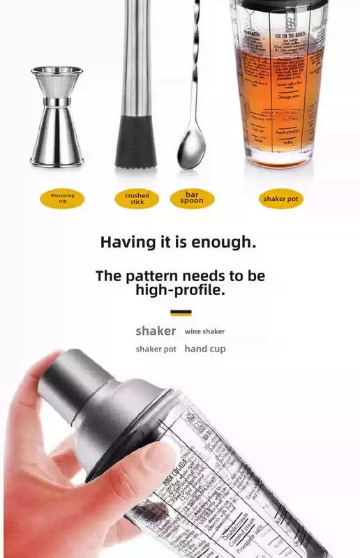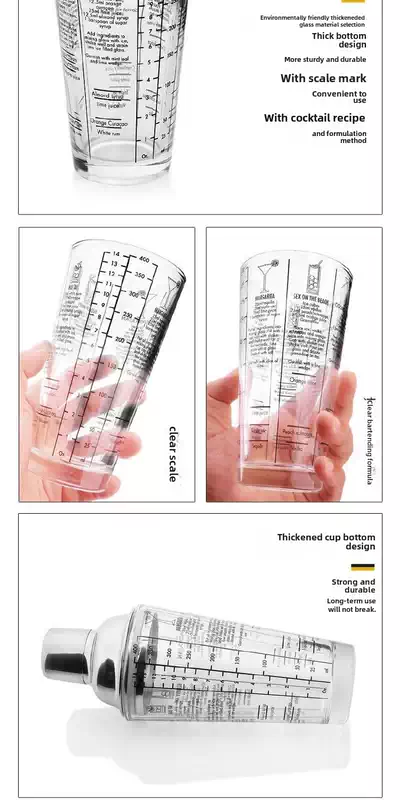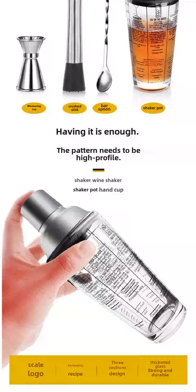 Yusenyi glass shaker set scale shaker and formula three-level cocktail shaker cocktail tool hand cup glass shaker 5-piece set