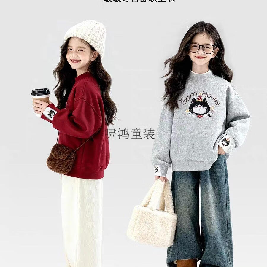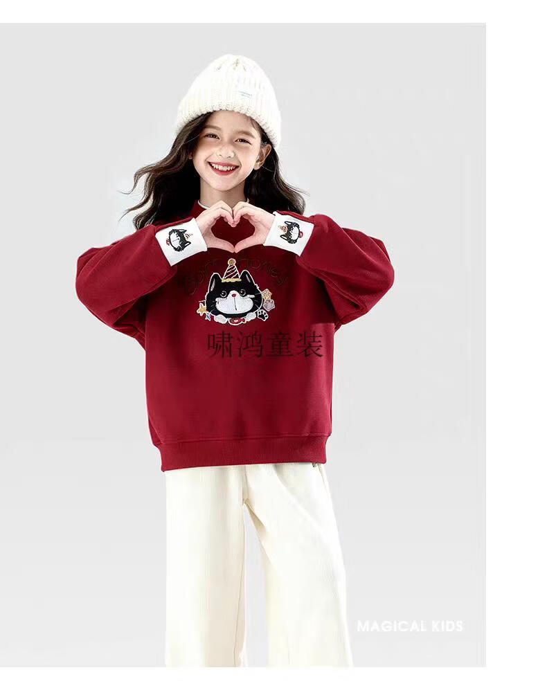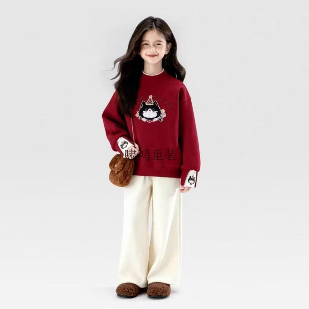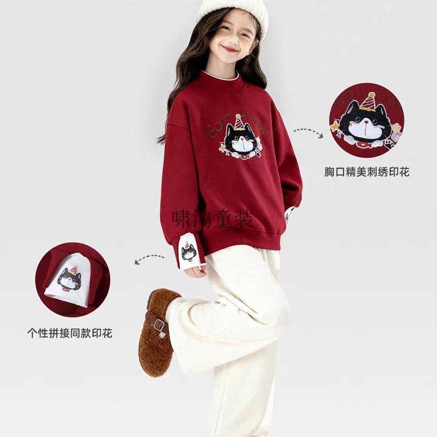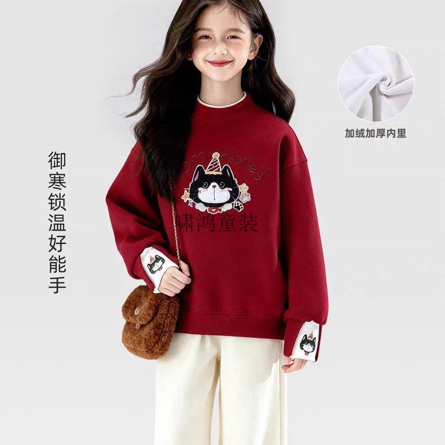 Wooden house girls' velvet sweatshirt autumn and winter 2026 new style children's clothing medium and large children's thickened tops children's clothing winter clothing red 110 cm