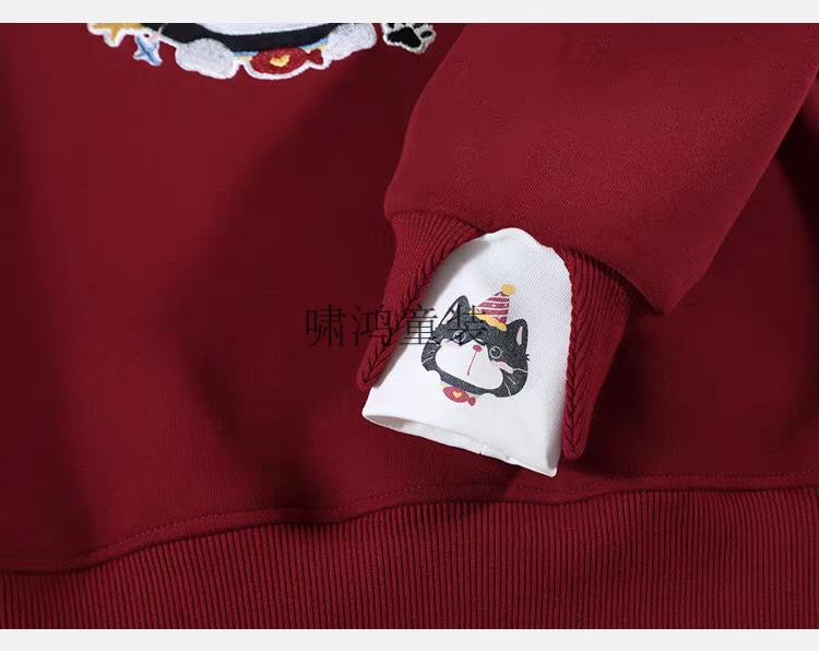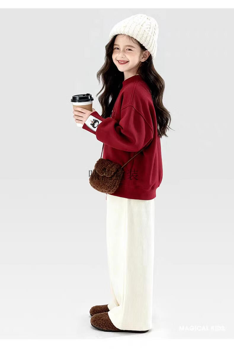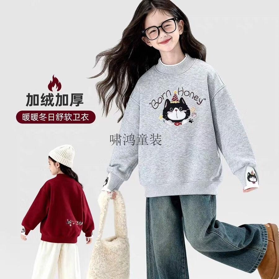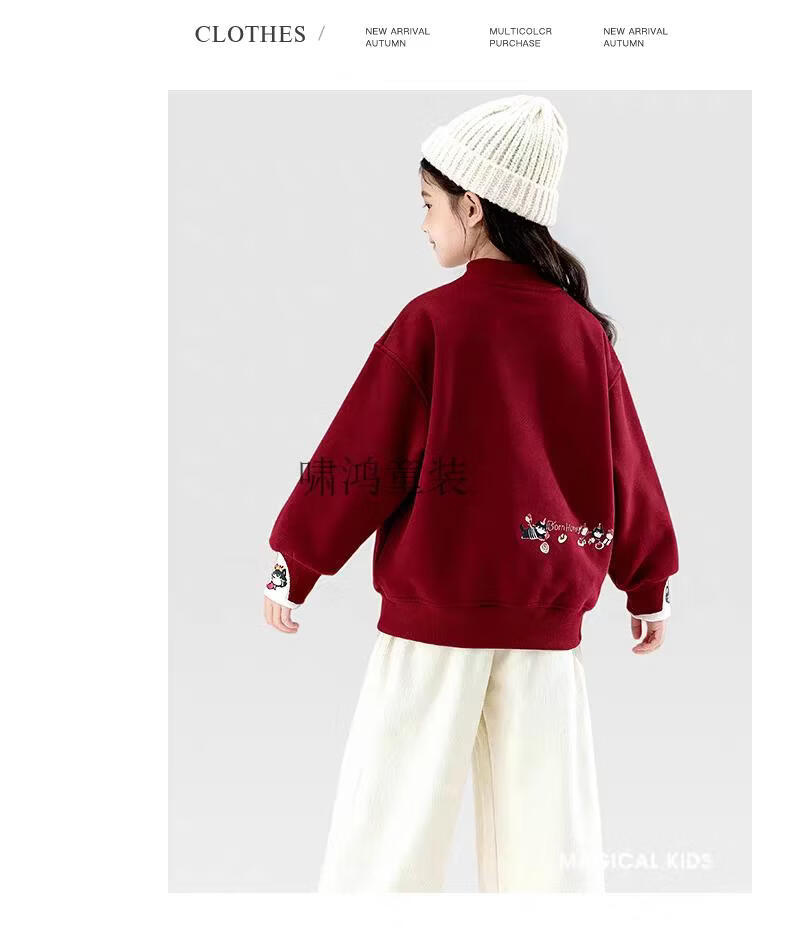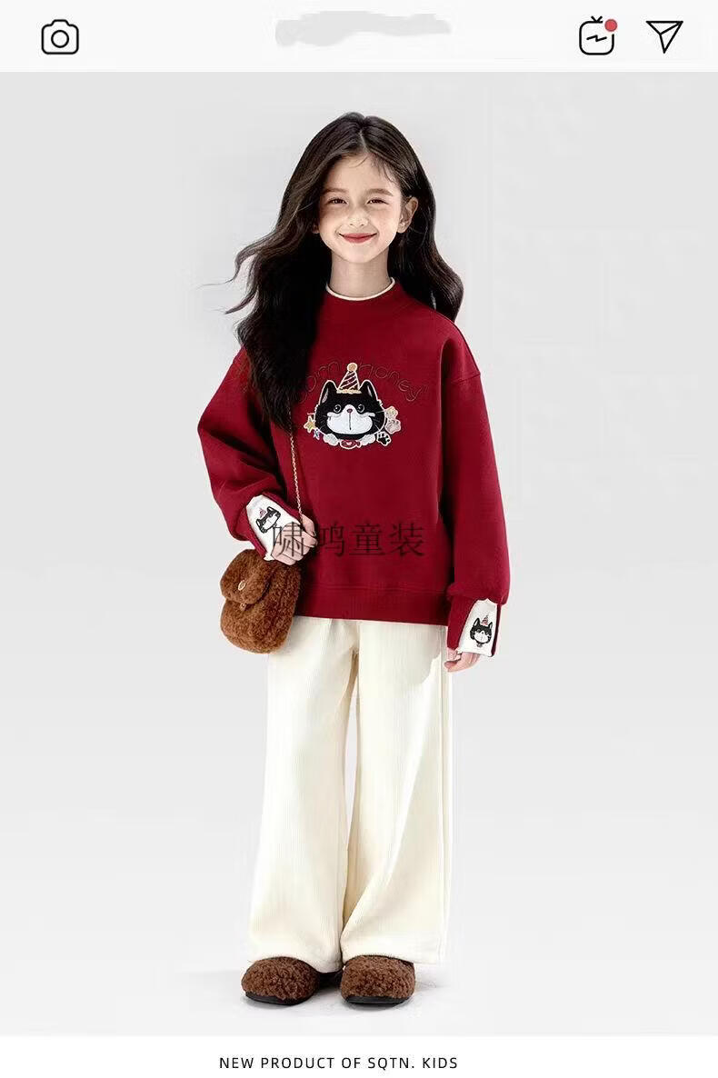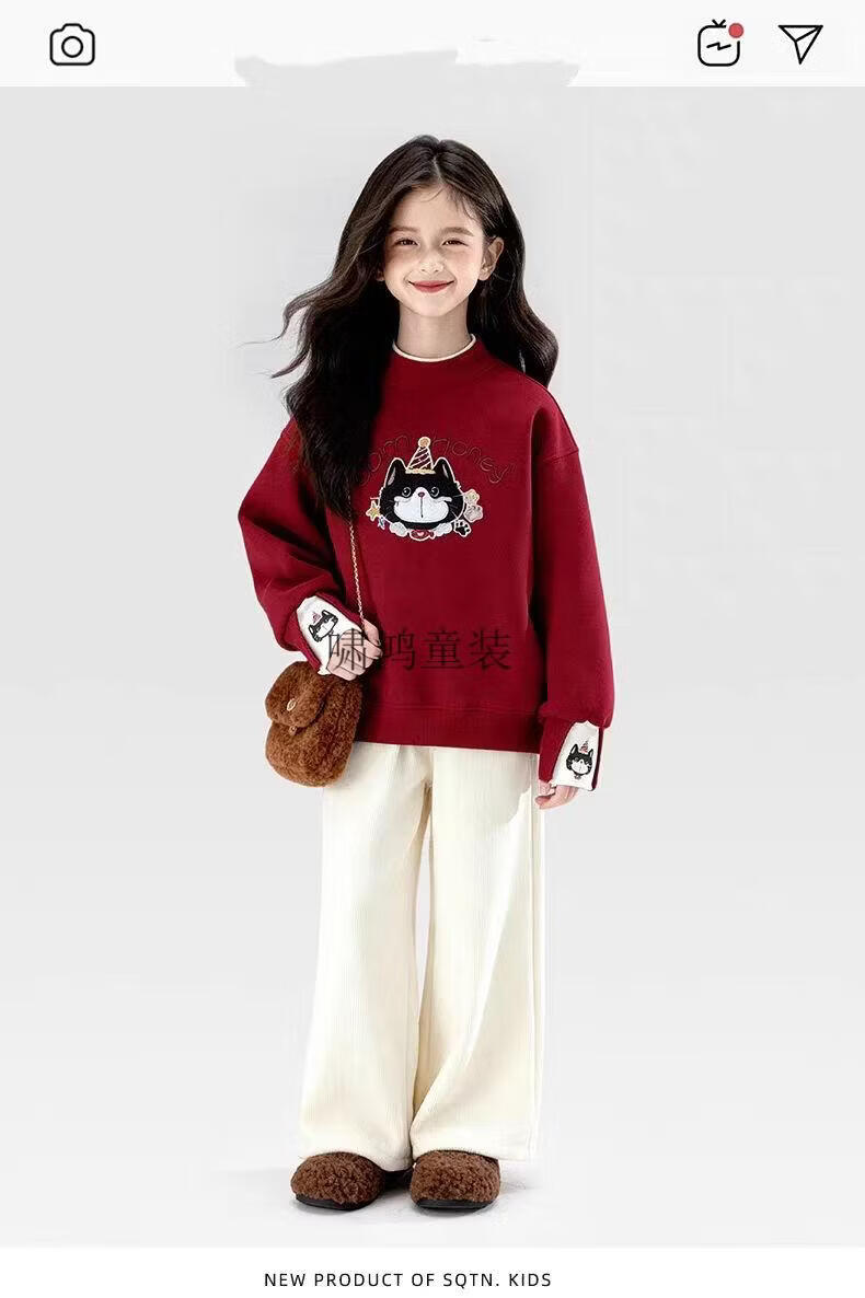 Wooden house girls' velvet sweatshirt autumn and winter 2026 new style children's clothing medium and large children's thickened tops children's clothing winter clothing red 110 cm