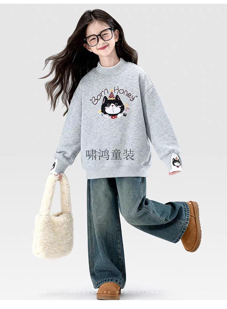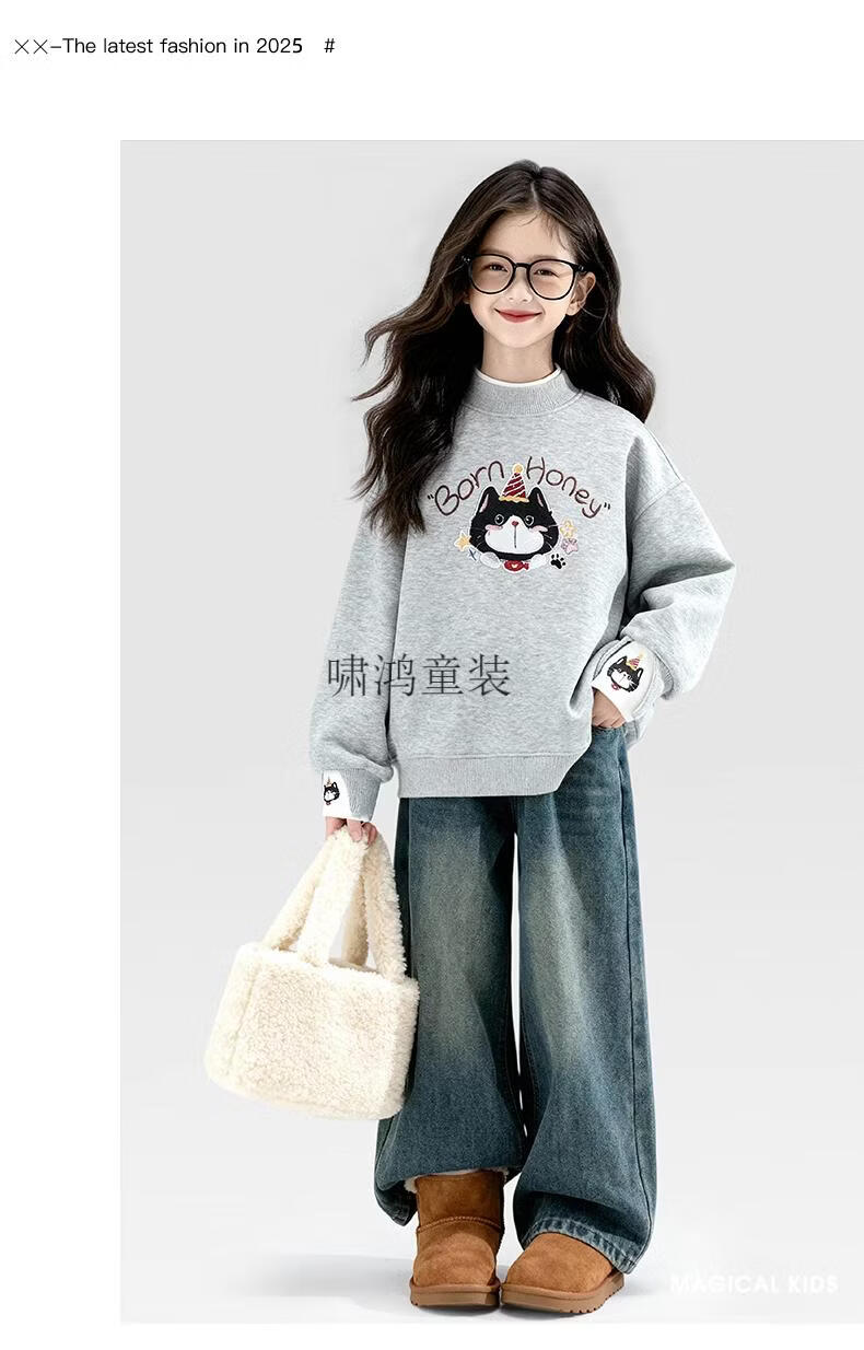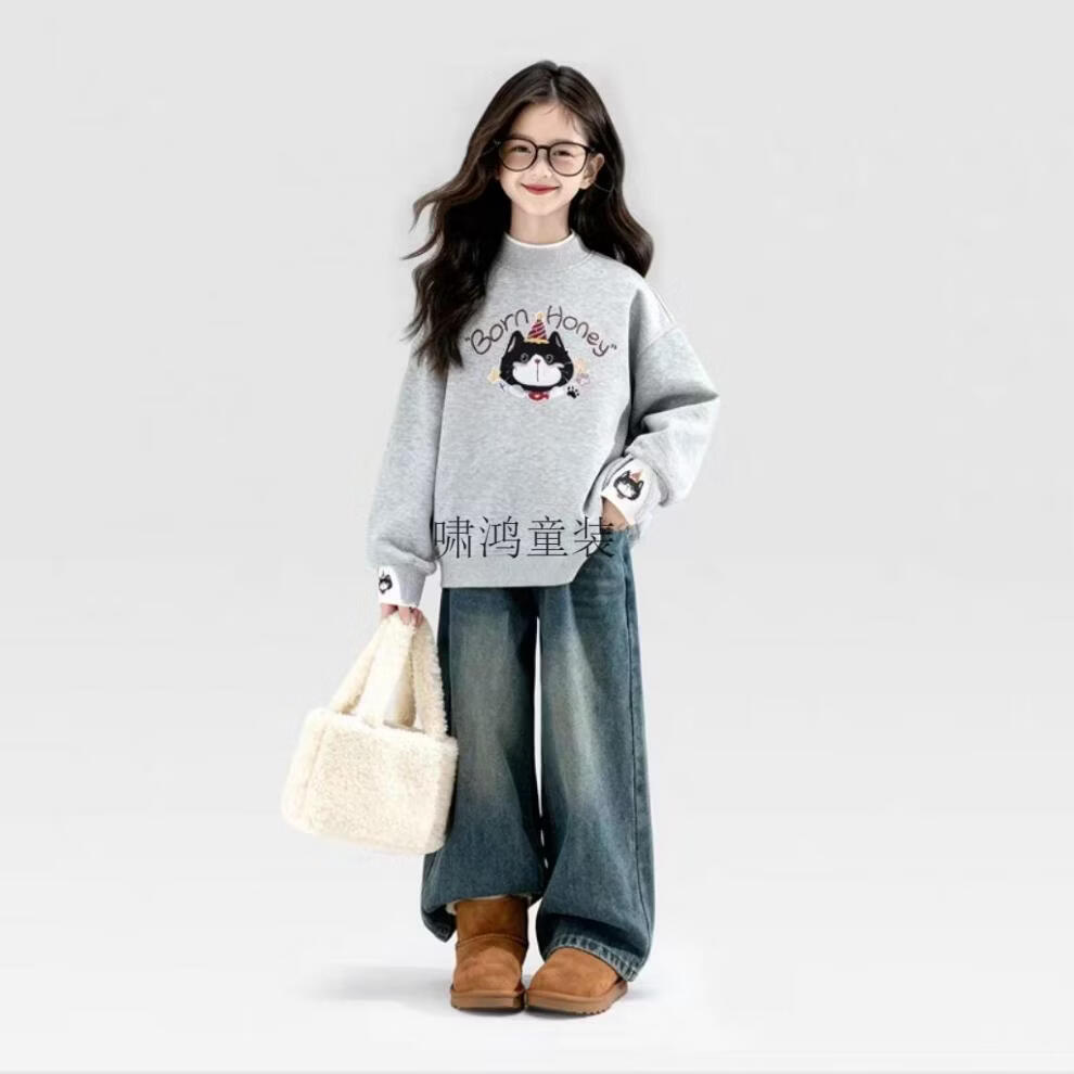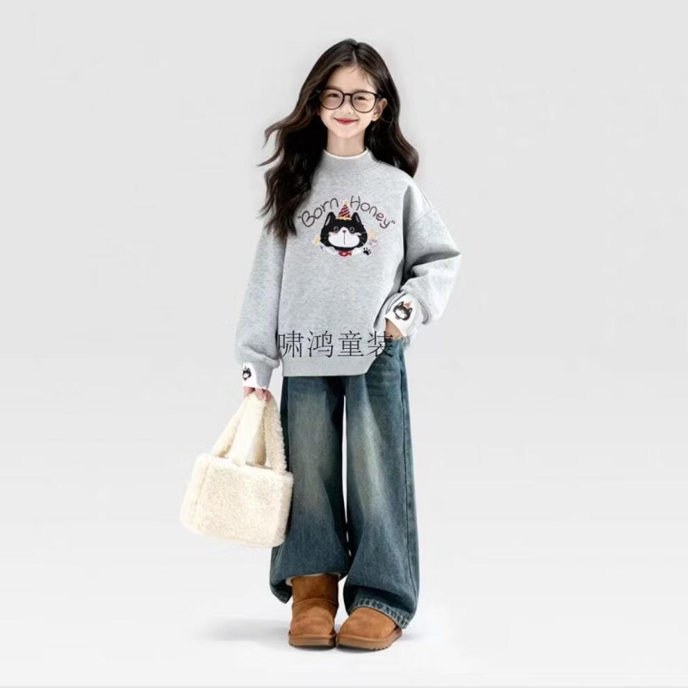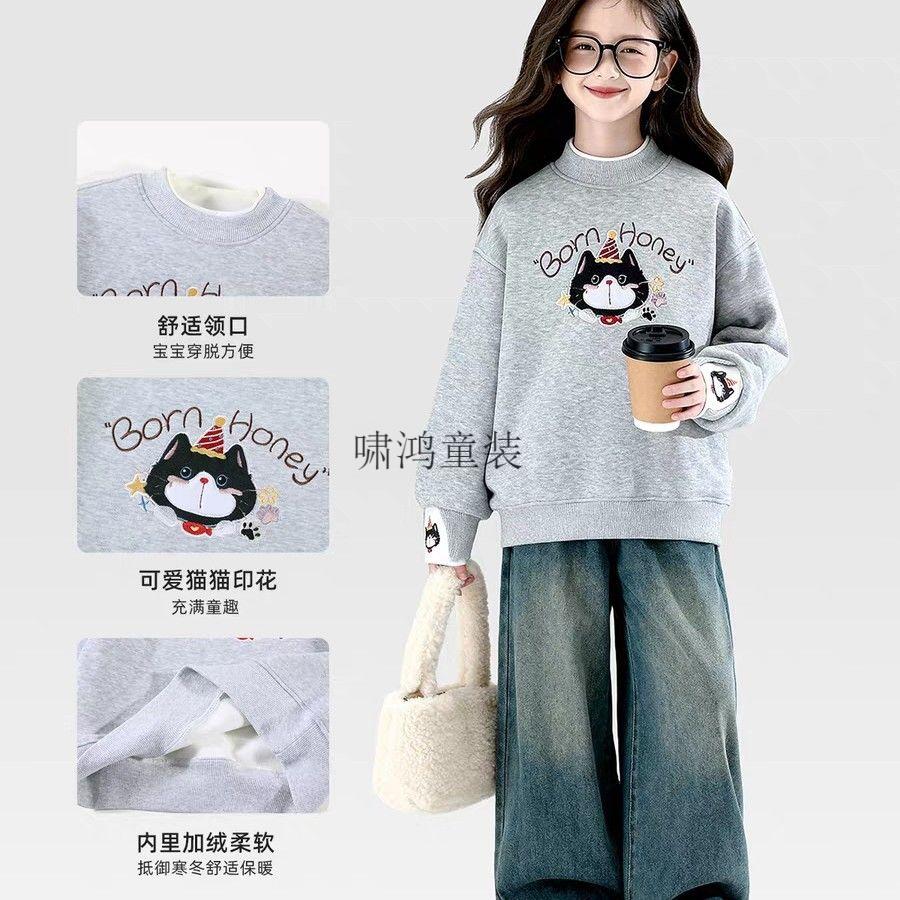 Wooden house girls' velvet sweatshirt autumn and winter 2026 new style children's clothing medium and large children's thickened tops children's clothing winter clothing red 110 cm