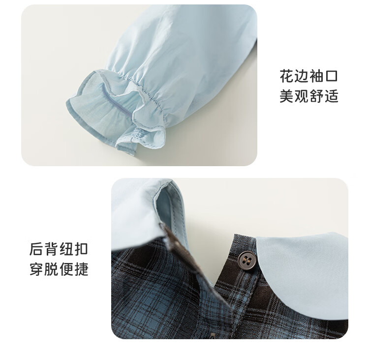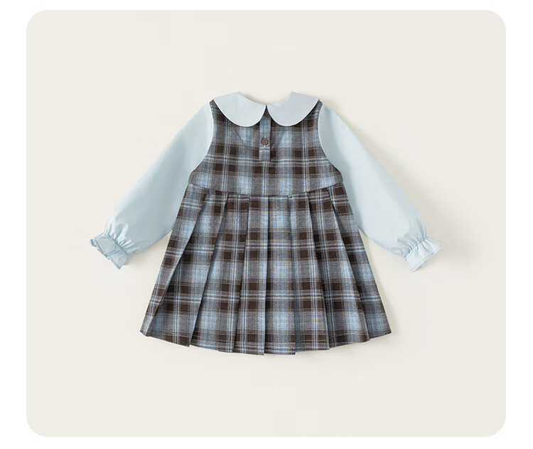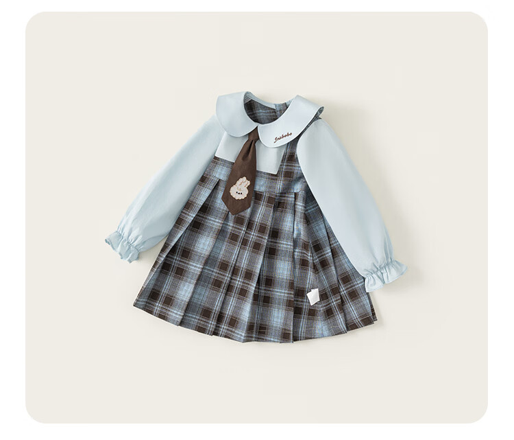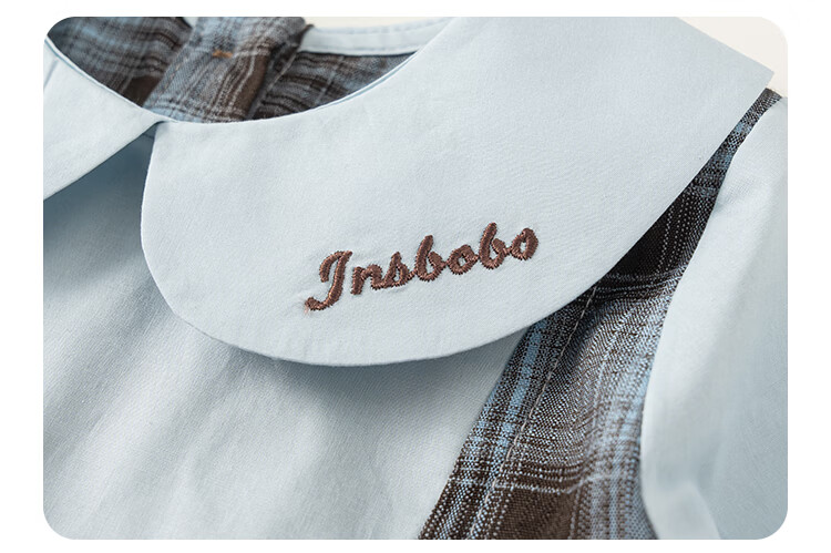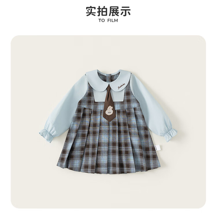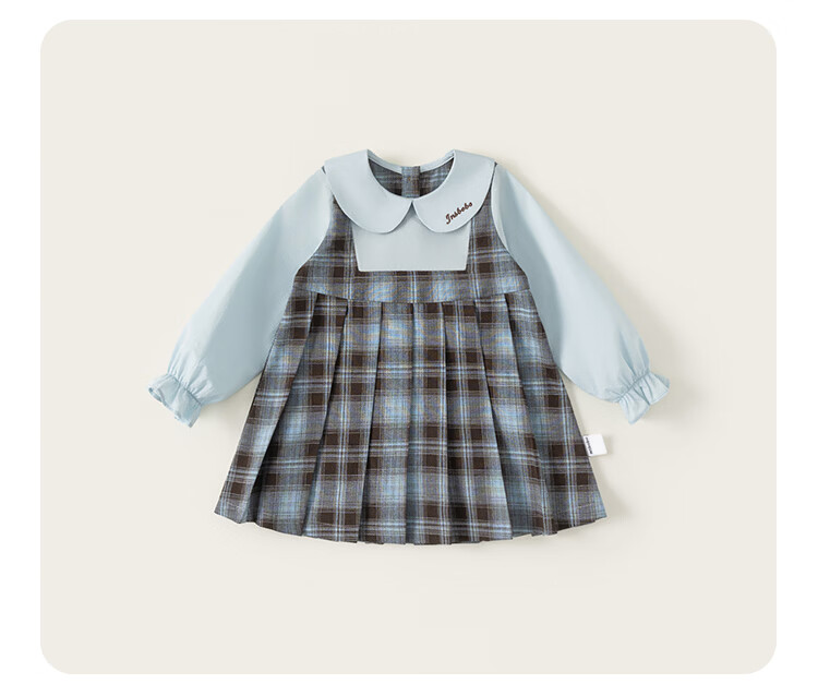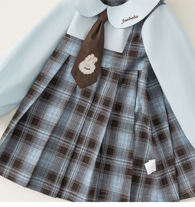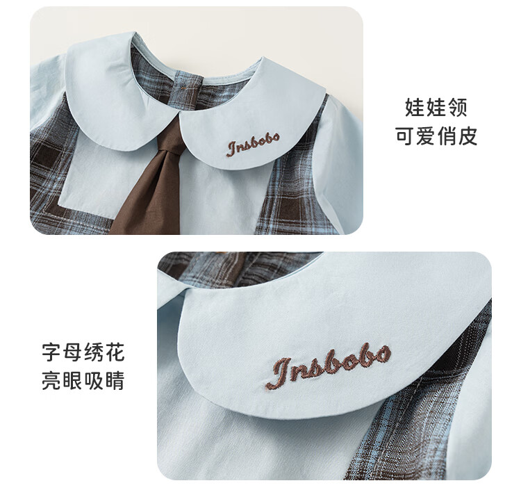 INSBOBO Girls' Dress 2026 Spring New Baby Skirt Children's Spring and Autumn Clothes Good-looking Children's Clothes Trendy Blue Checkered Free Accessories with Order 80