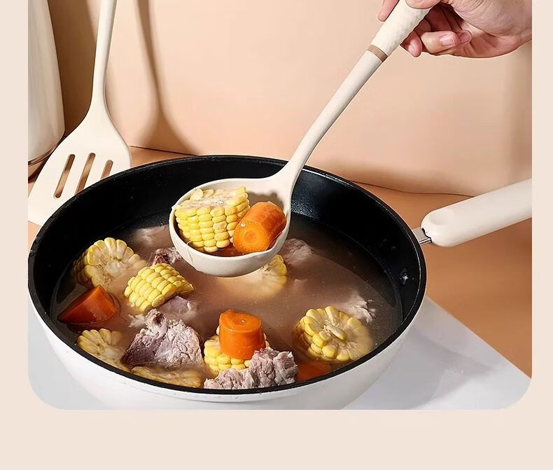 Jiyunmao silicone soup spoon, high temperature resistant food grade non-stick pot special spoon, household long handle soup spoon, large soup, newly upgraded soup spoon, lengthened, anti-scalding, thickened to protect the pot
