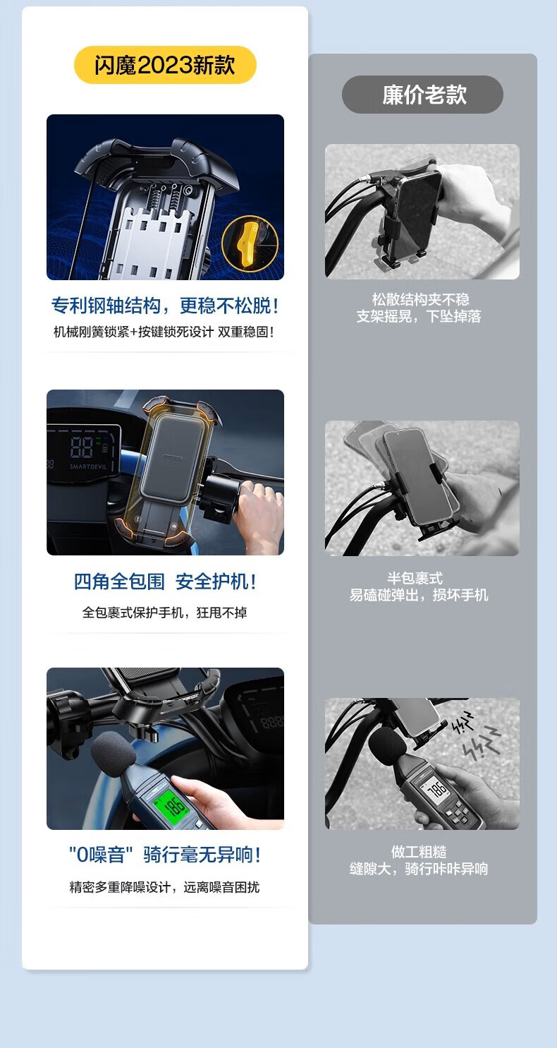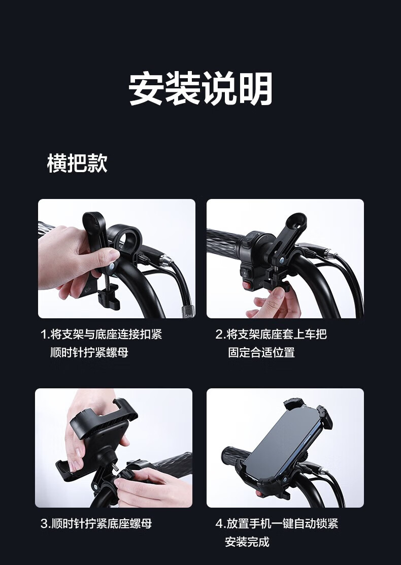 Shanmo Electric Vehicle Mobile Phone Holder Motorcycle Battery Car Bicycle Takeaway Rider Cycling Navigation Mobile Phone Holder Motorcycle/Electric Vehicle Cross Handle Holder