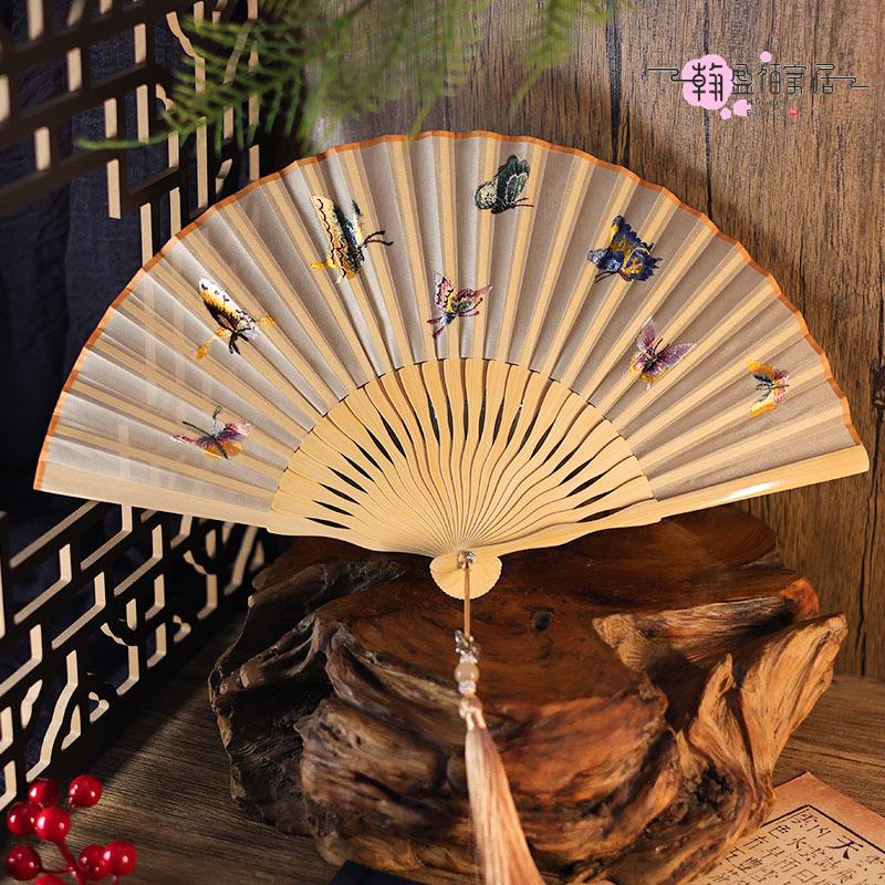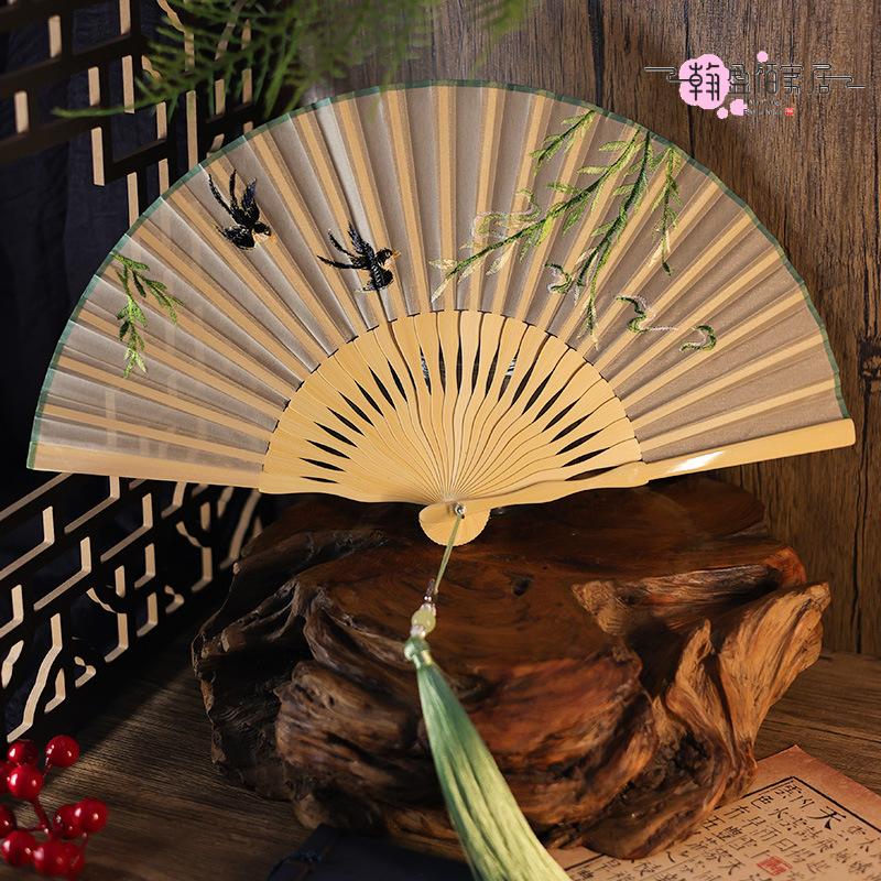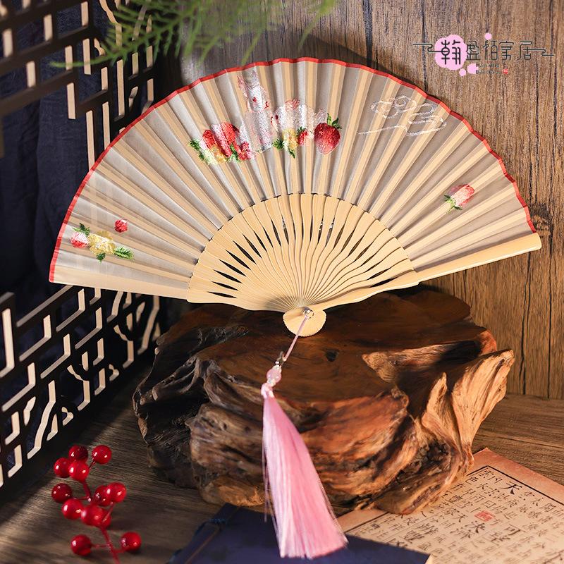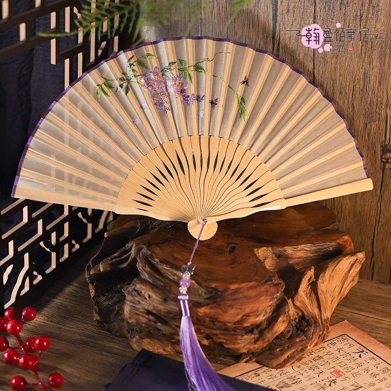 Sailotou Light Luxury Fan Ancient Style Folding Fan as a Gift High-end Suzhou Embroidery Fan Cheongsam Su Embroidery Double-sided Embroidery Girls' Middle School Gardenia