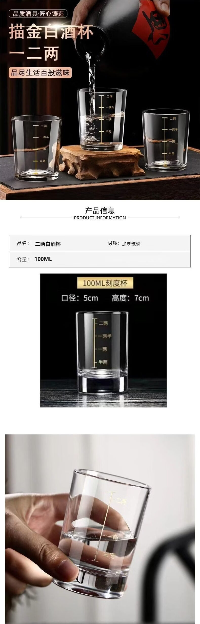 Tuojin German imported quality two-liang white wine glass with scale household tempered glass large wine divider wine set 2 6-piece small wine glass two-liang