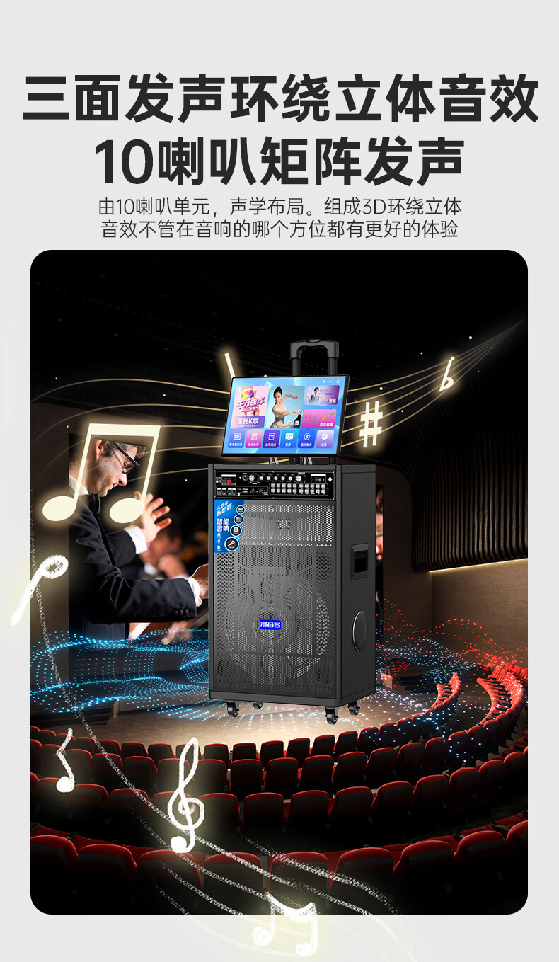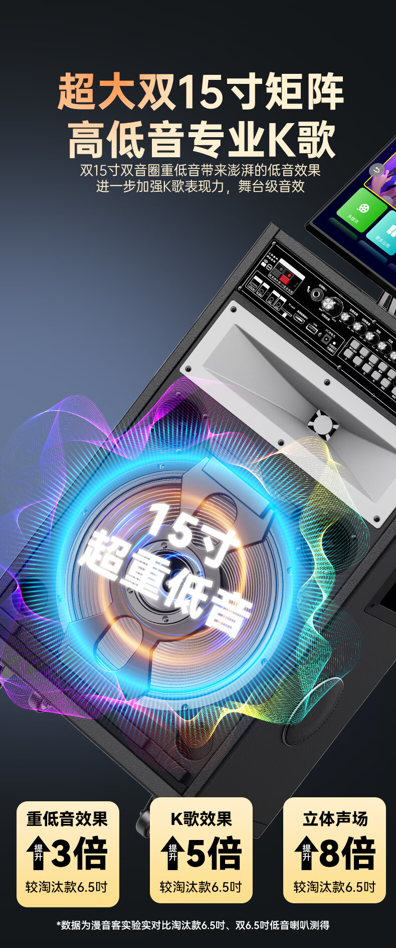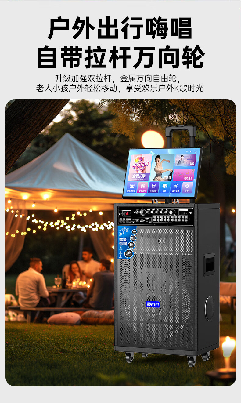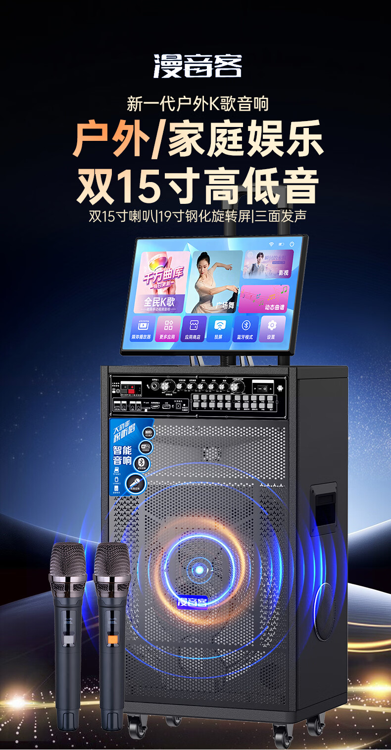 Manyinke 2026 new outdoor karaoke audio large volume karaoke all-in-one machine 15-inch high-power Bluetooth square dance audio with screen singing and dancing karaoke OKKTV trolley speaker fifth generation rotating screen karaoke audio + dual charging microphones + luxury gift package
