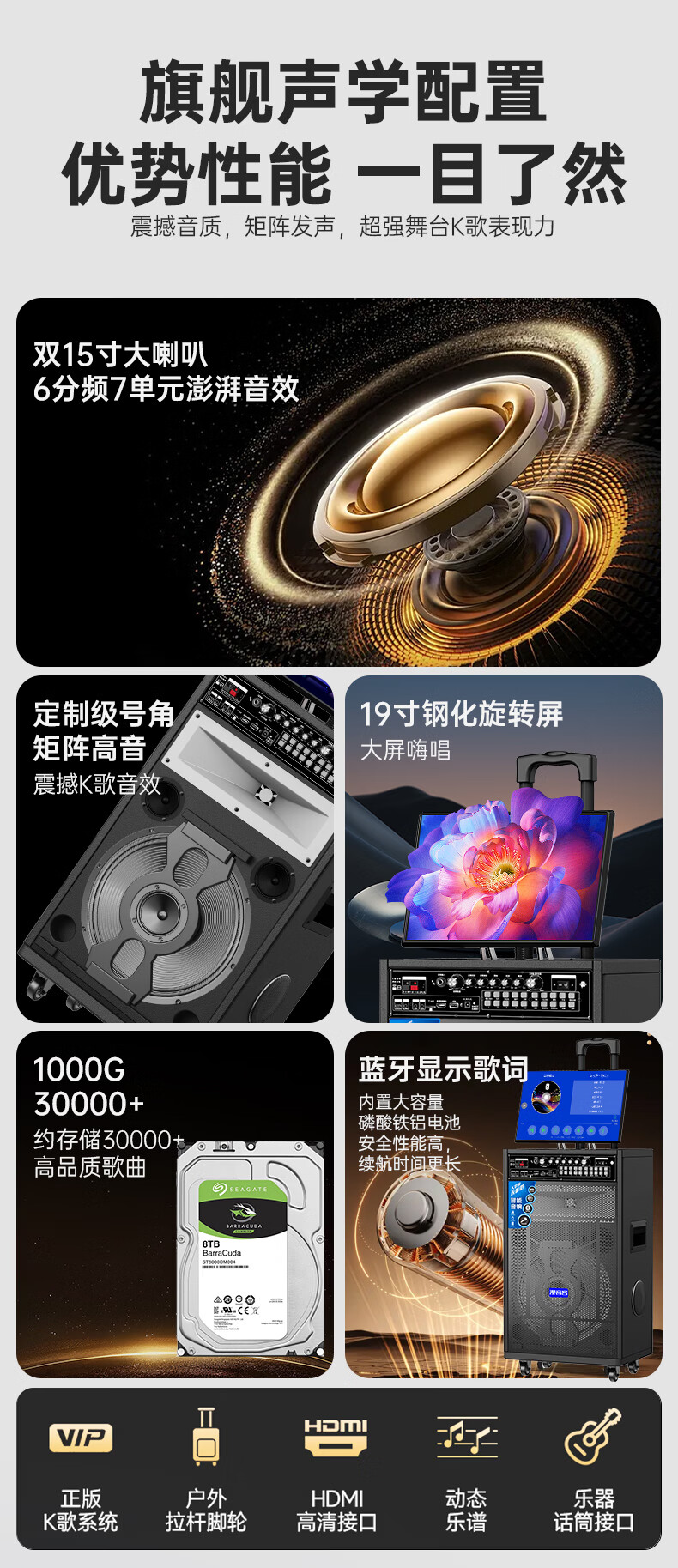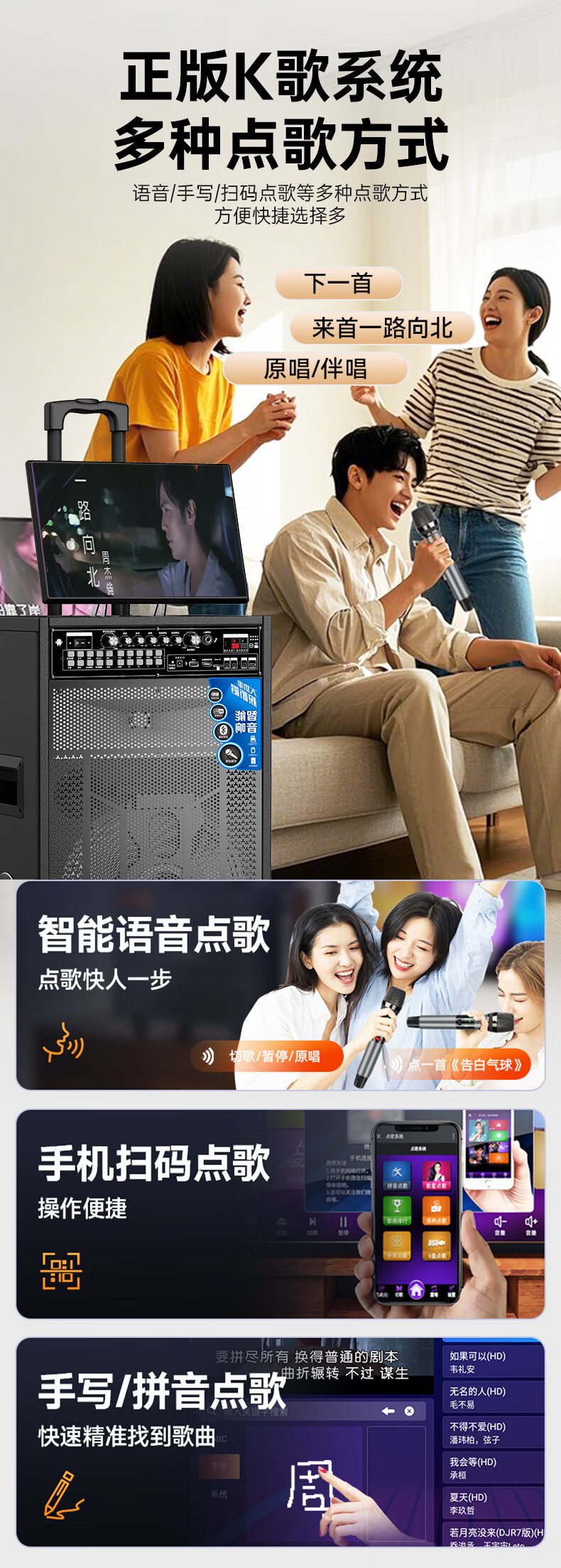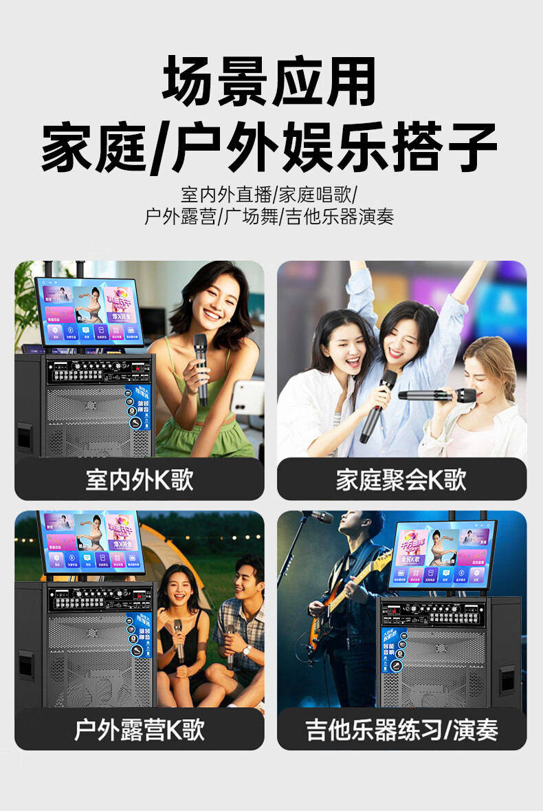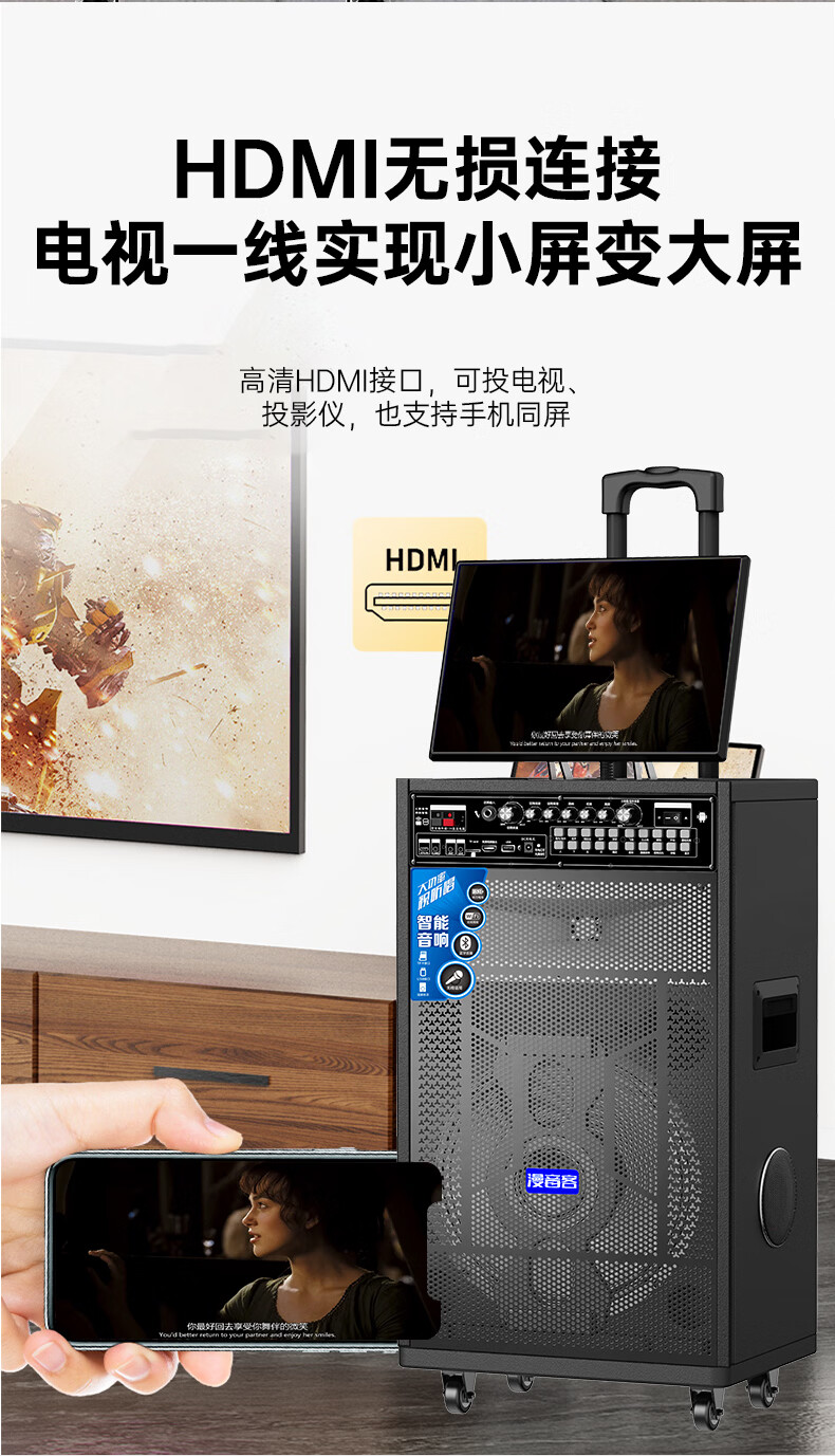 Manyinke 2026 new outdoor karaoke audio large volume karaoke all-in-one machine 15-inch high-power Bluetooth square dance audio with screen singing and dancing karaoke OKKTV trolley speaker fifth generation rotating screen karaoke audio + dual charging microphones + luxury gift package