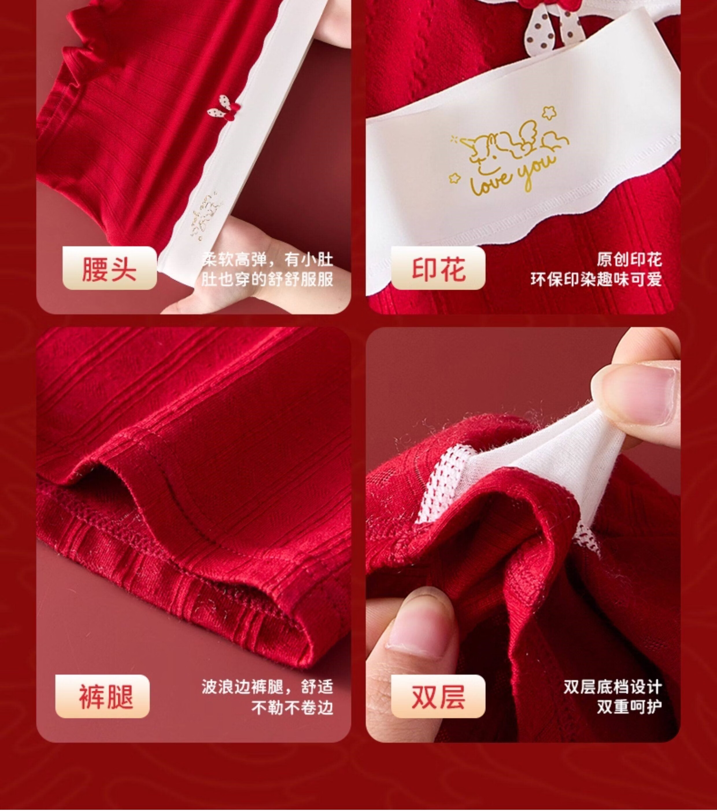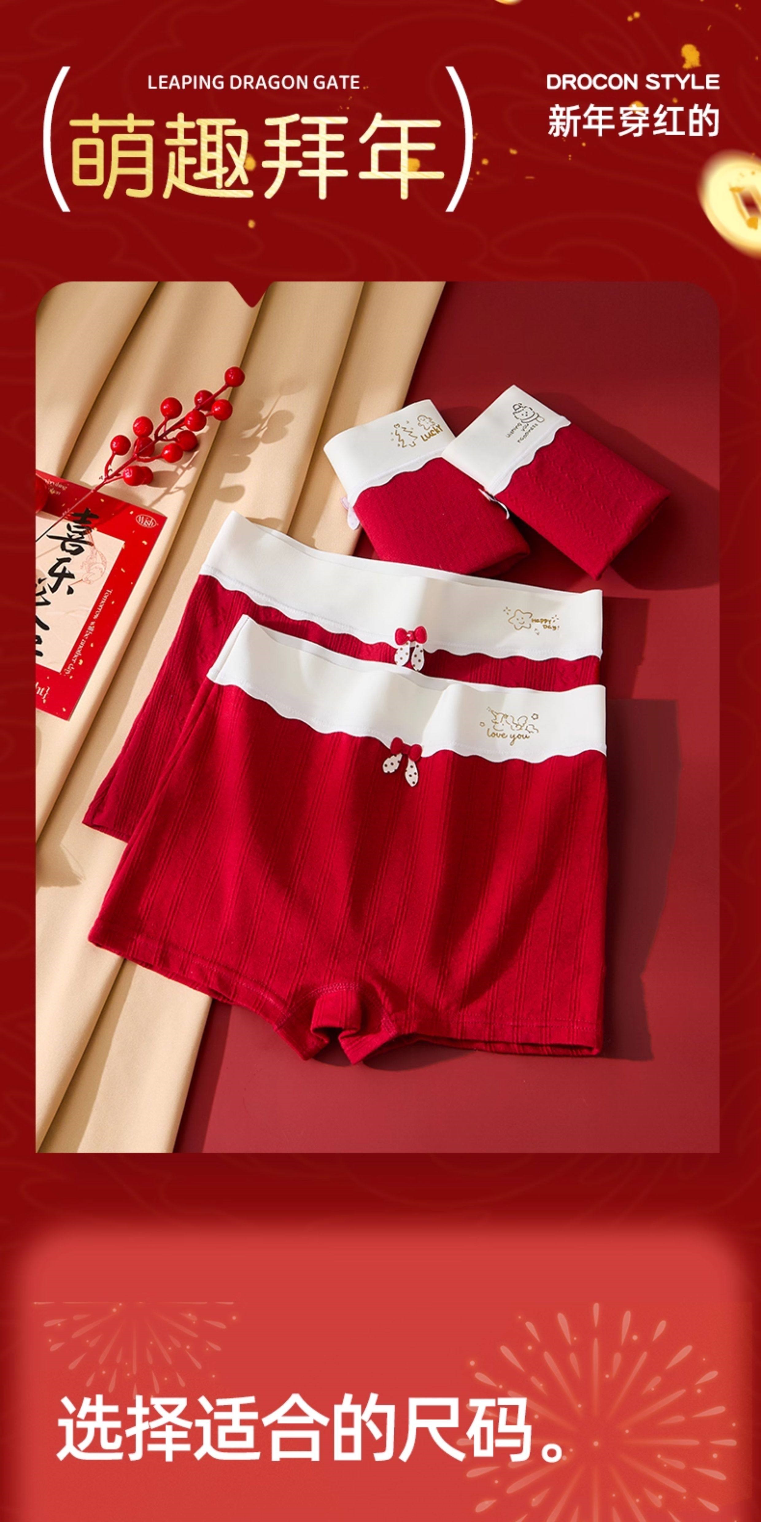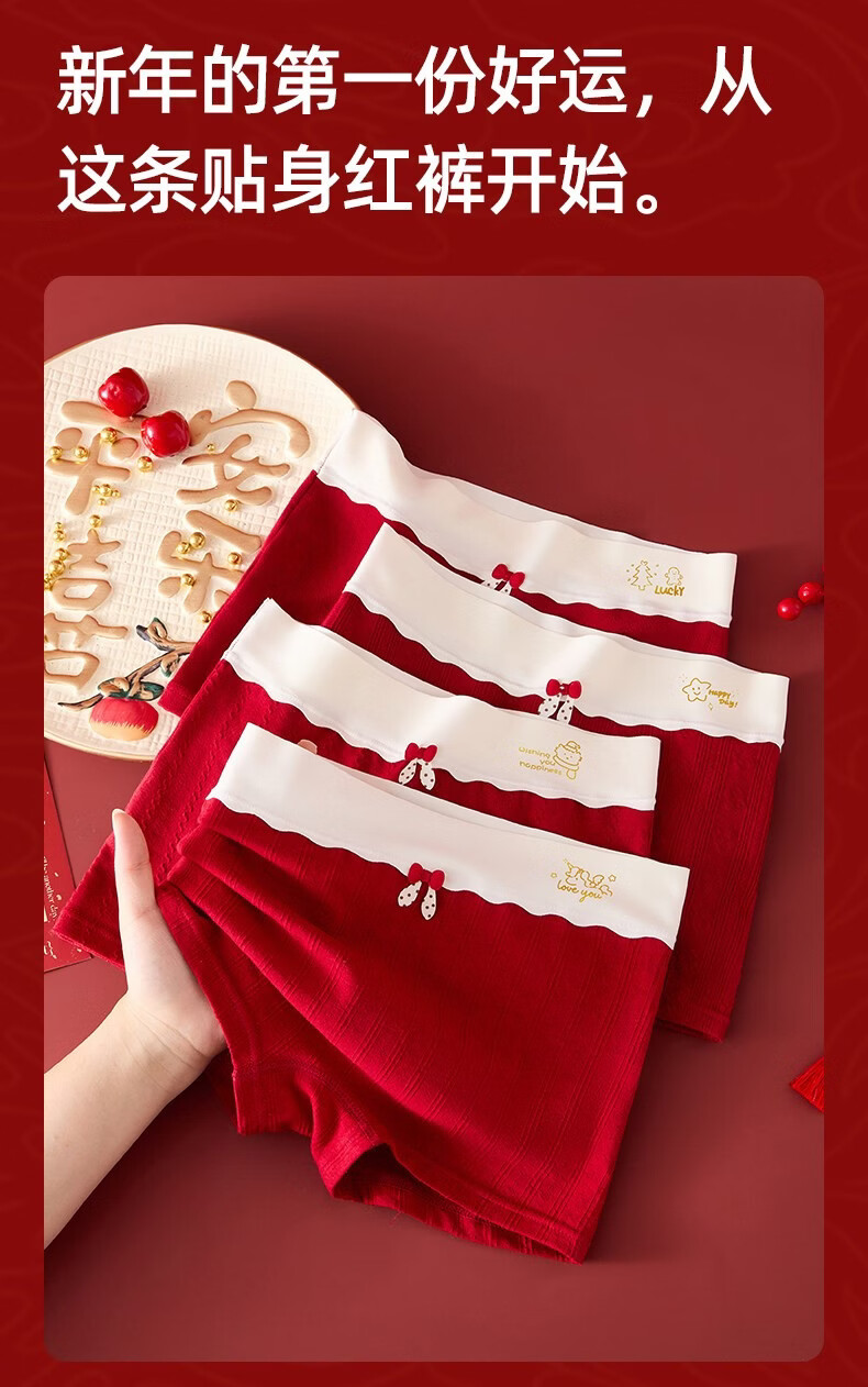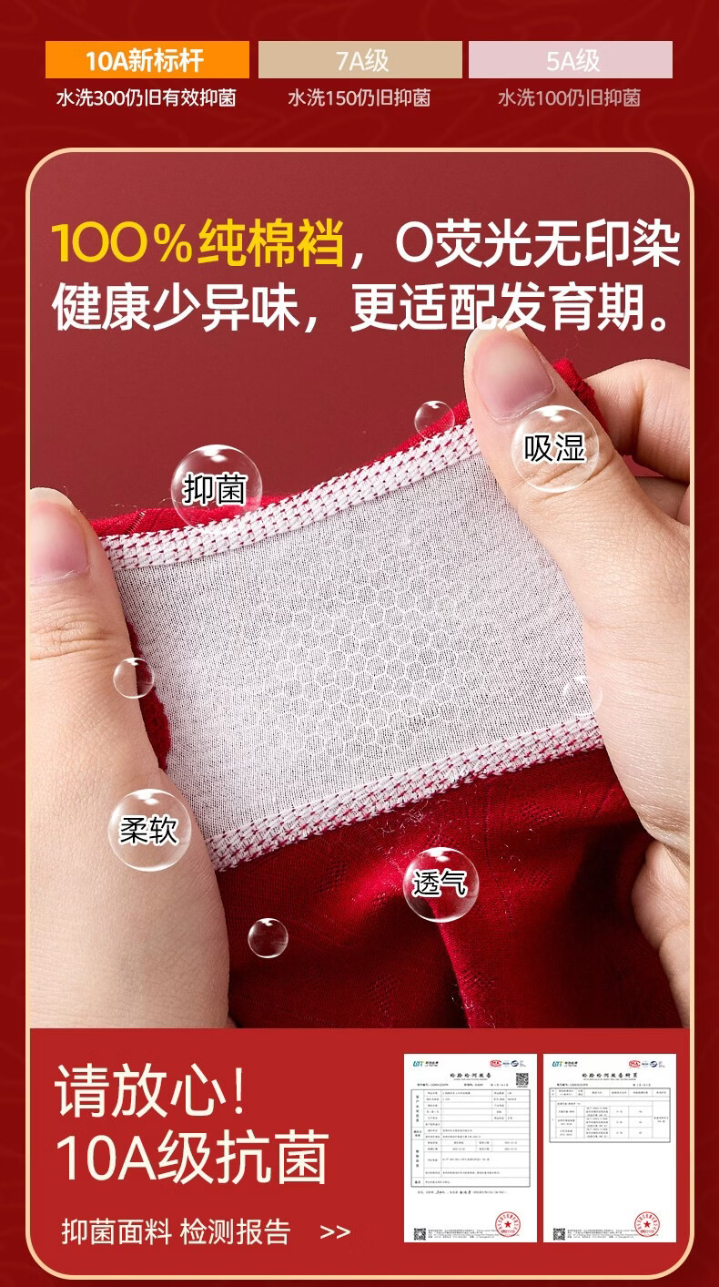 Cat Man (MiiOW) Girls' Zodiac Year Red Underwear Children's Category A Boxer Briefs Breathable 12 Years Old Year of the Horse 2026 New Style Ma Bao Blessing 4 Packs One Size (S) 40-50Jin Jin is equal to 0.5 kg