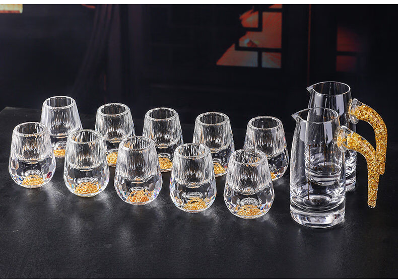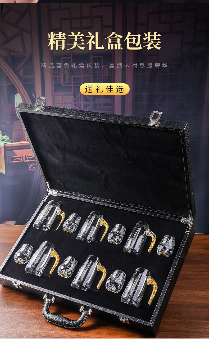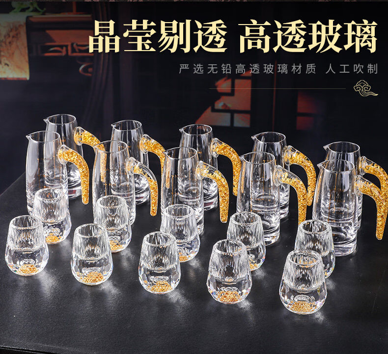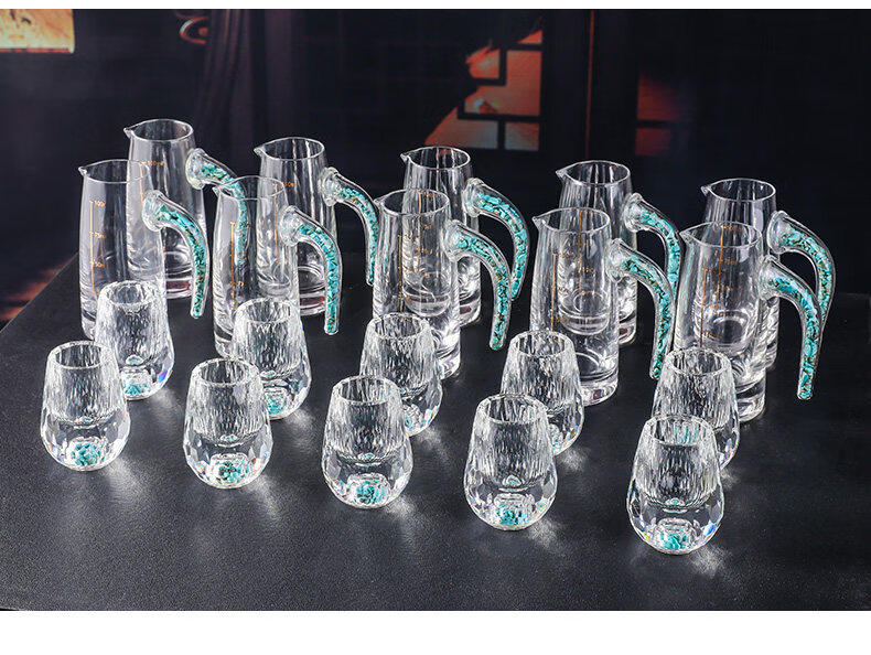 Tuojin imported quality gold foil white wine cup from Germany, Chinese wine cup, household wine divider, light luxury turquoise one-shot spirit cup, 1 pot, 6 cups, turquoise water drop cup_gift box