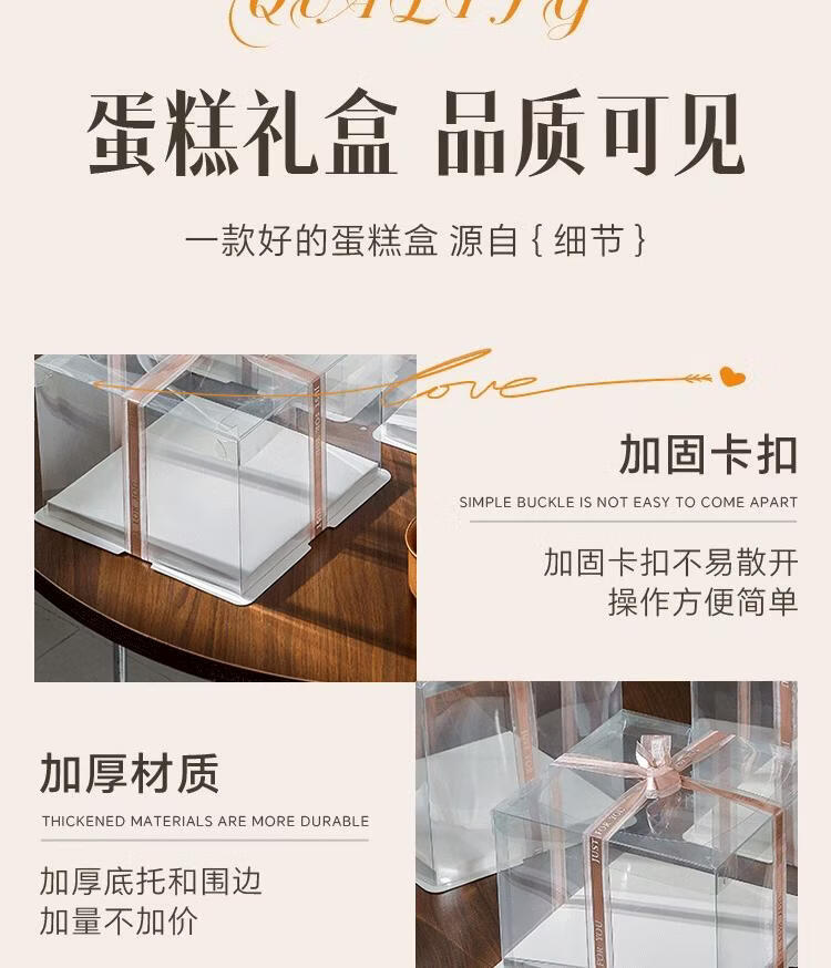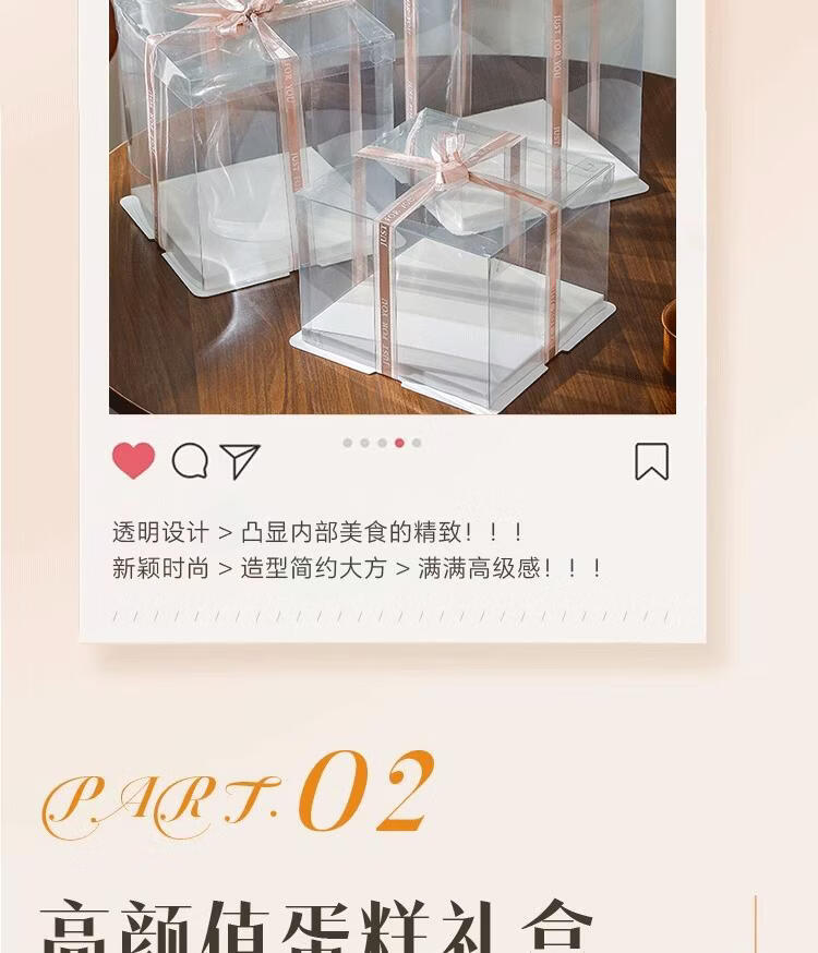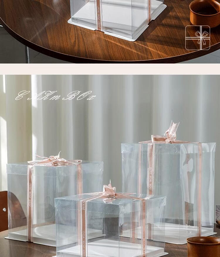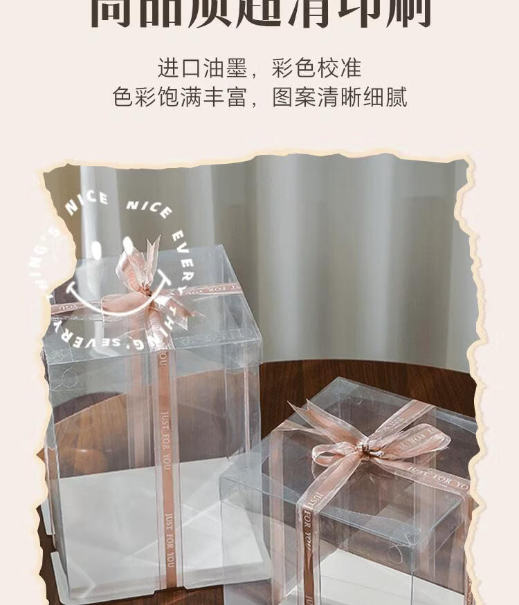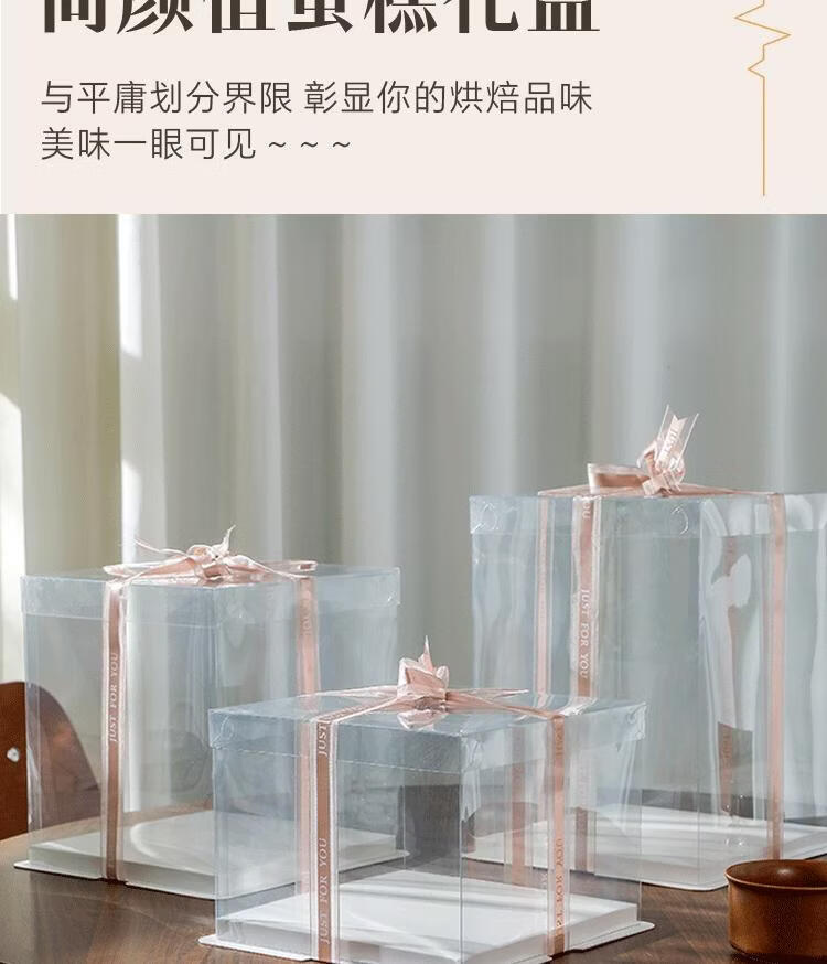 Internet celebrity customized fully transparent birthday cake box double layer heightening 44668812 inch baking packaging box fully transparent (set of 50) 10 inch double layer 30*30*24cm