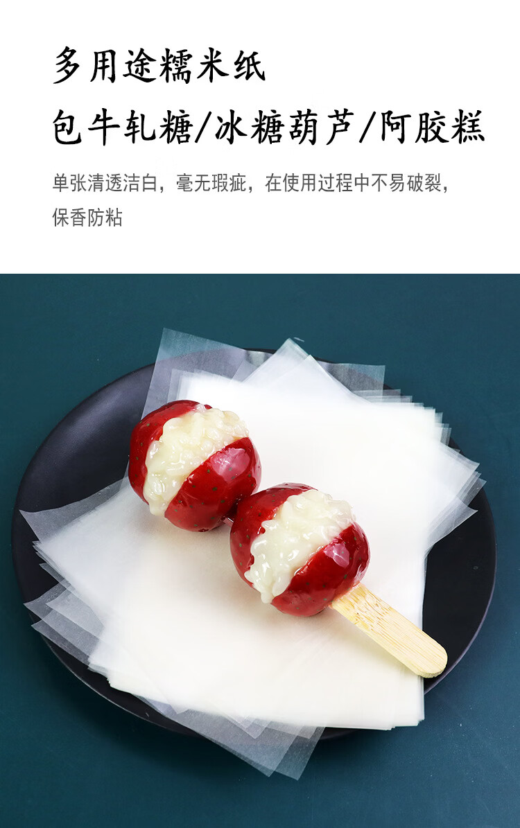 Shantou Lincun candied haws glutinous rice paper candy paper donkey hide gelatin cake glutinous rice paper bag anti-chemical oil paper adhesion packaging bag food grade 15*23CM500 sheets/pack vacuum packaging