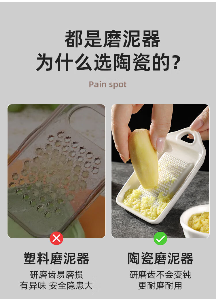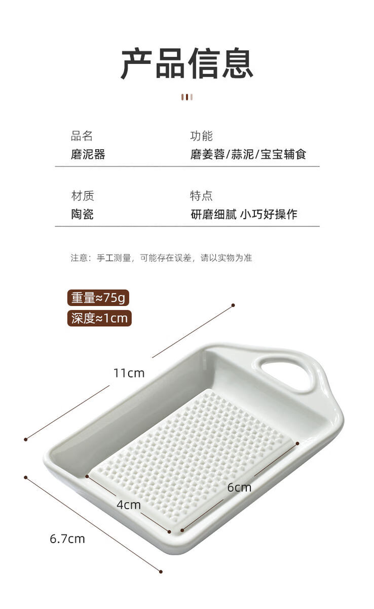Fantasy Ginger and Garlic Mud Ginger Grinder Ginger Grinder is compact, convenient and labor-saving for squeezing garlic juice, grinding ginger juice and grinding ginger and garlic paste. 1 square grater comes with a cleaning brush.