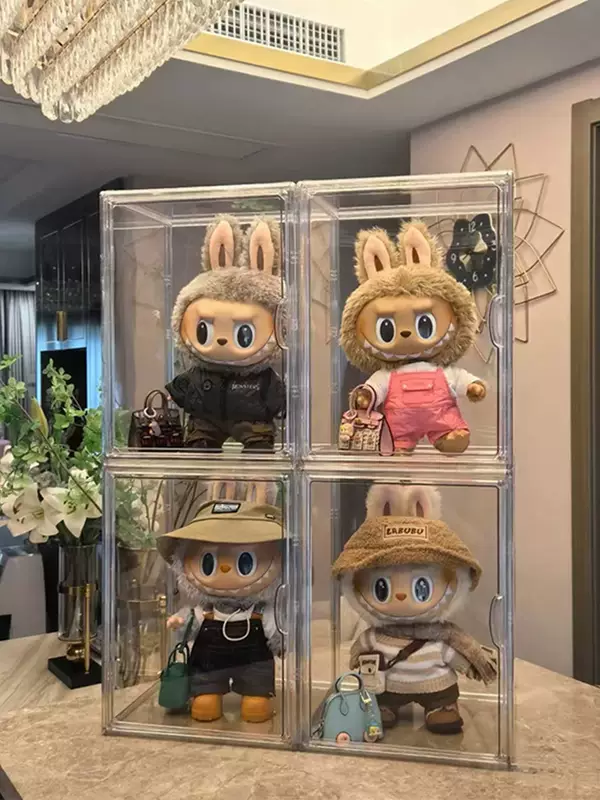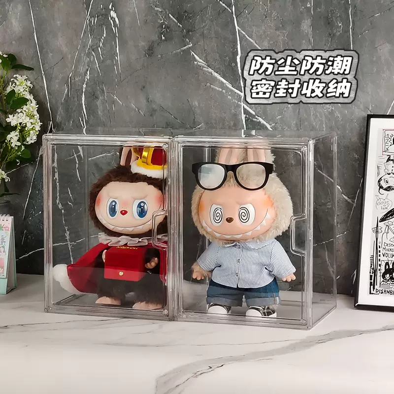 Yusenyi labubu doll display box macaron acrylic labubu figure sitting party doll storage box upgraded extra large 1 transparent king chess adventure