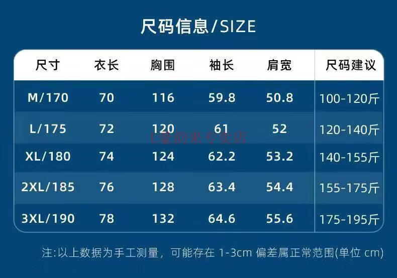 China (cm) 165 / 88-90 170 / 96-98 175 / 108-110 180 / 118-122 185 / 126-130