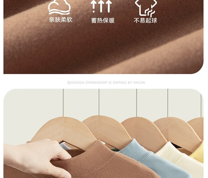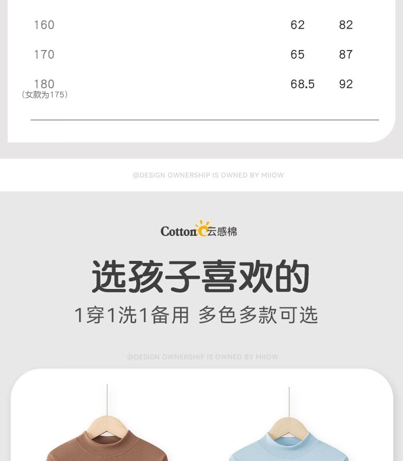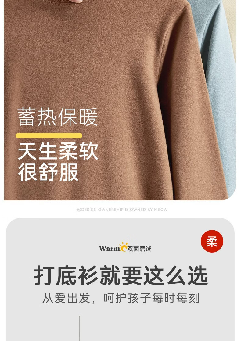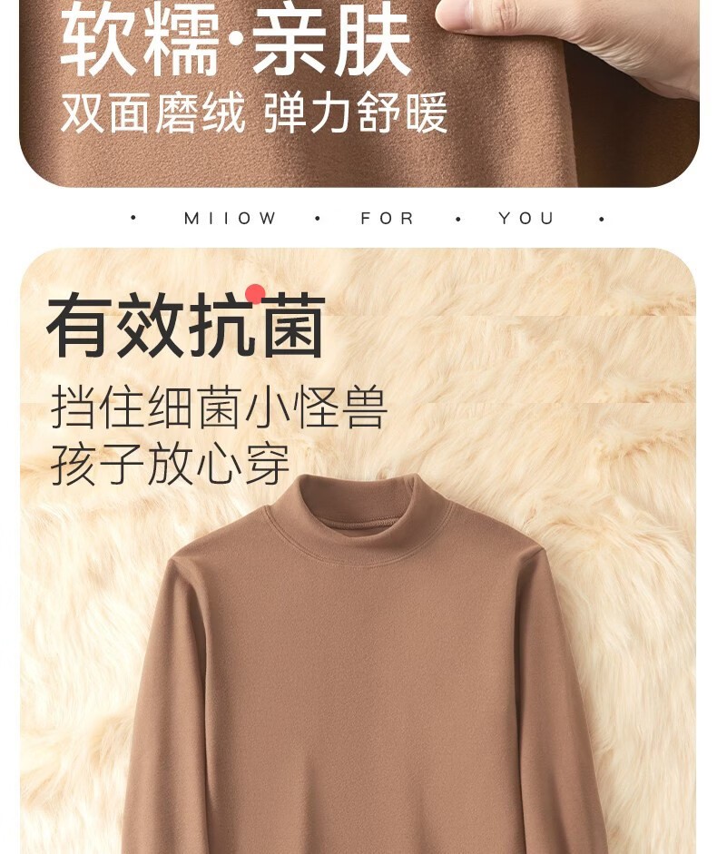 MiiOW boys and older children's velvet bottoming shirt half turtleneck inner wear children and teenagers sleeping autumn tops women's thermal underwear coffee + beige 120 (recommended 20-39 Jin Jin equals 0.5 kg) same style for men and women