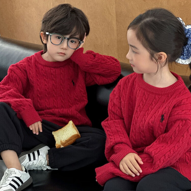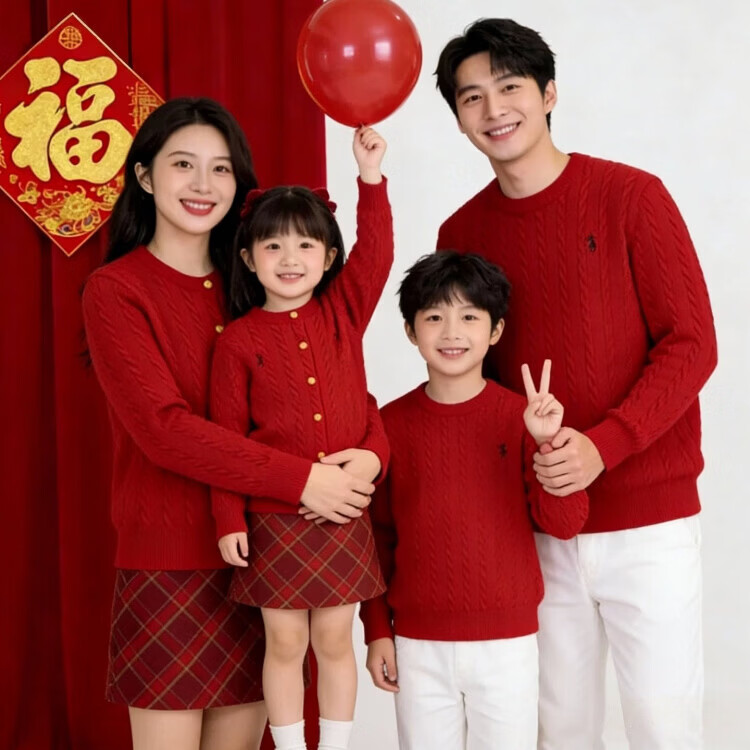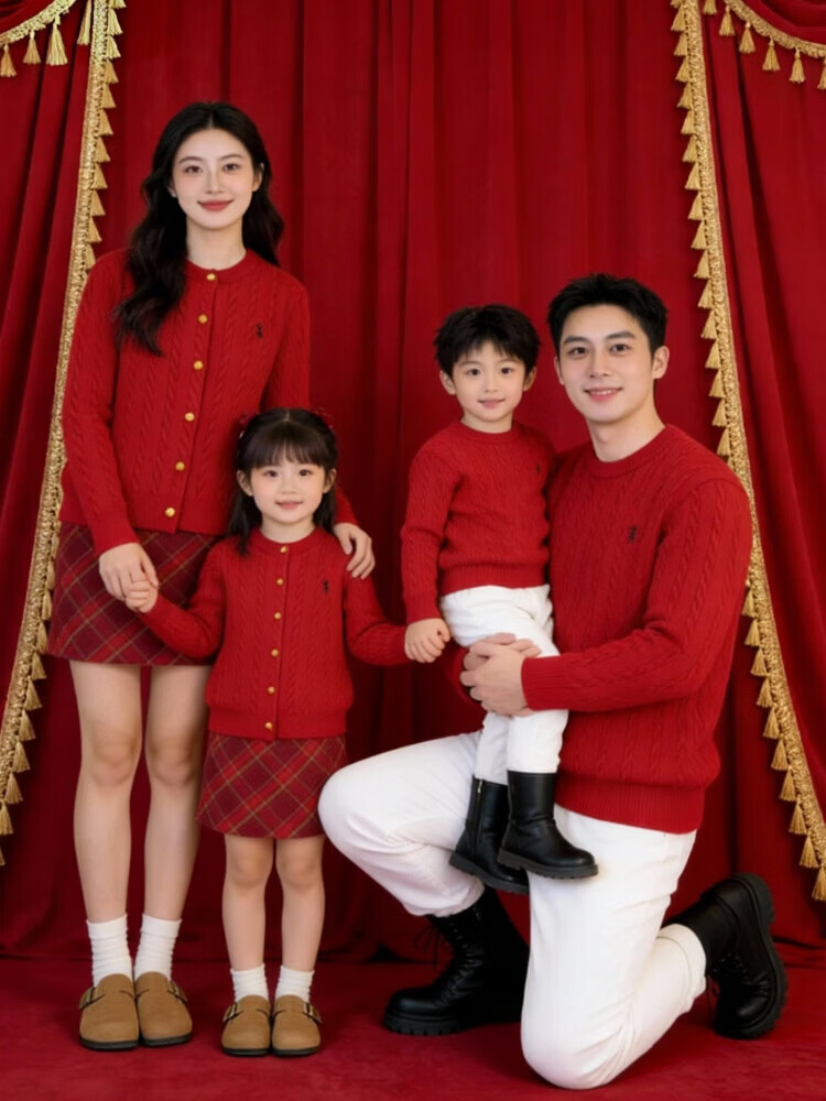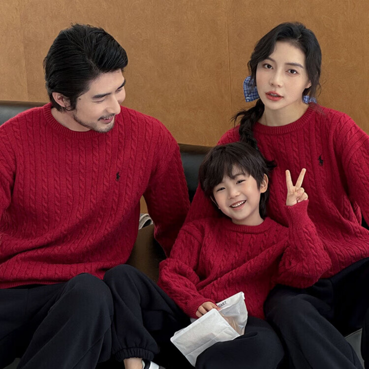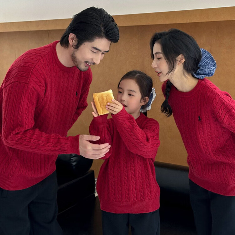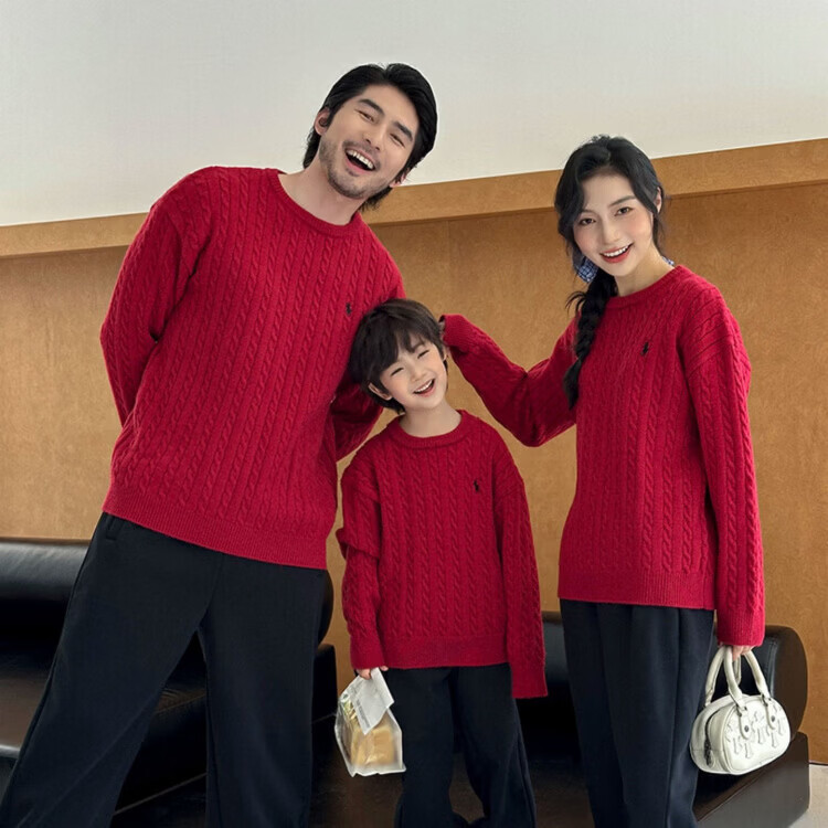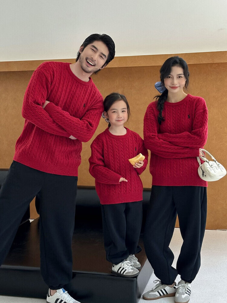 G.duck's new red parent-child sweater Christmas mother-daughter pony twist sweater for a family of three or four, red round neck 190 XXXL