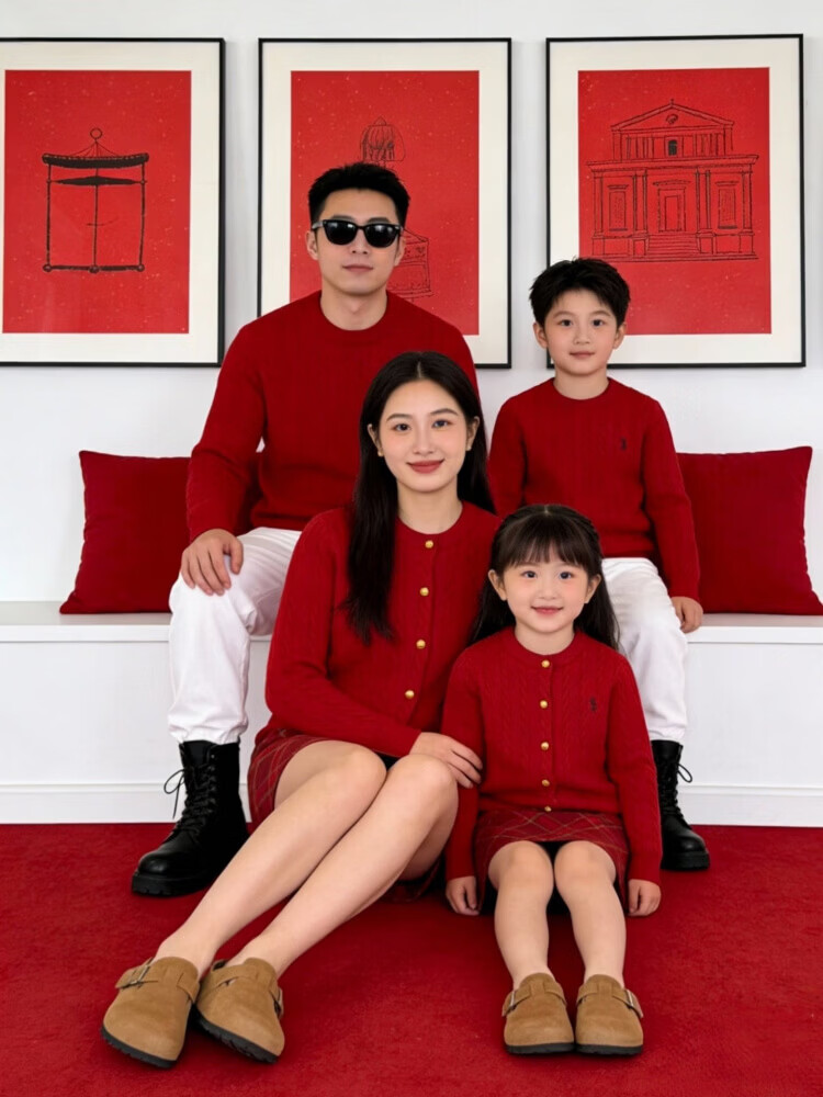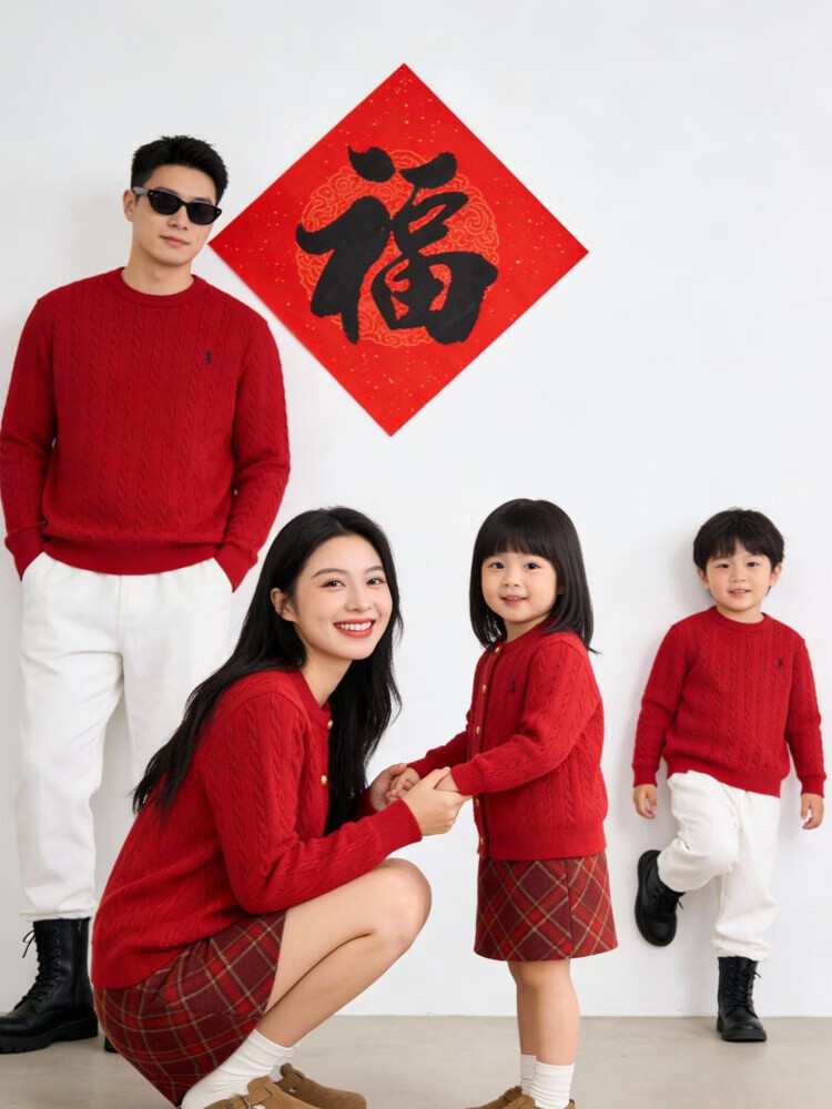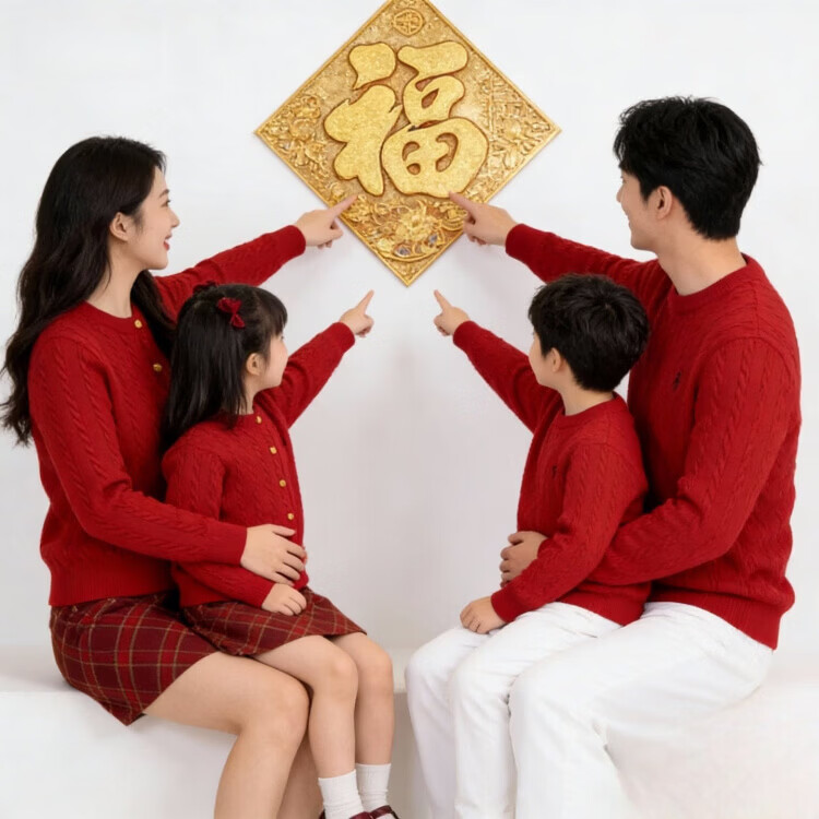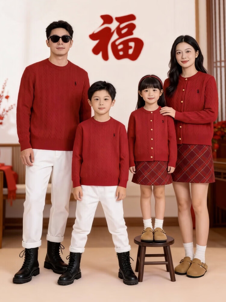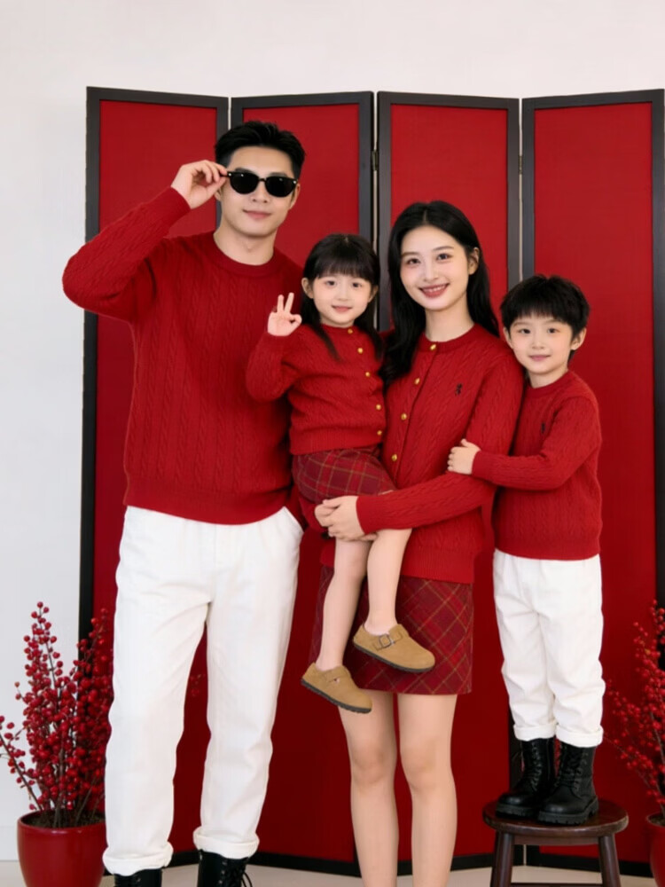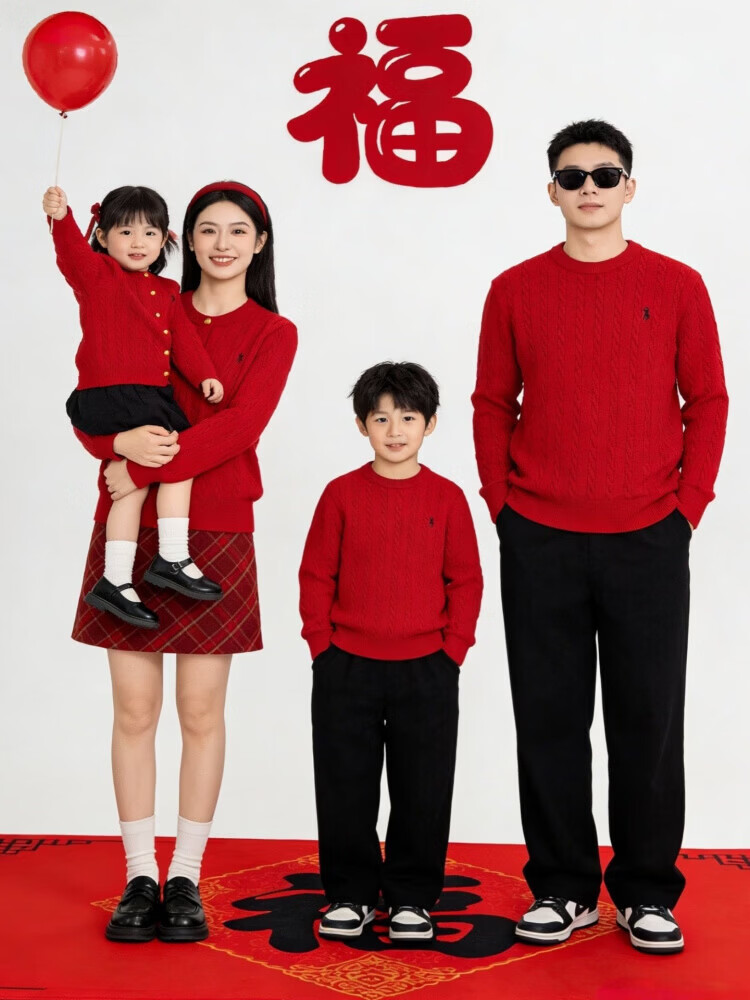 G.duck's new red parent-child sweater Christmas mother-daughter pony twist sweater for a family of three or four, red round neck 190 XXXL