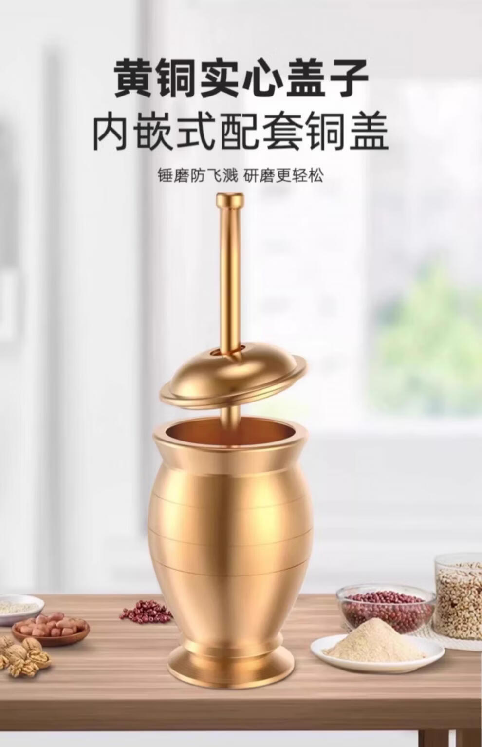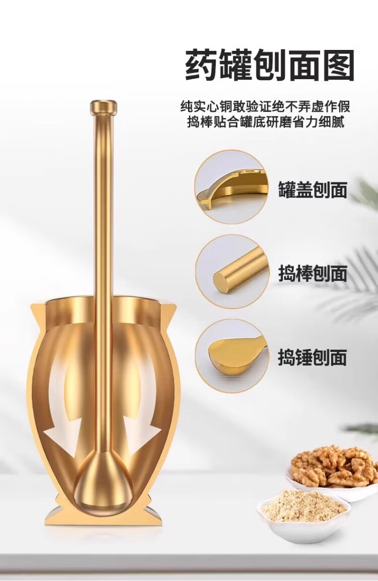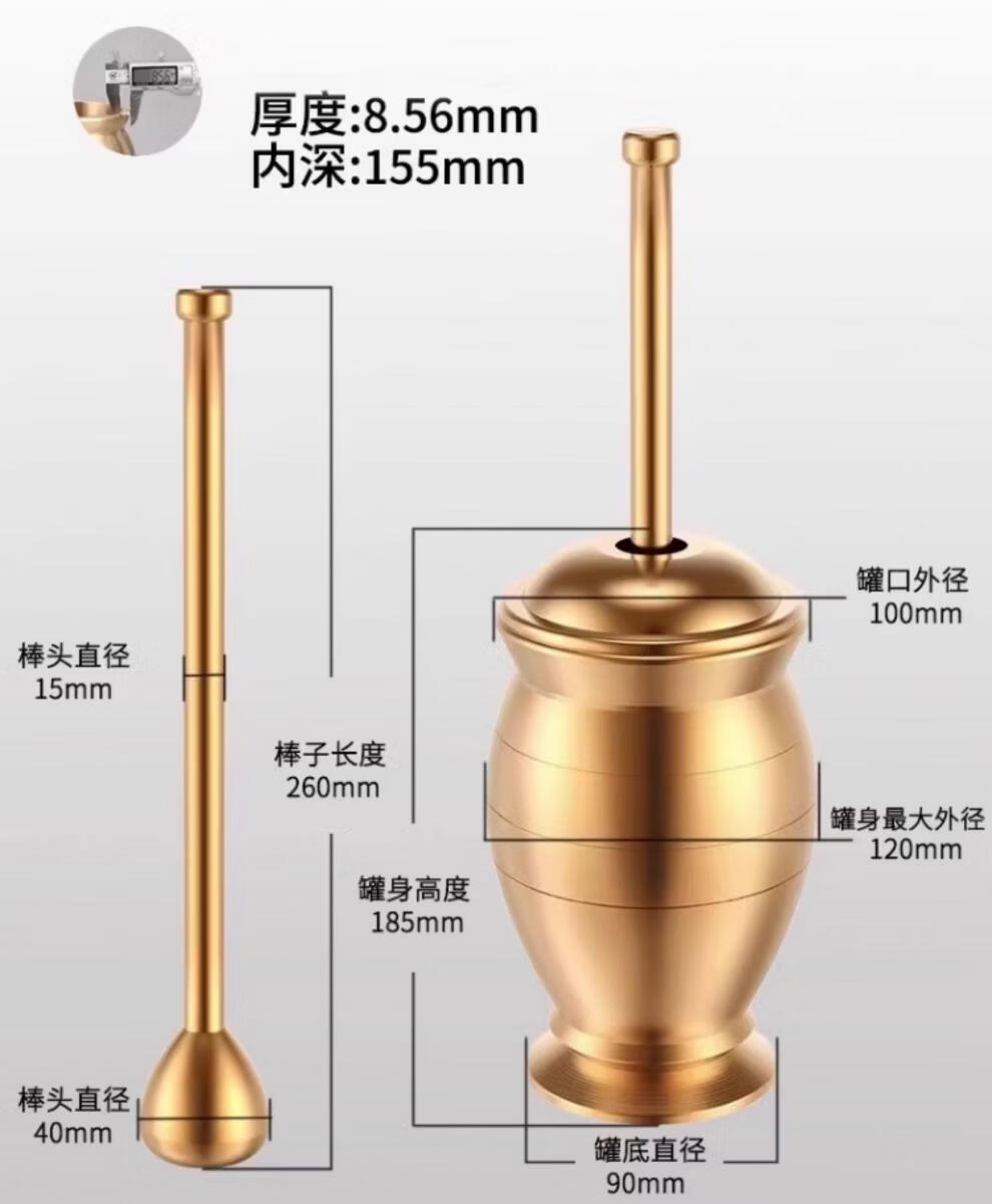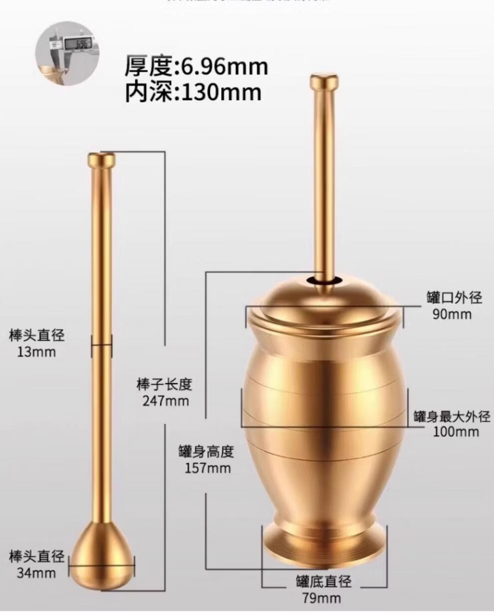 Tuojin imported high-quality solid brass traditional Chinese medicine pounding jar from Germany for home use, old-fashioned copper mortar, brass cup, grinding bowl, ultra-thick upgrade, small size, free leather pad