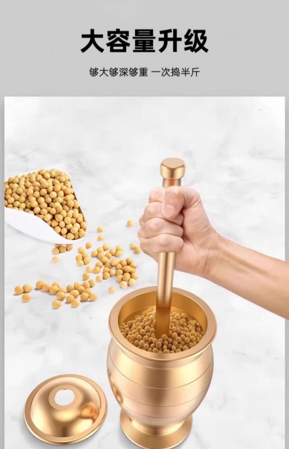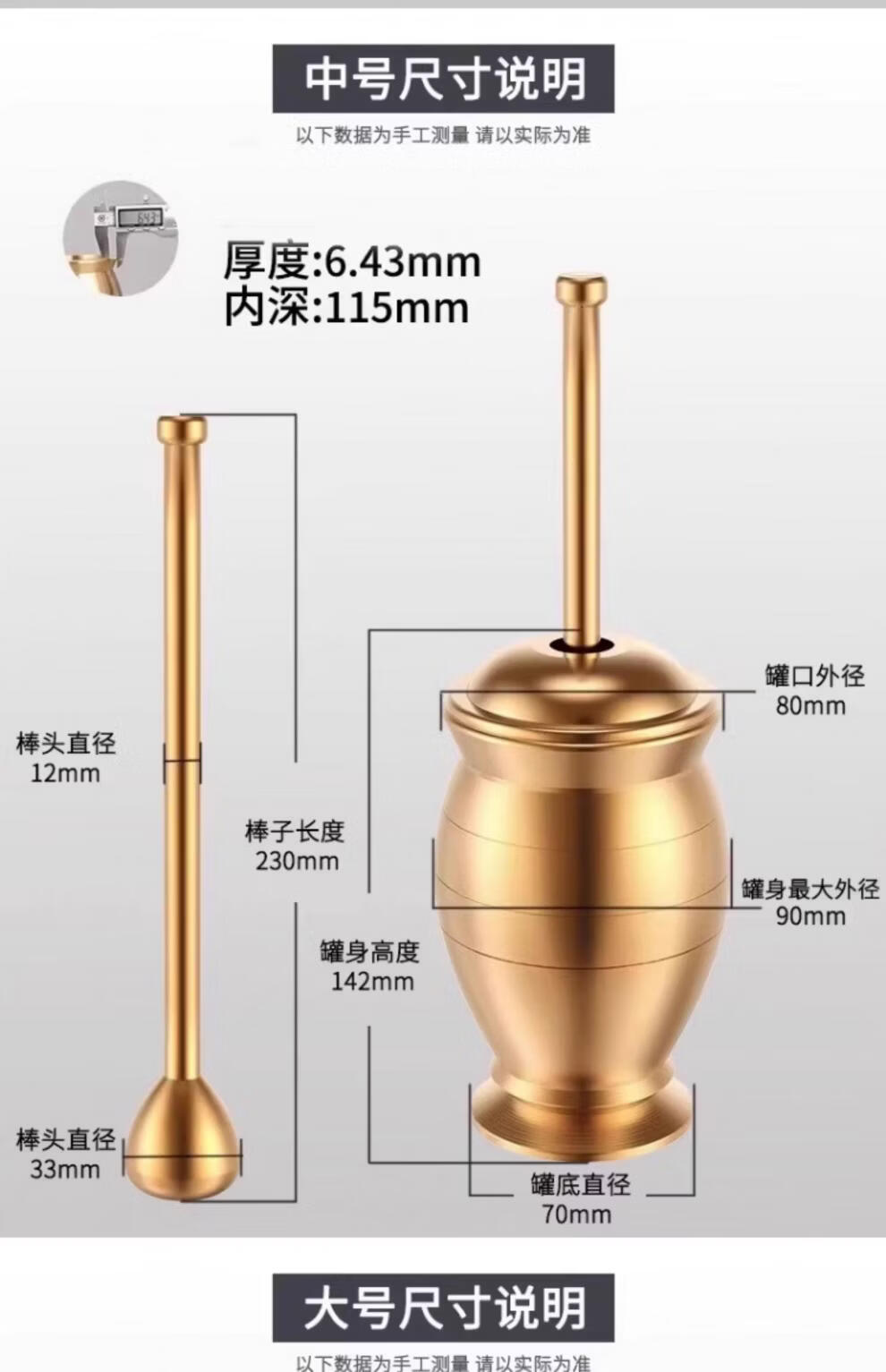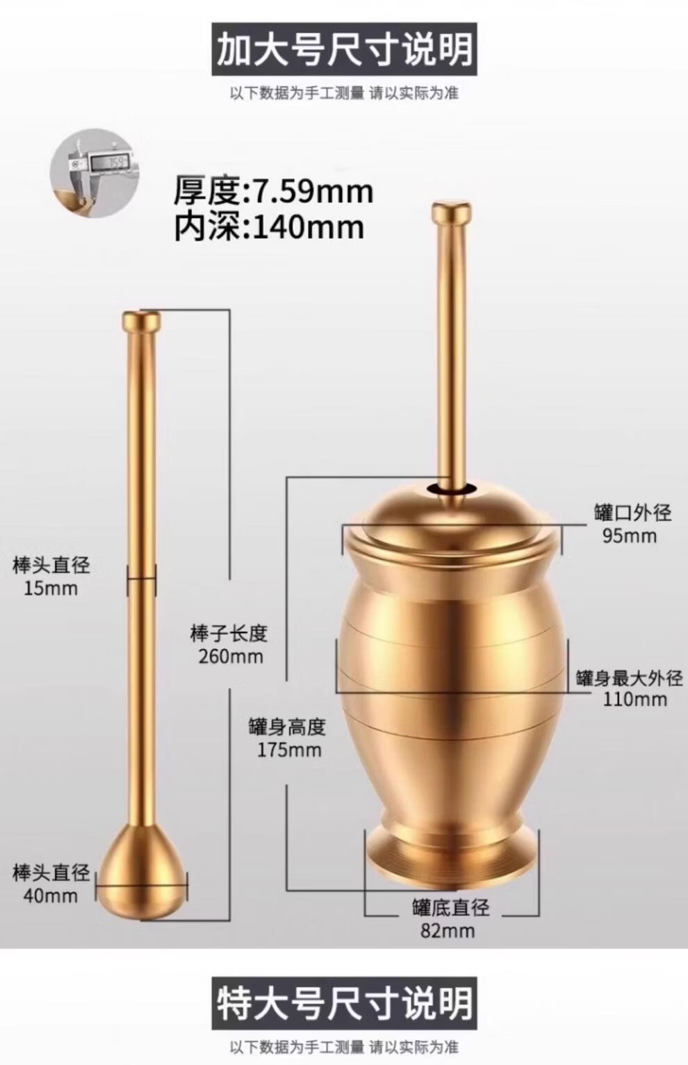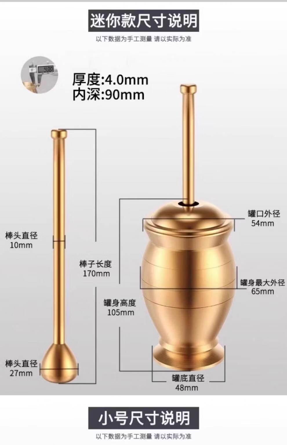 Tuojin imported high-quality solid brass traditional Chinese medicine pounding jar from Germany for home use, old-fashioned copper mortar, brass cup, grinding bowl, ultra-thick upgrade, small size, free leather pad