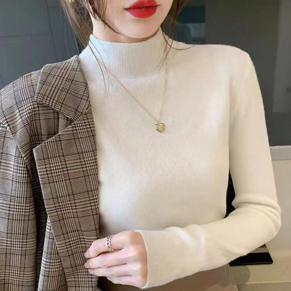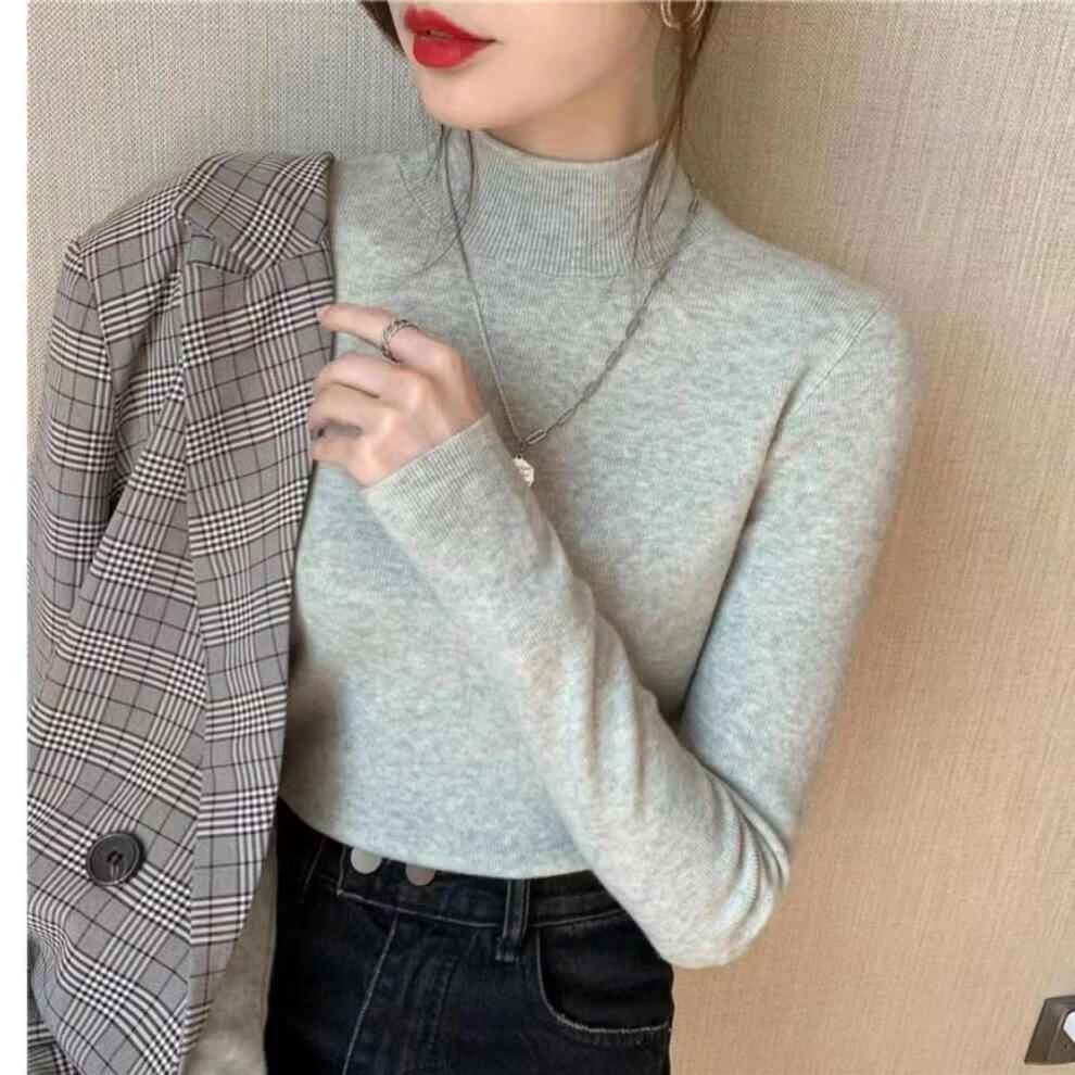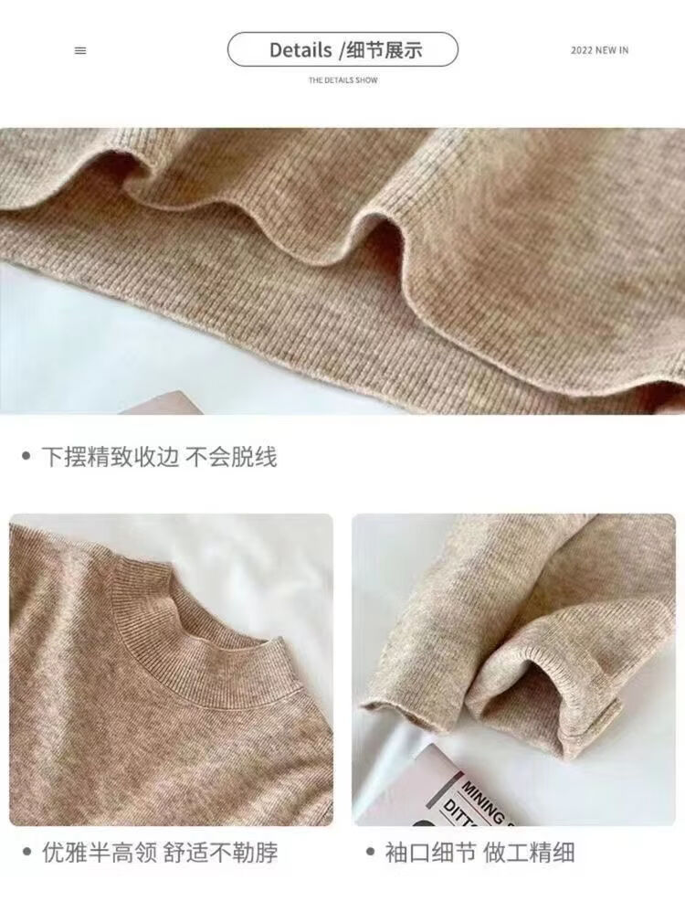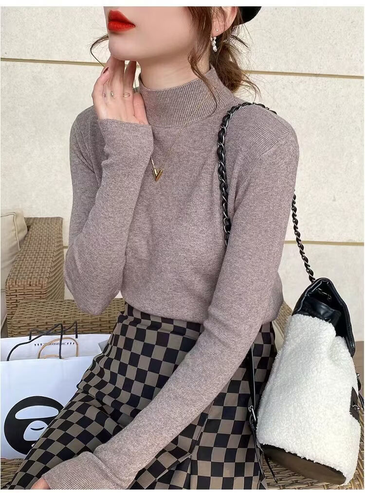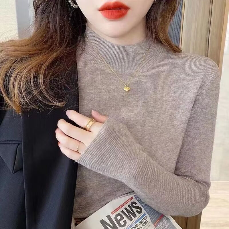 ROMON Half Turtleneck Sweater Women's New Autumn and Winter Knitted Sweater Slim Fit Bottoming Shirt Versatile Western Style Tight Top Brown S 80-95Jin Jin is equal to 0.5 kg
