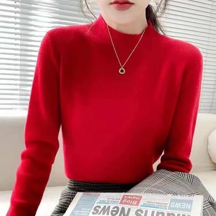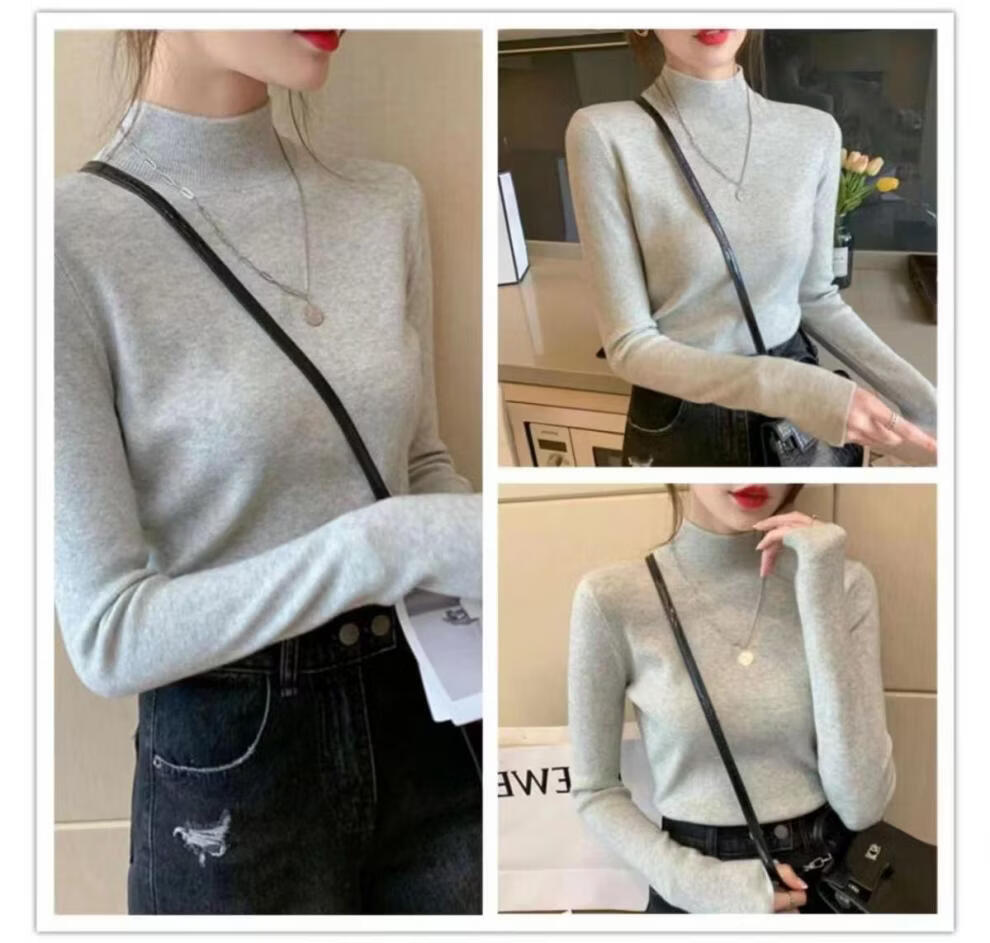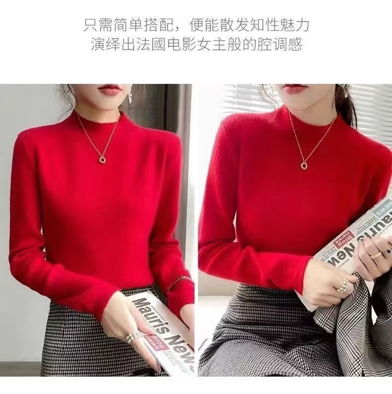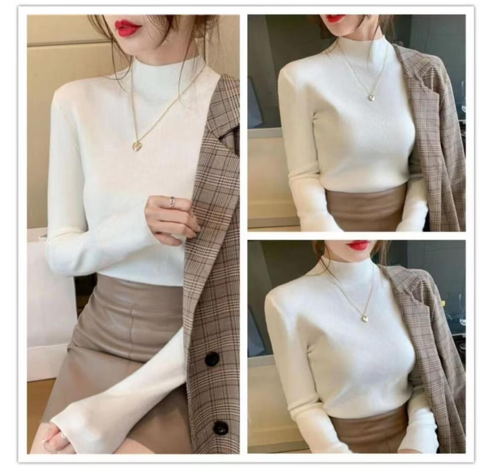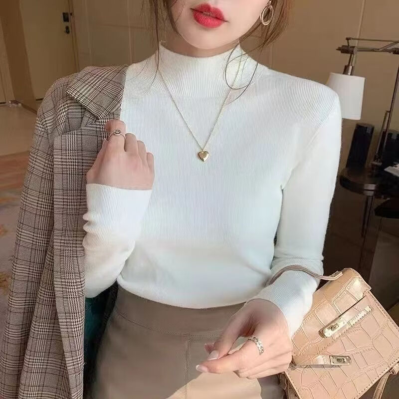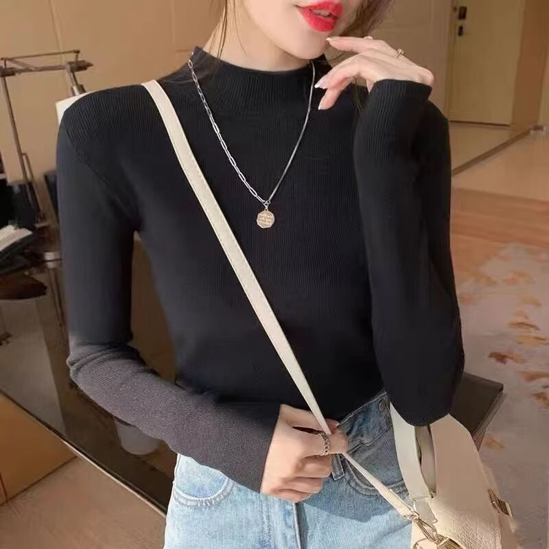 ROMON Half Turtleneck Sweater Women's New Autumn and Winter Knitted Sweater Slim Fit Bottoming Shirt Versatile Western Style Tight Top Brown S 80-95Jin Jin is equal to 0.5 kg
