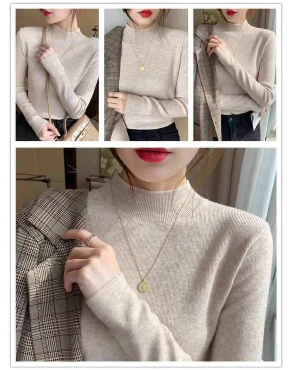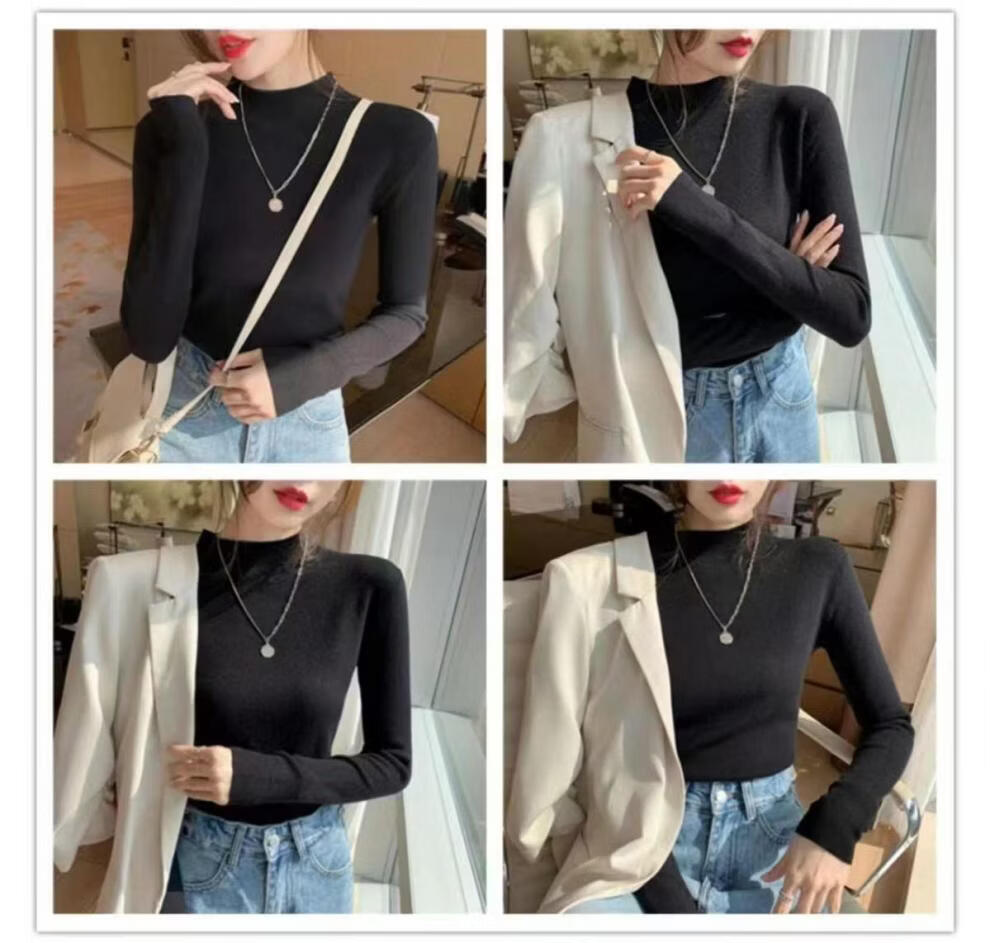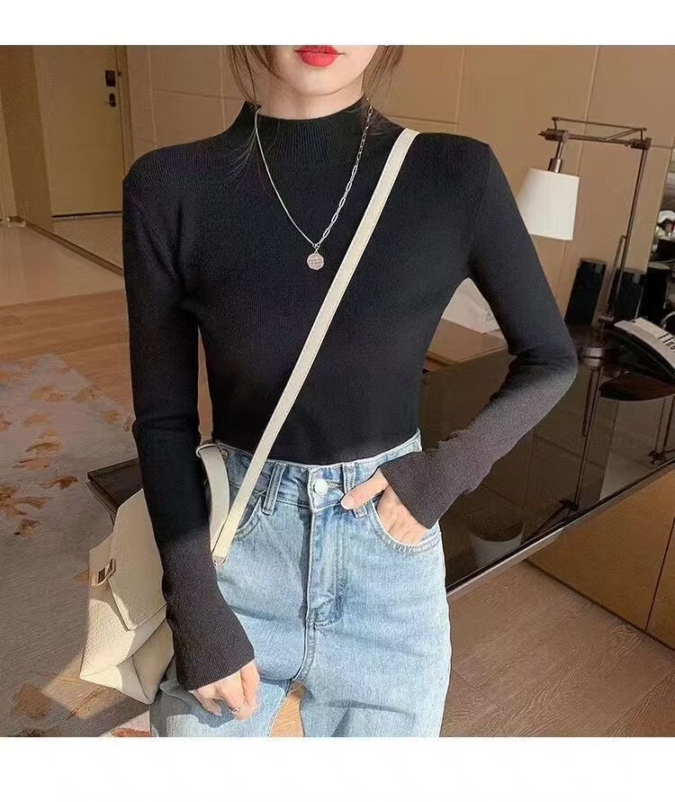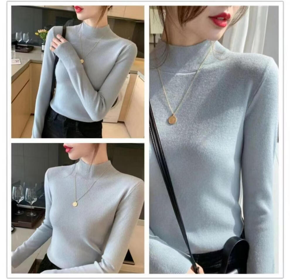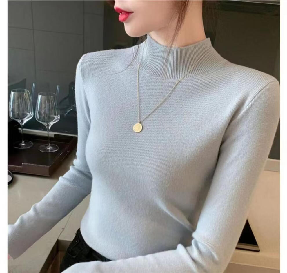 ROMON Half Turtleneck Sweater Women's New Autumn and Winter Knitted Sweater Slim Fit Bottoming Shirt Versatile Western Style Tight Top Brown S 80-95Jin Jin is equal to 0.5 kg
