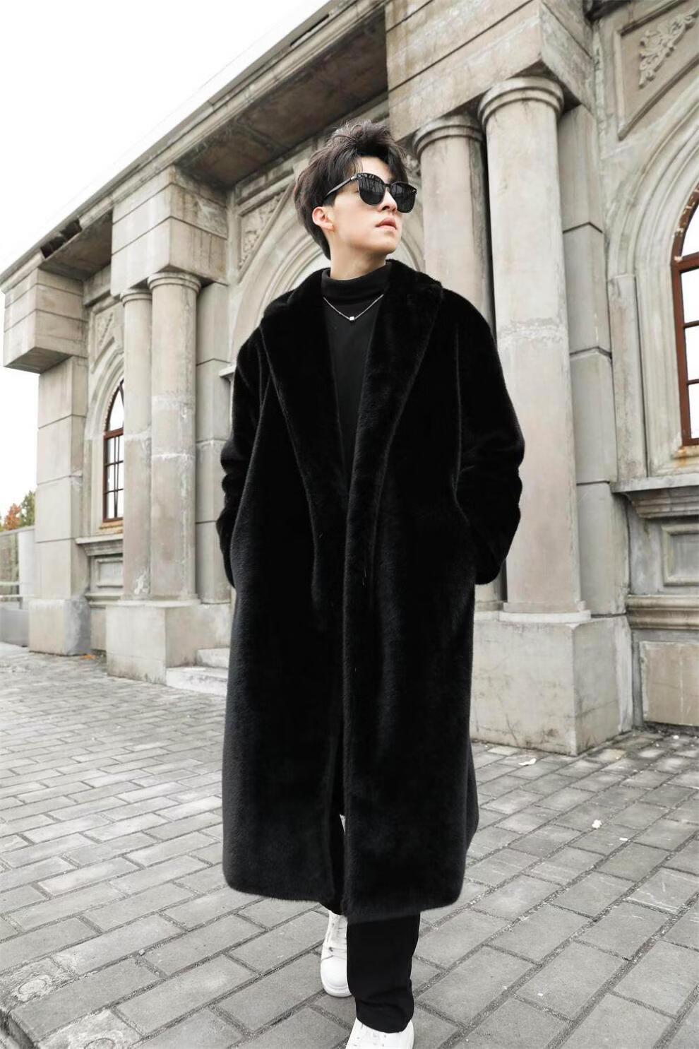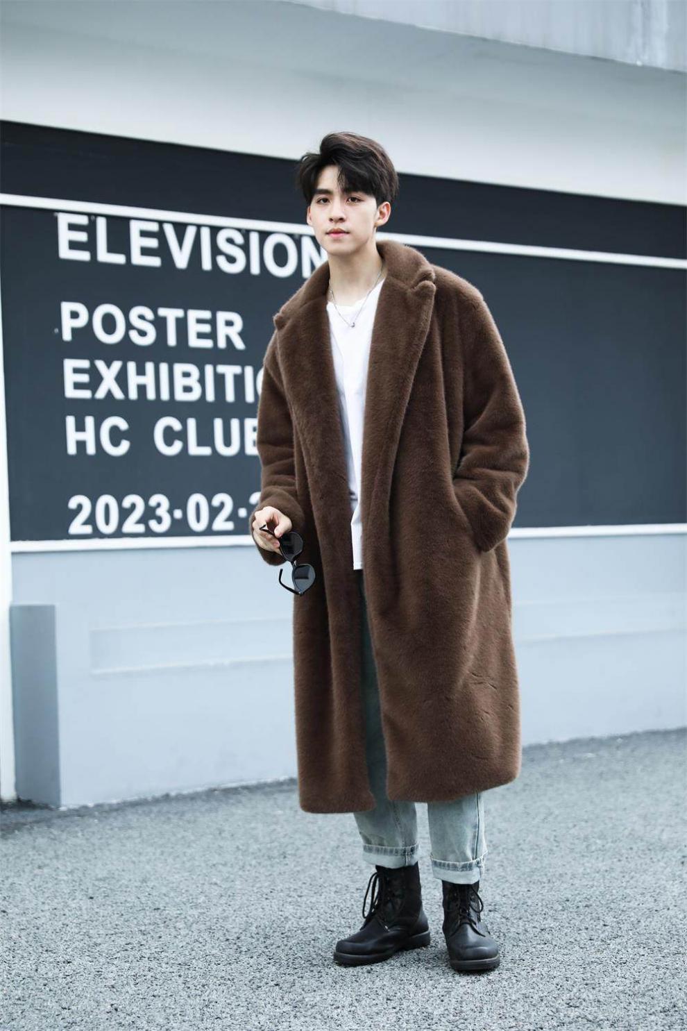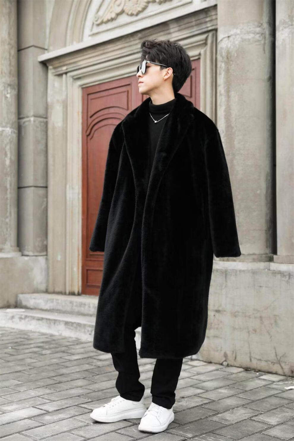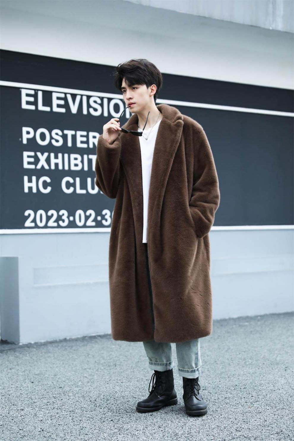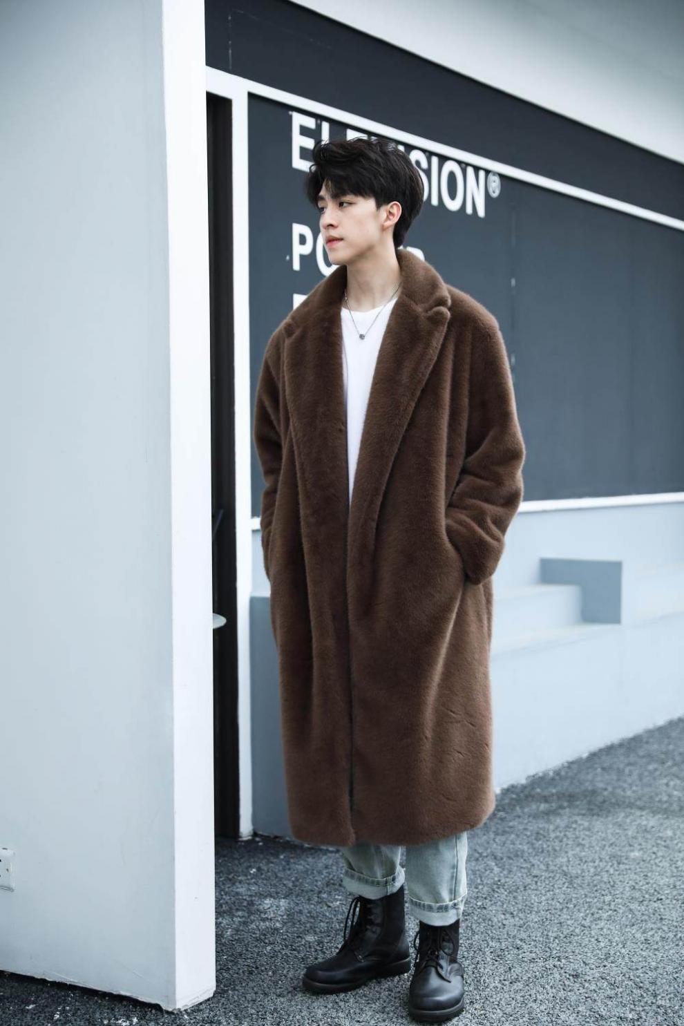 STRONG-WILLED thickened imitation mink fur long fur coat for men autumn and winter over the knee brand solid color long fur coat for men black S 90-115Jin Jin is equal to 0.5 kg