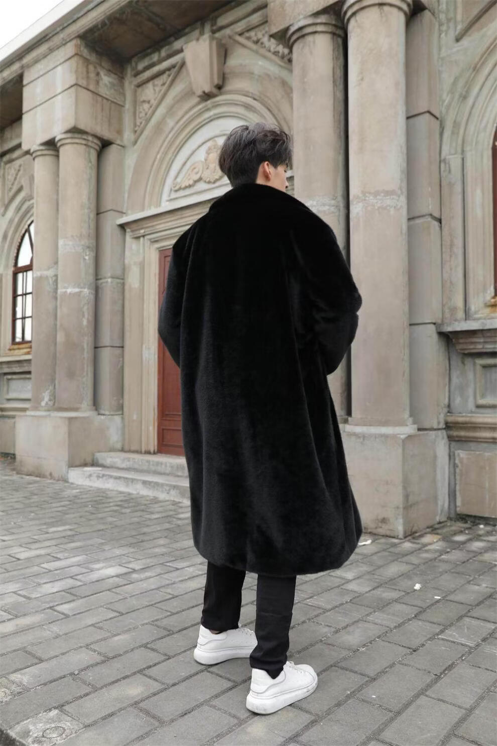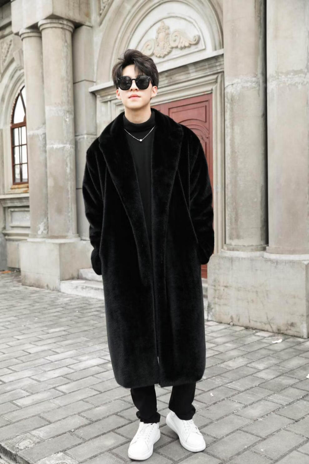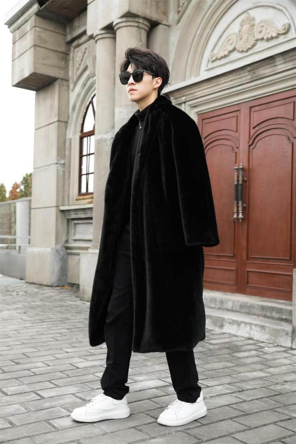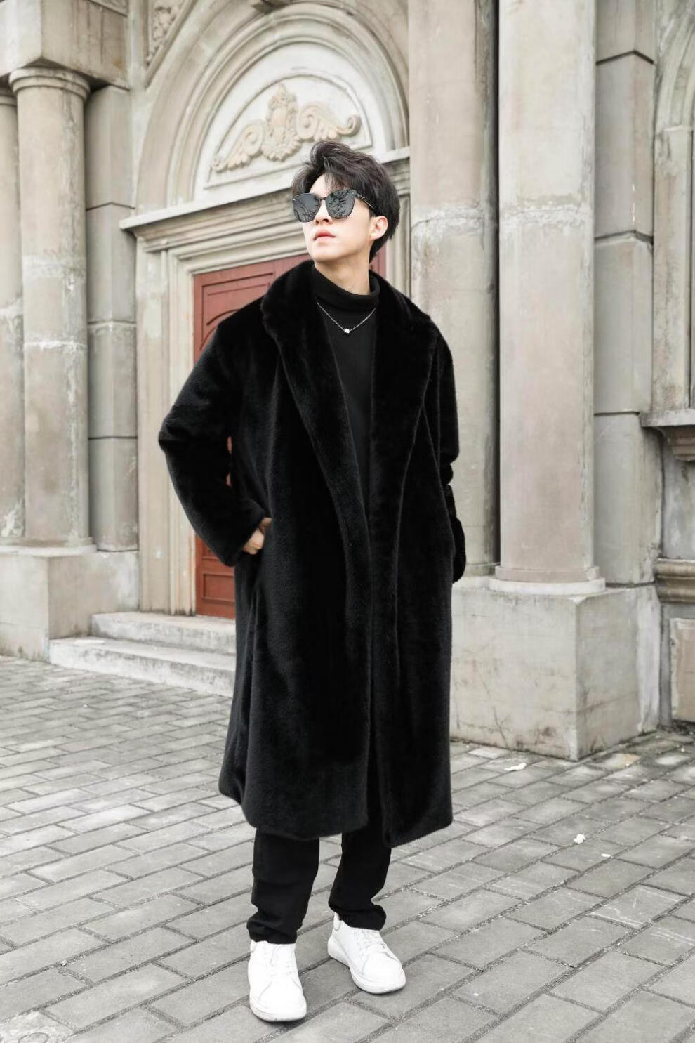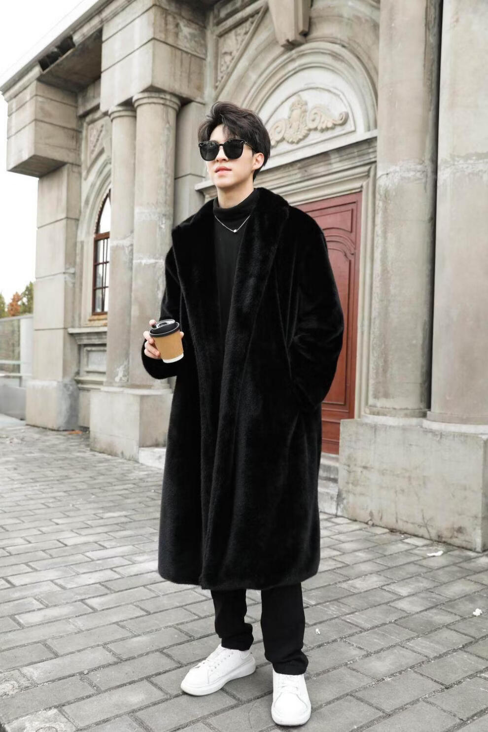 STRONG-WILLED thickened imitation mink fur long fur coat for men autumn and winter over the knee brand solid color long fur coat for men black S 90-115Jin Jin is equal to 0.5 kg