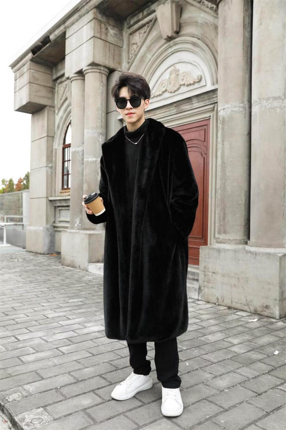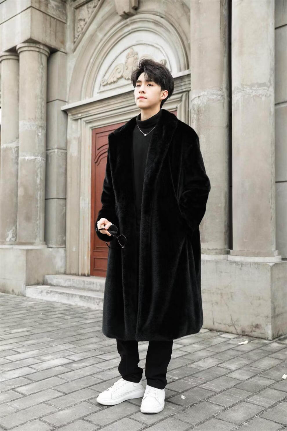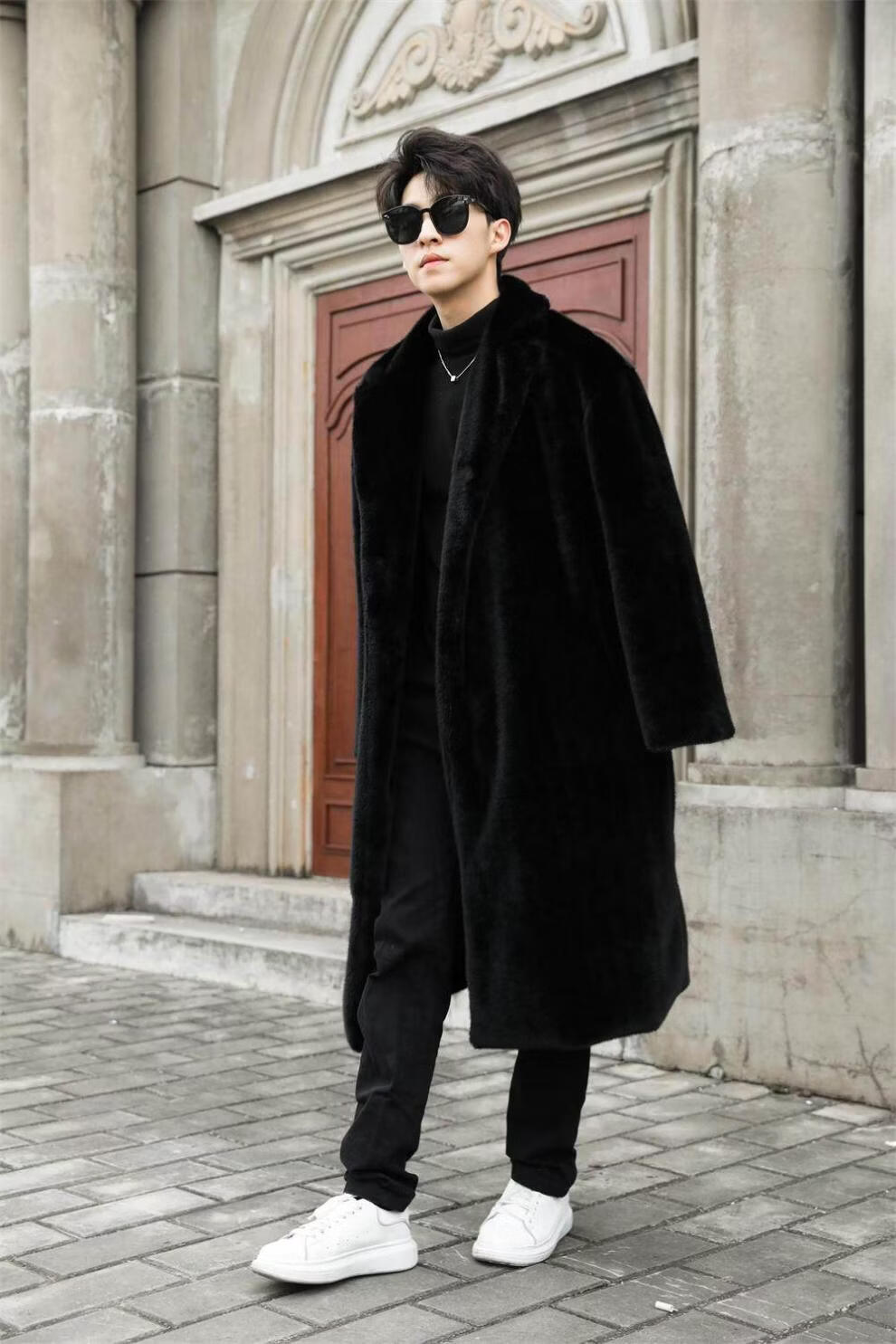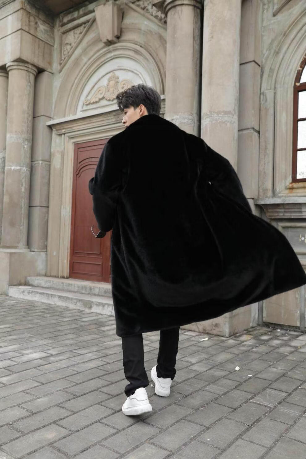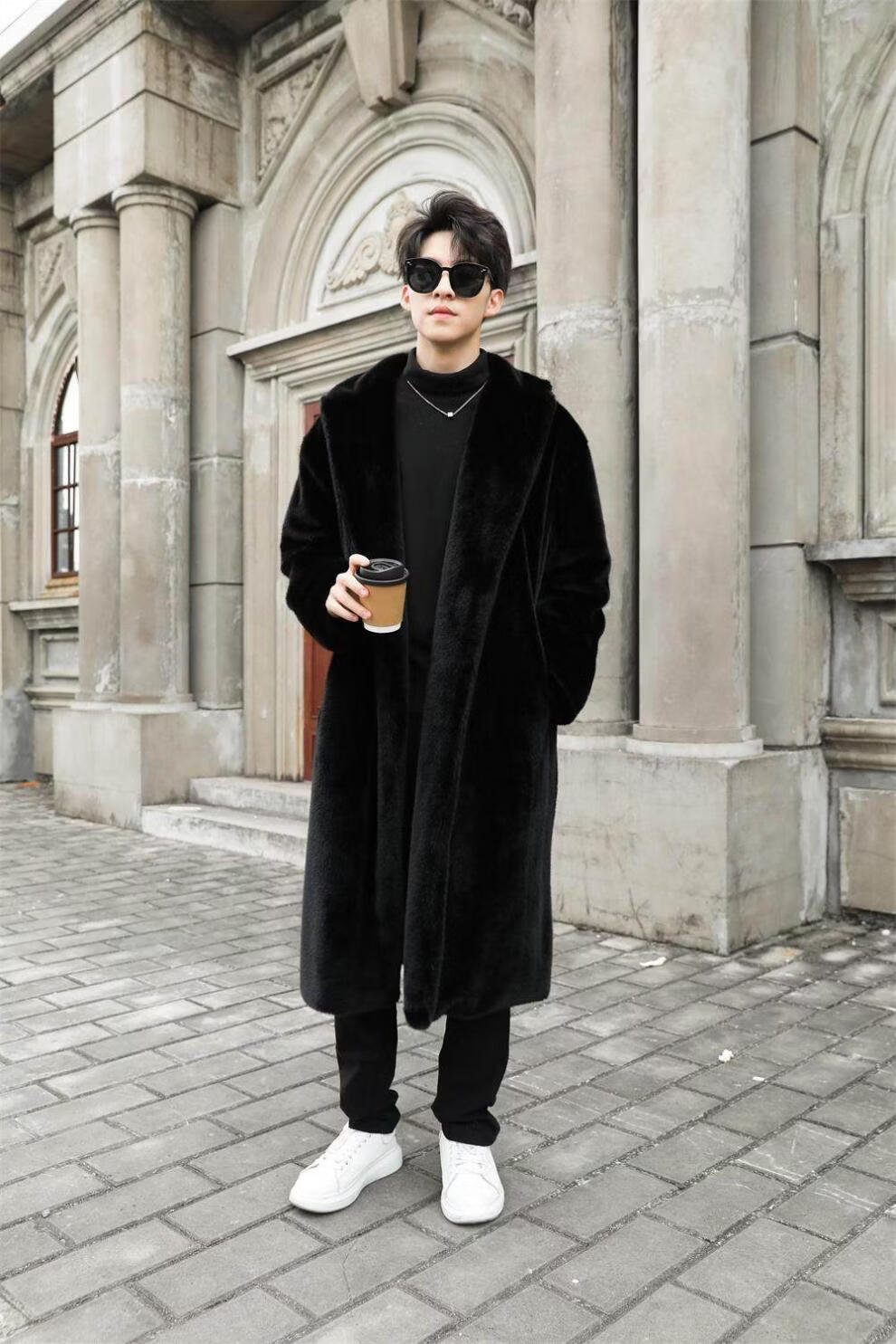 STRONG-WILLED thickened imitation mink fur long fur coat for men autumn and winter over the knee brand solid color long fur coat for men black S 90-115Jin Jin is equal to 0.5 kg