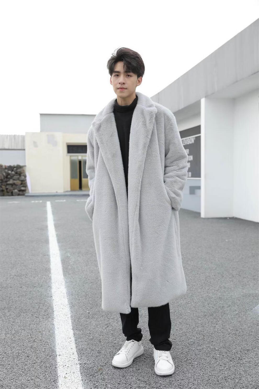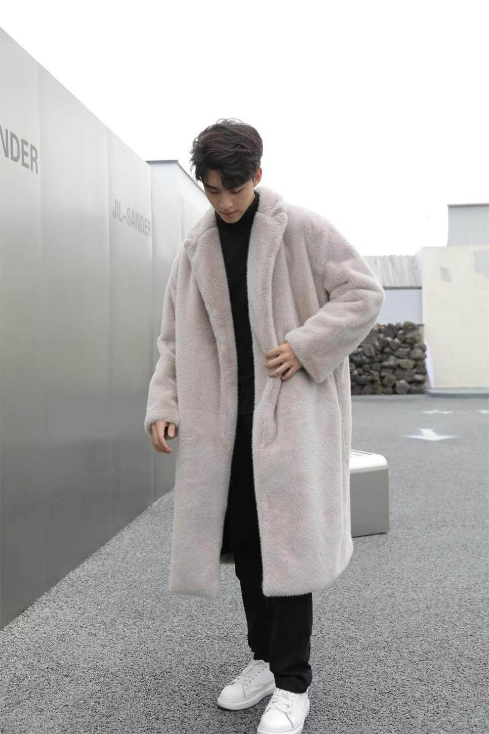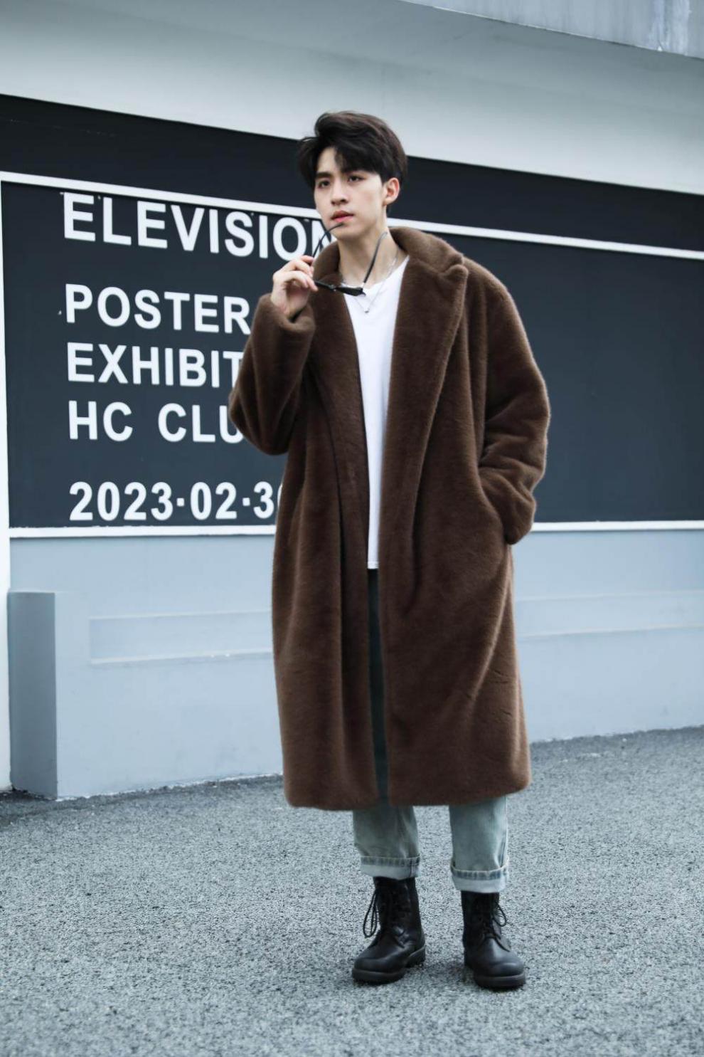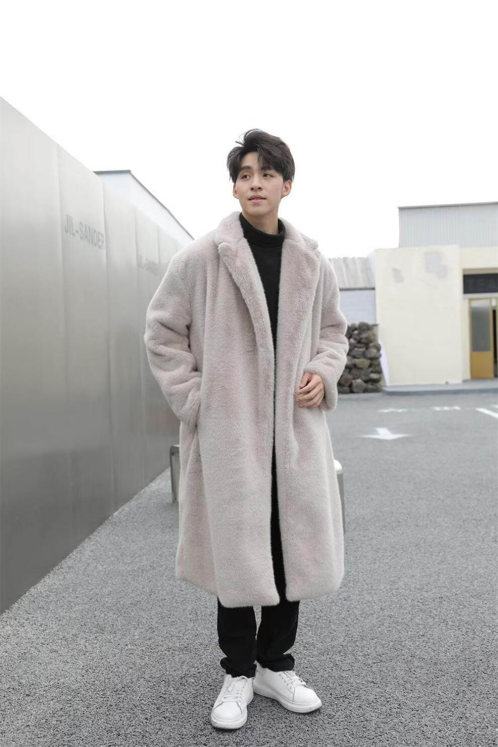 STRONG-WILLED thickened imitation mink fur long fur coat for men autumn and winter over the knee brand solid color long fur coat for men black S 90-115Jin Jin is equal to 0.5 kg