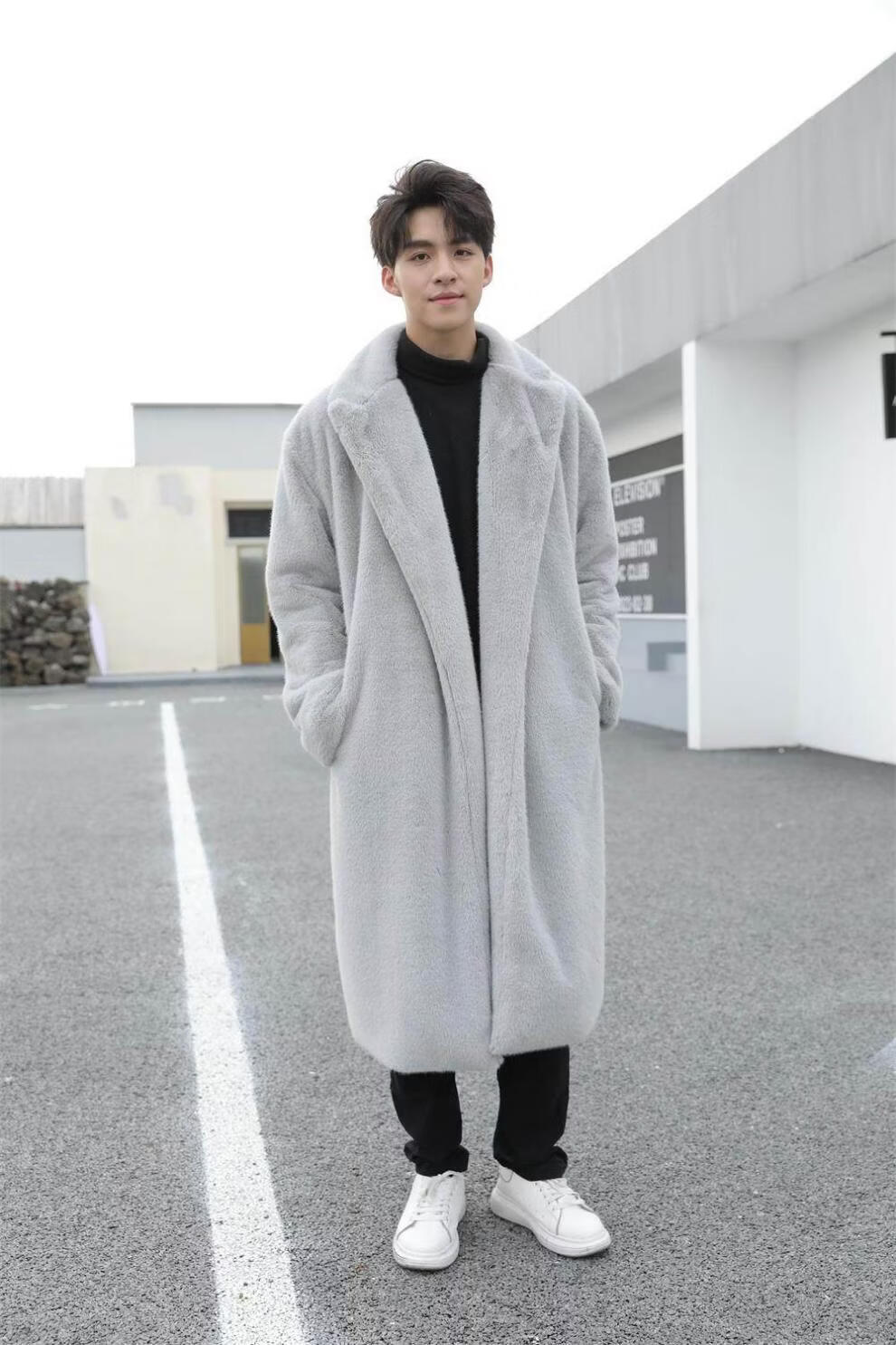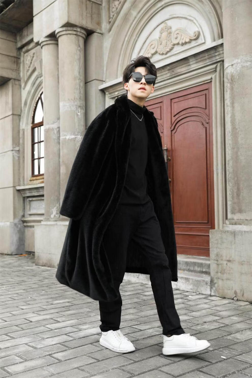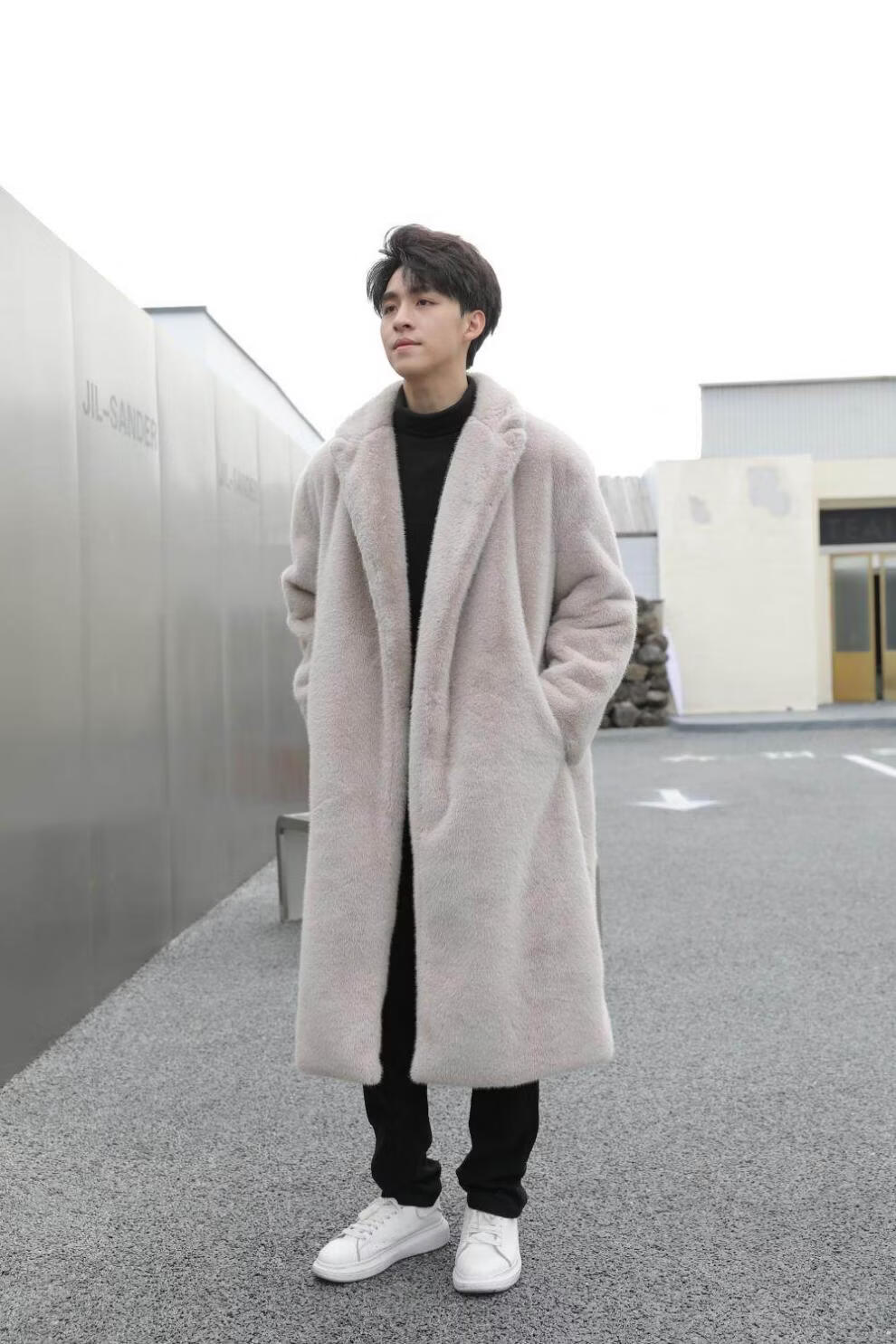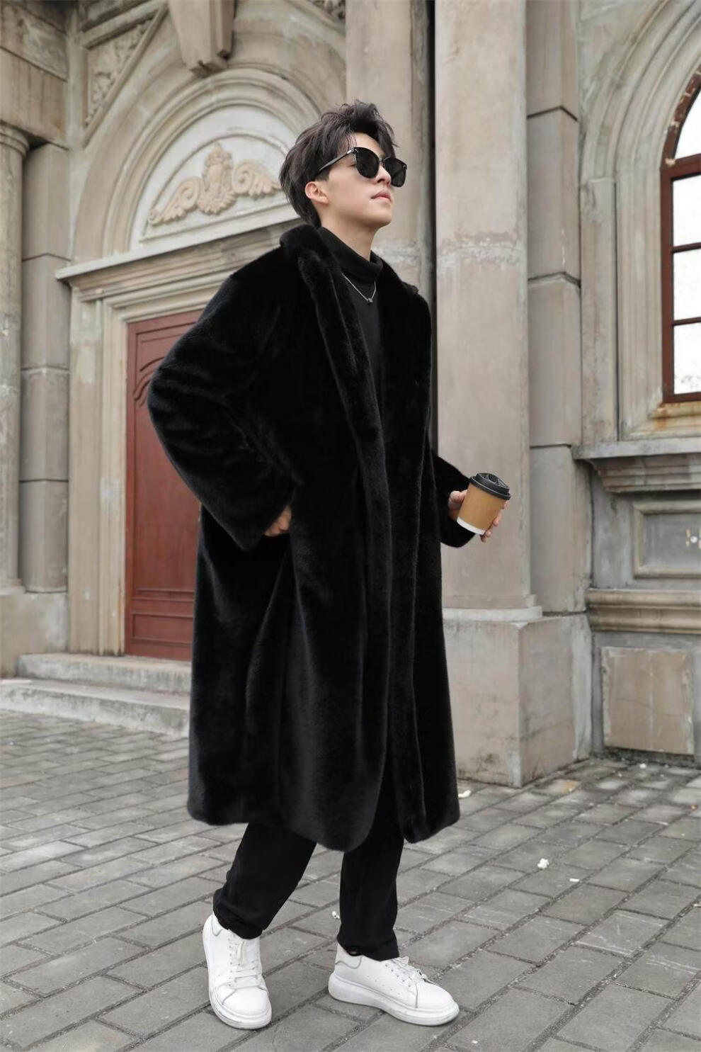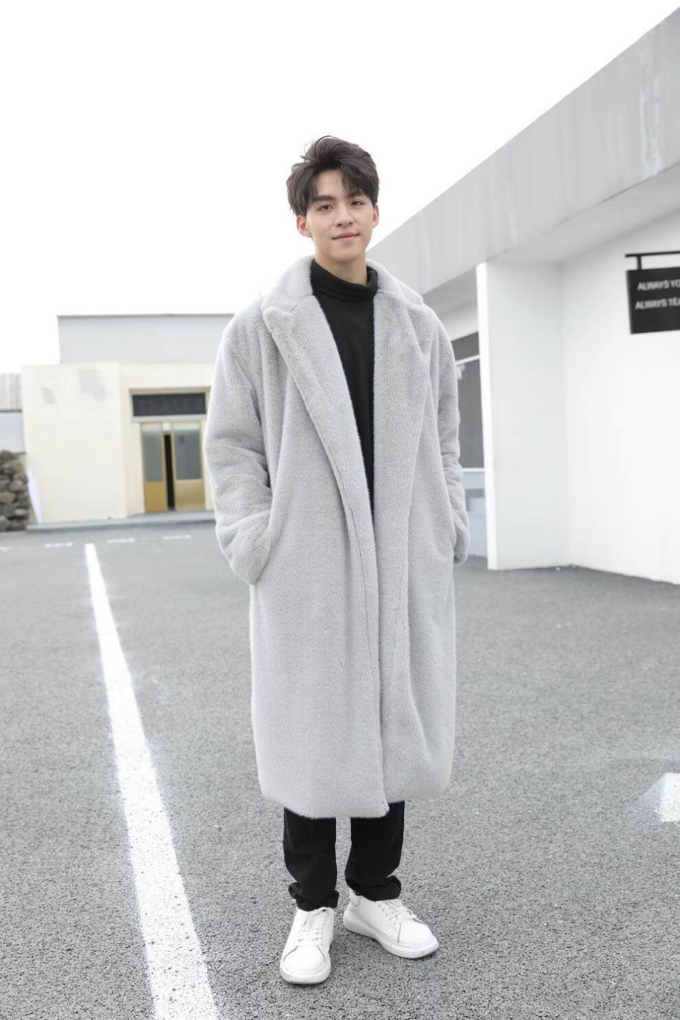 STRONG-WILLED thickened imitation mink fur long fur coat for men autumn and winter over the knee brand solid color long fur coat for men black S 90-115Jin Jin is equal to 0.5 kg