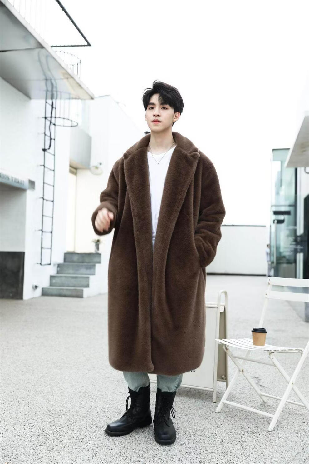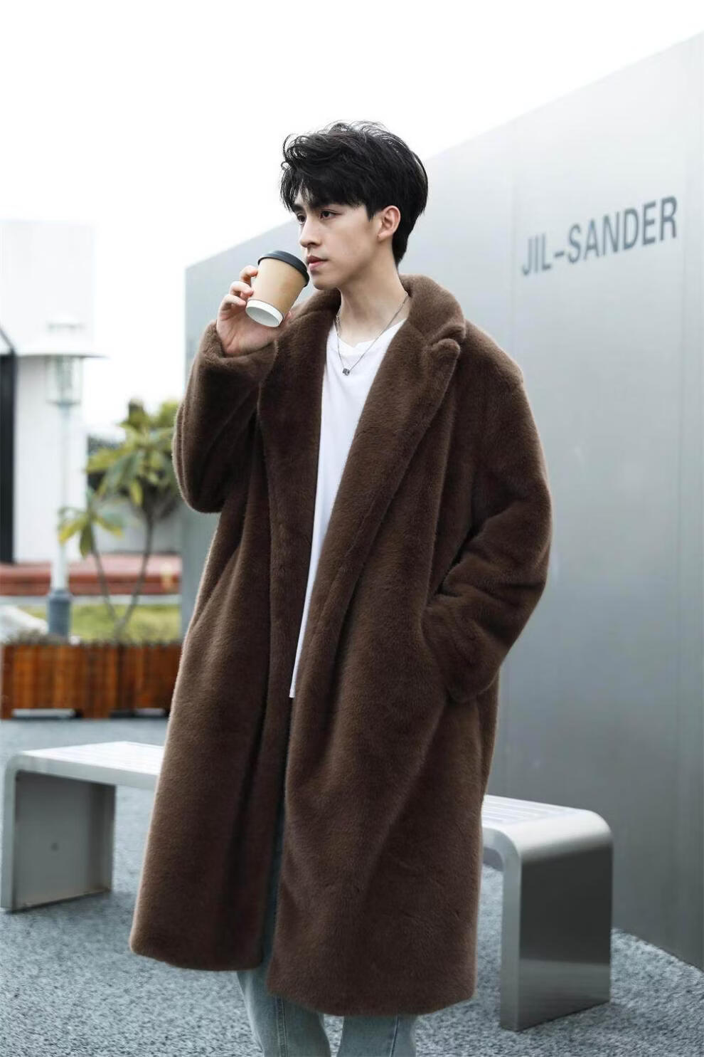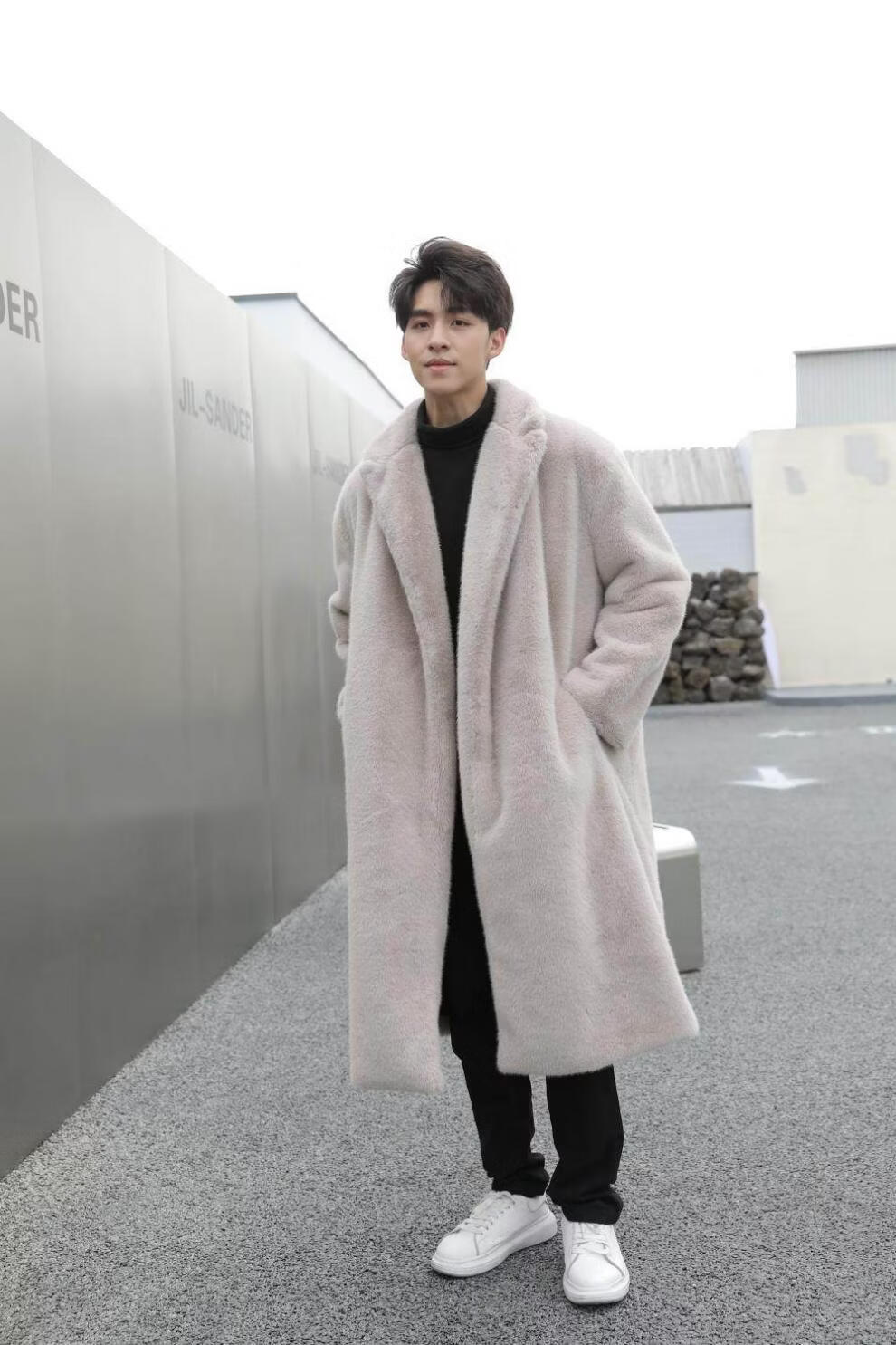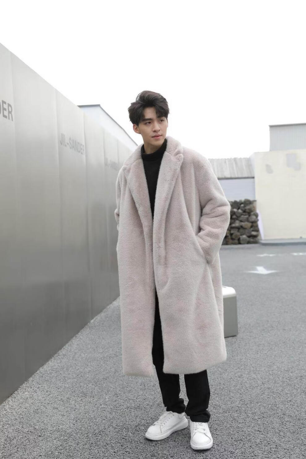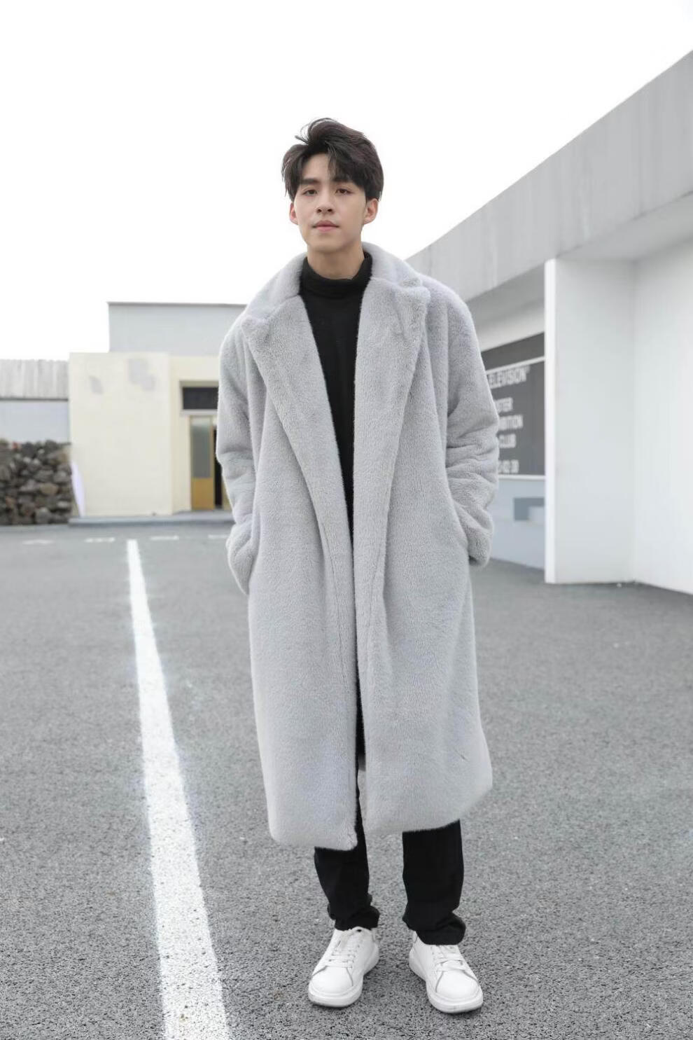 STRONG-WILLED thickened imitation mink fur long fur coat for men autumn and winter over the knee brand solid color long fur coat for men black S 90-115Jin Jin is equal to 0.5 kg