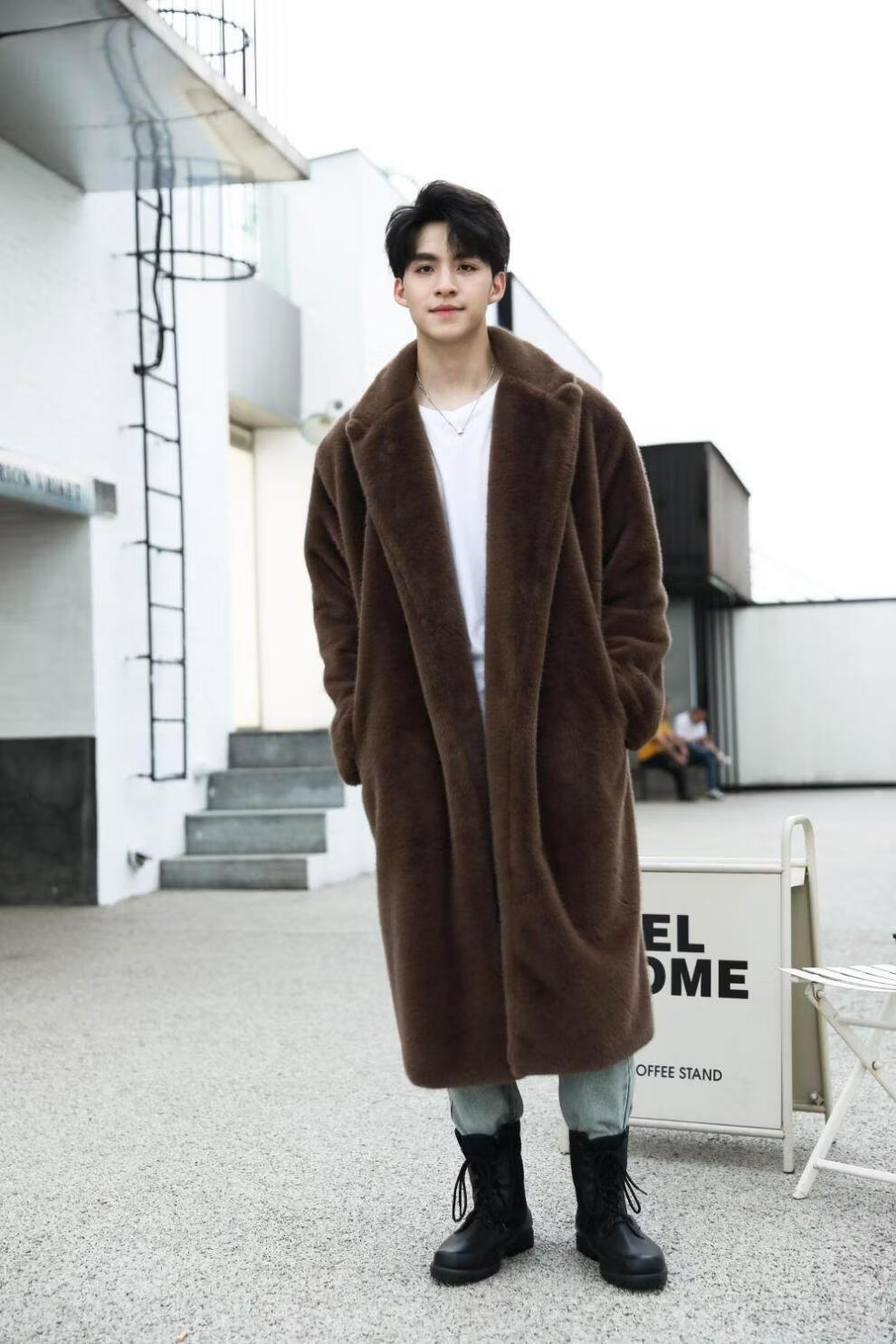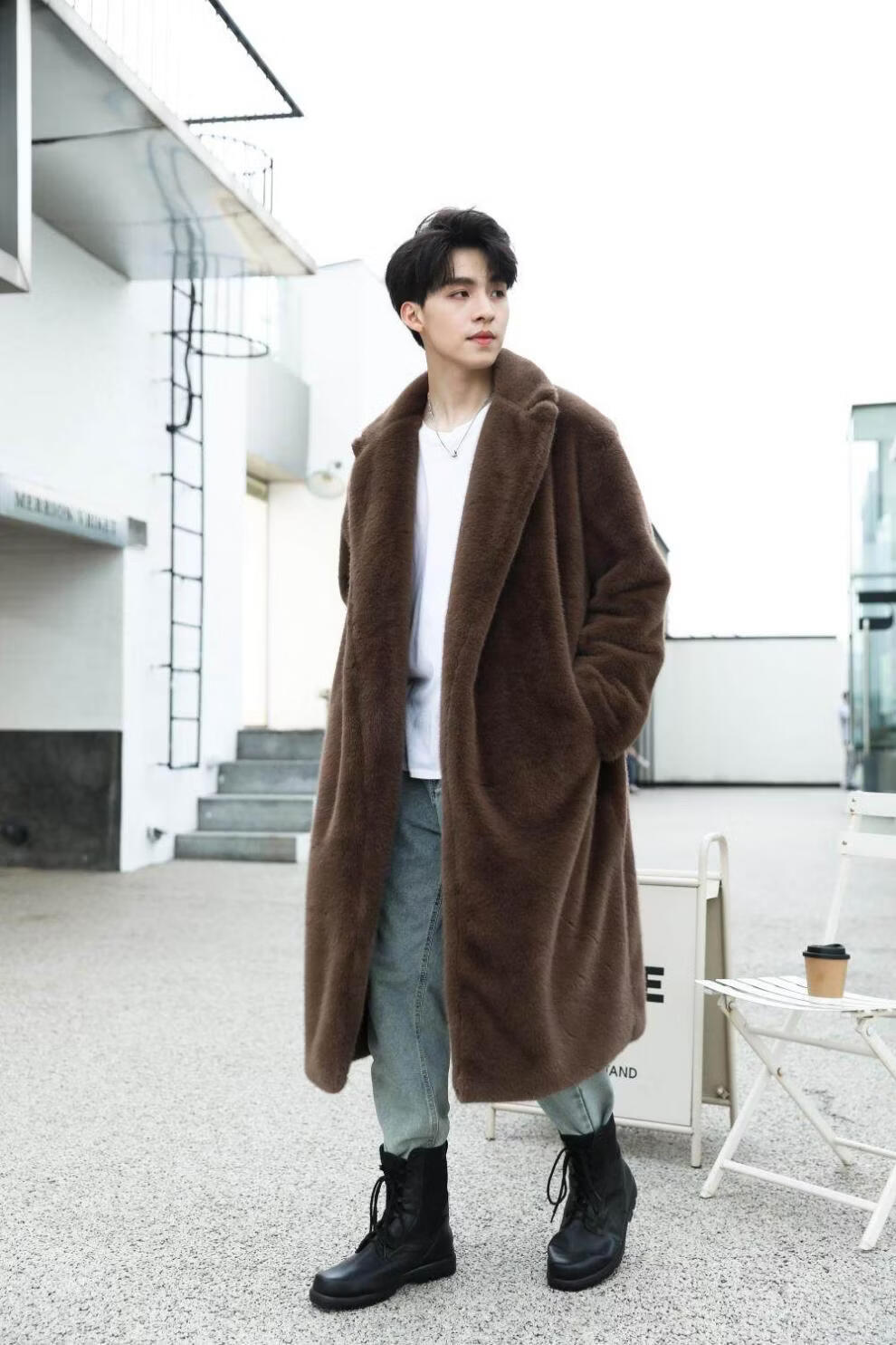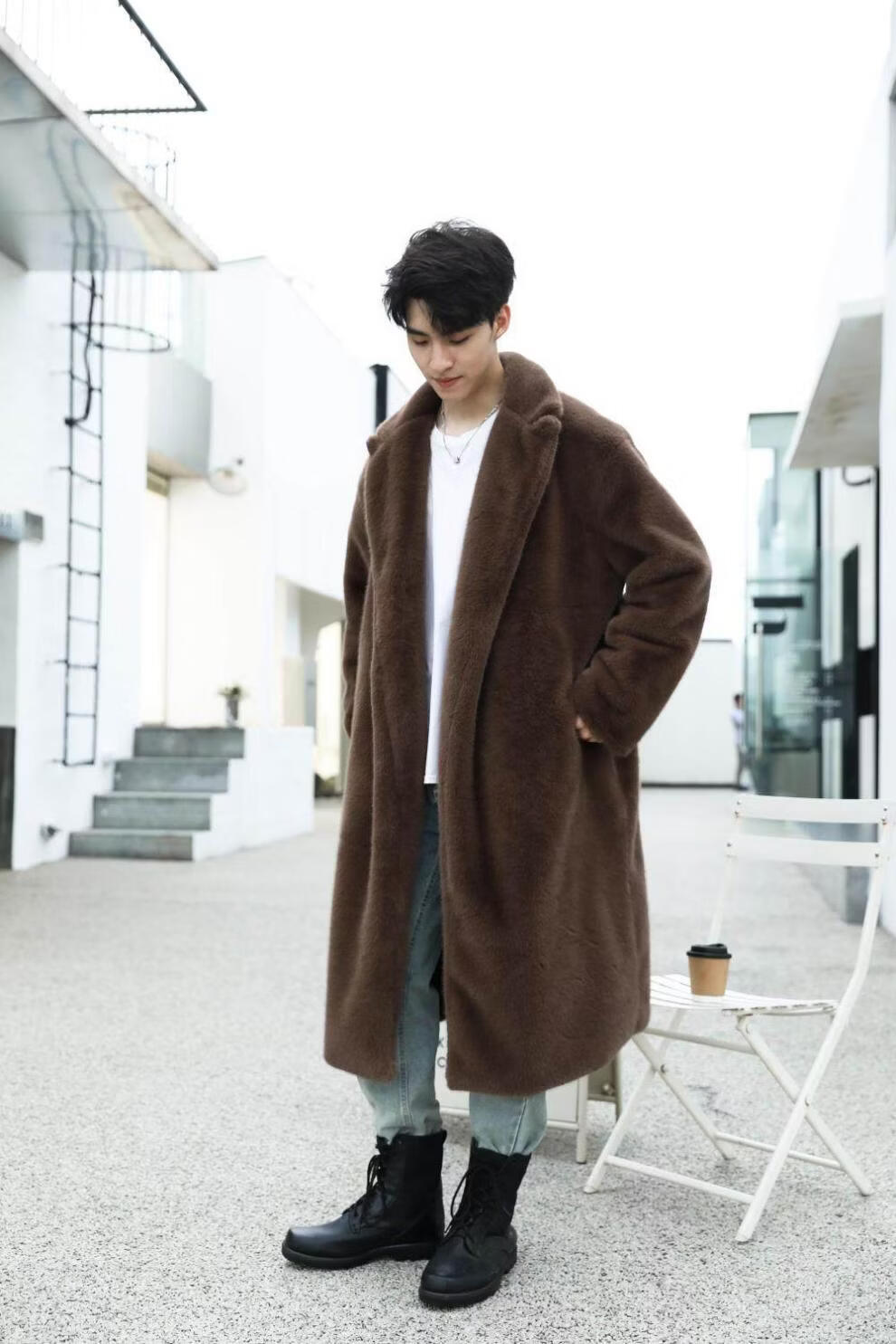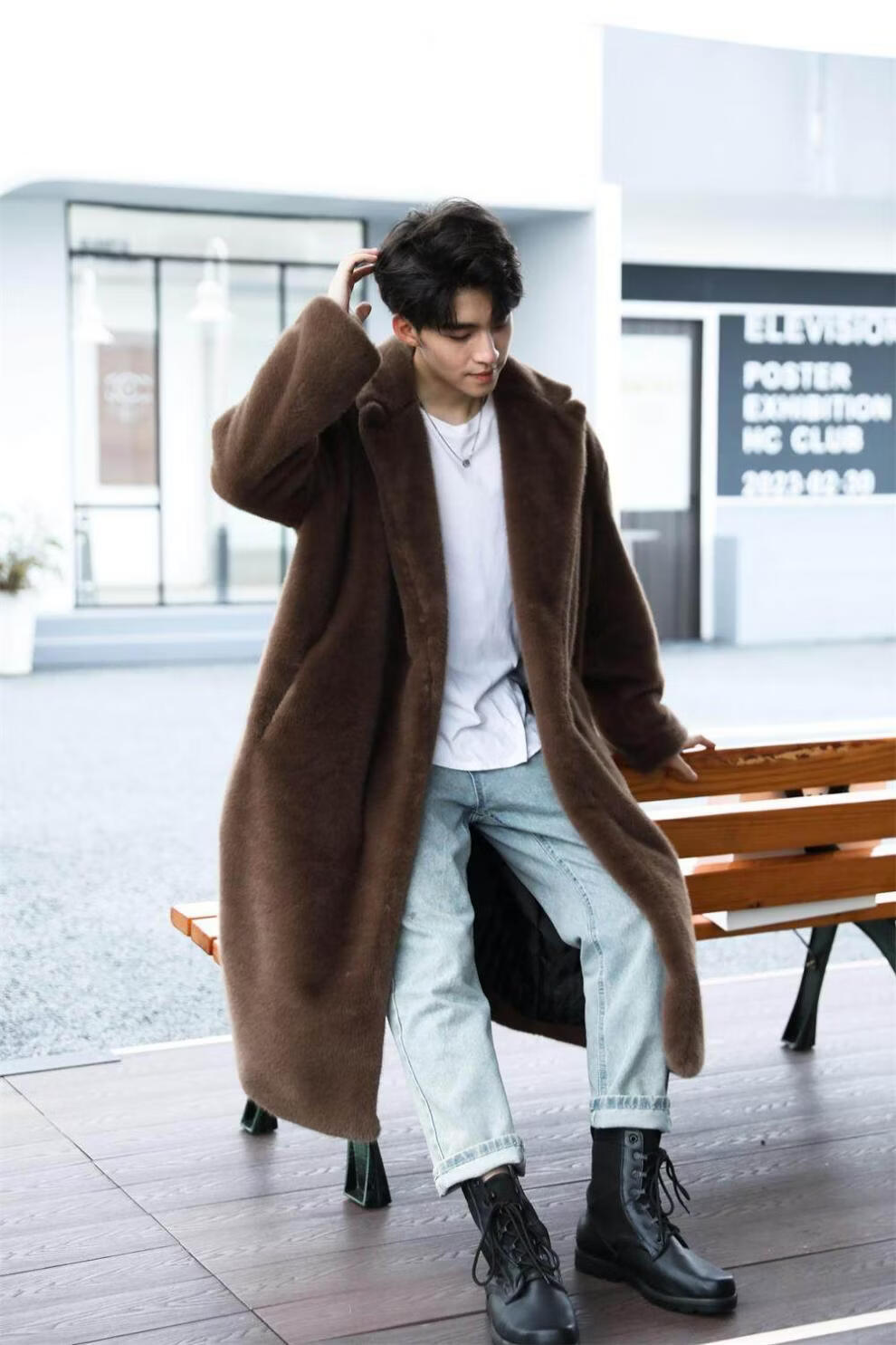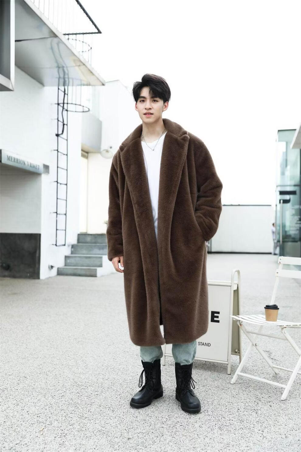 STRONG-WILLED thickened imitation mink fur long fur coat for men autumn and winter over the knee brand solid color long fur coat for men black S 90-115Jin Jin is equal to 0.5 kg