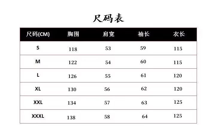 China (cm) 165 / 88-90 170 / 96-98 175 / 108-110 180 / 118-122 185 / 126-130