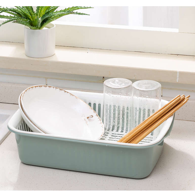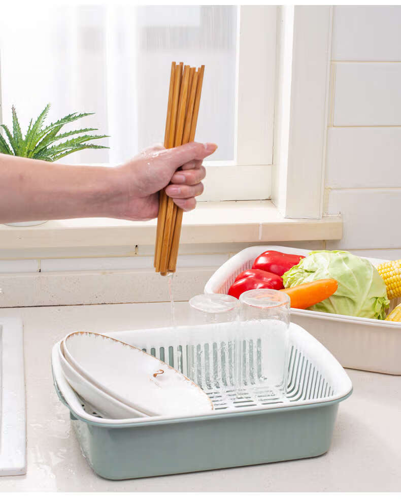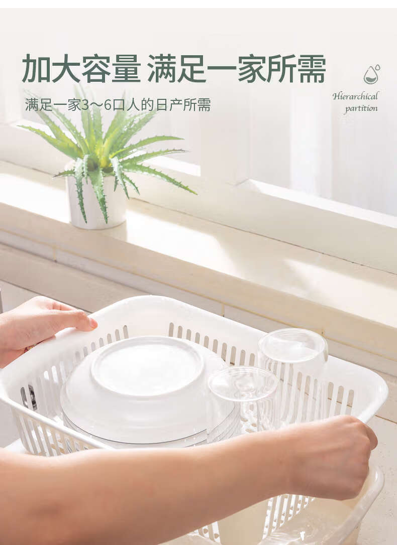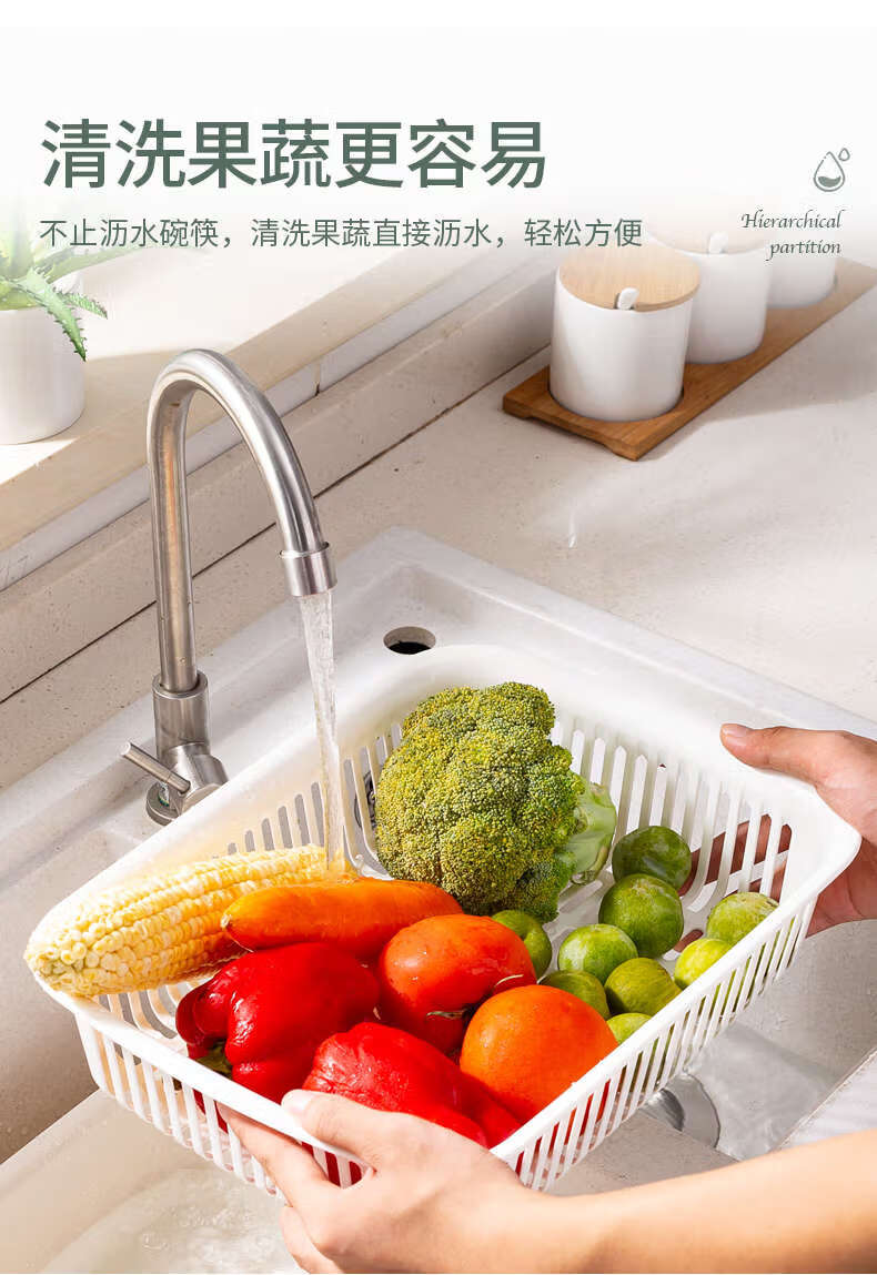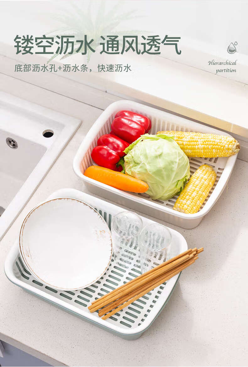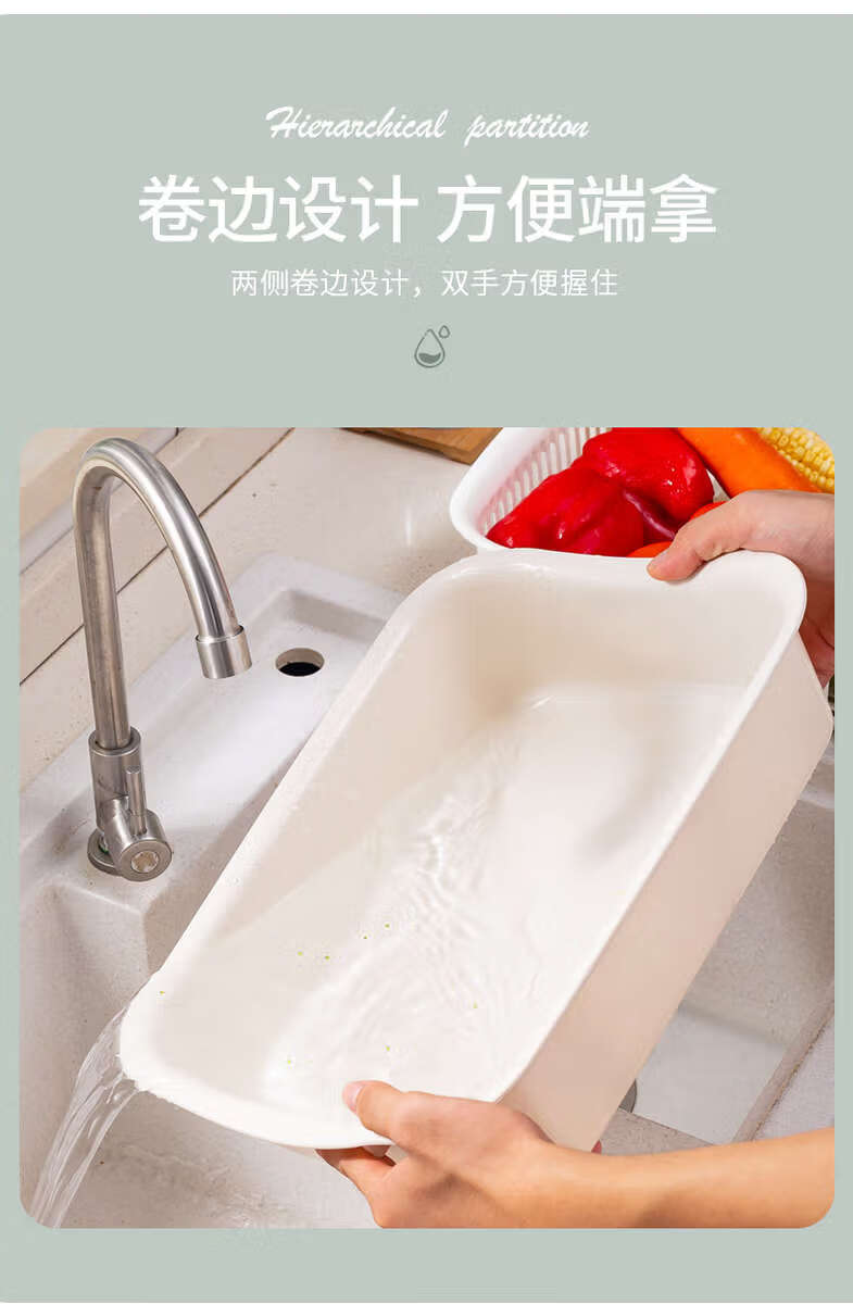 Yusenyi double-layer vegetable basin household vegetable storage basket rectangular fruit water leakage storage white