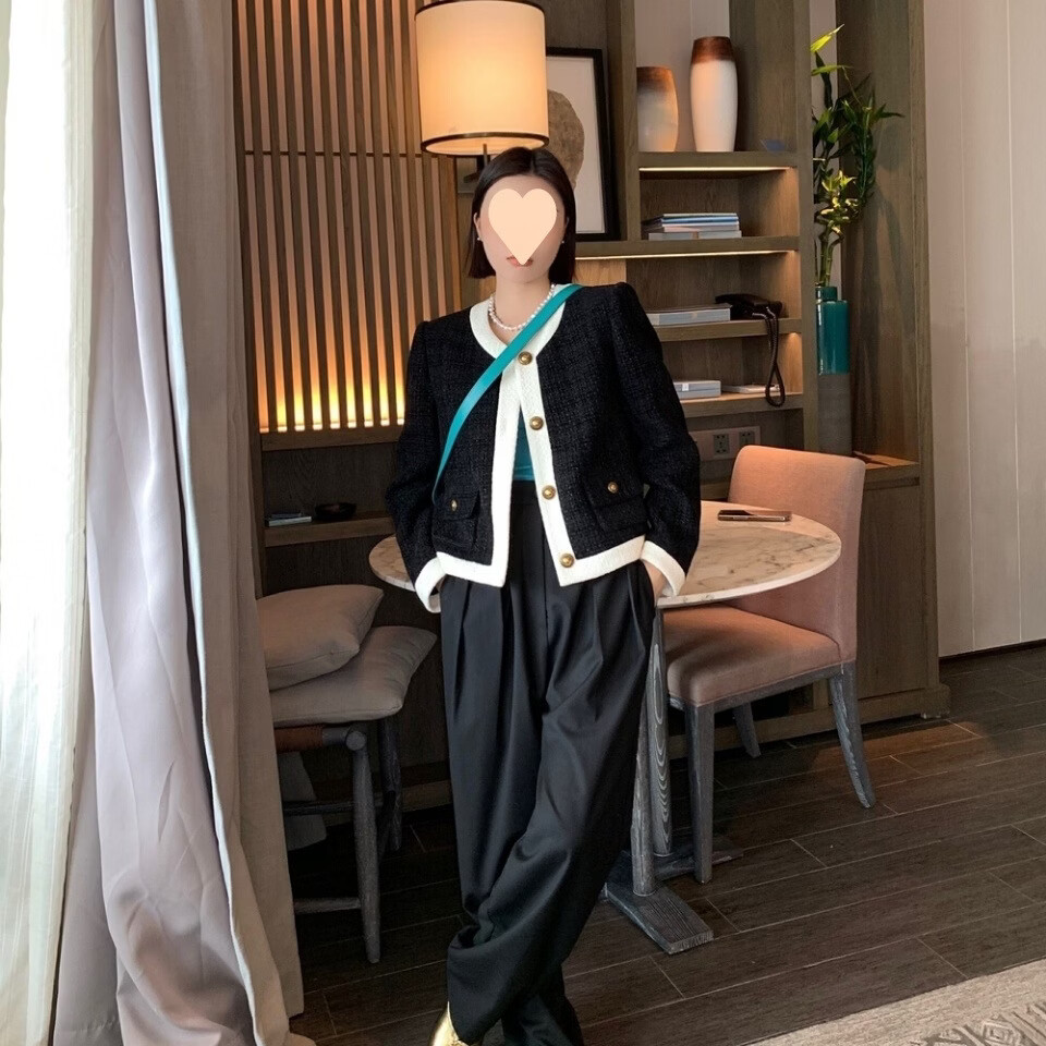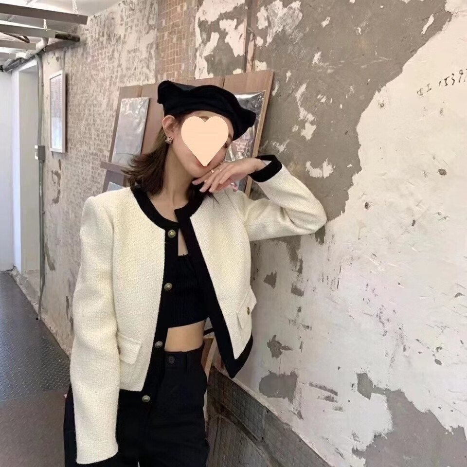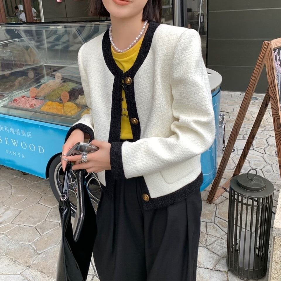Xiaohongshu’s hot style Korean style elegant little jacket for women 2024 spring and autumn new style splicing design round neck white high quality model within S95 one size fits all
