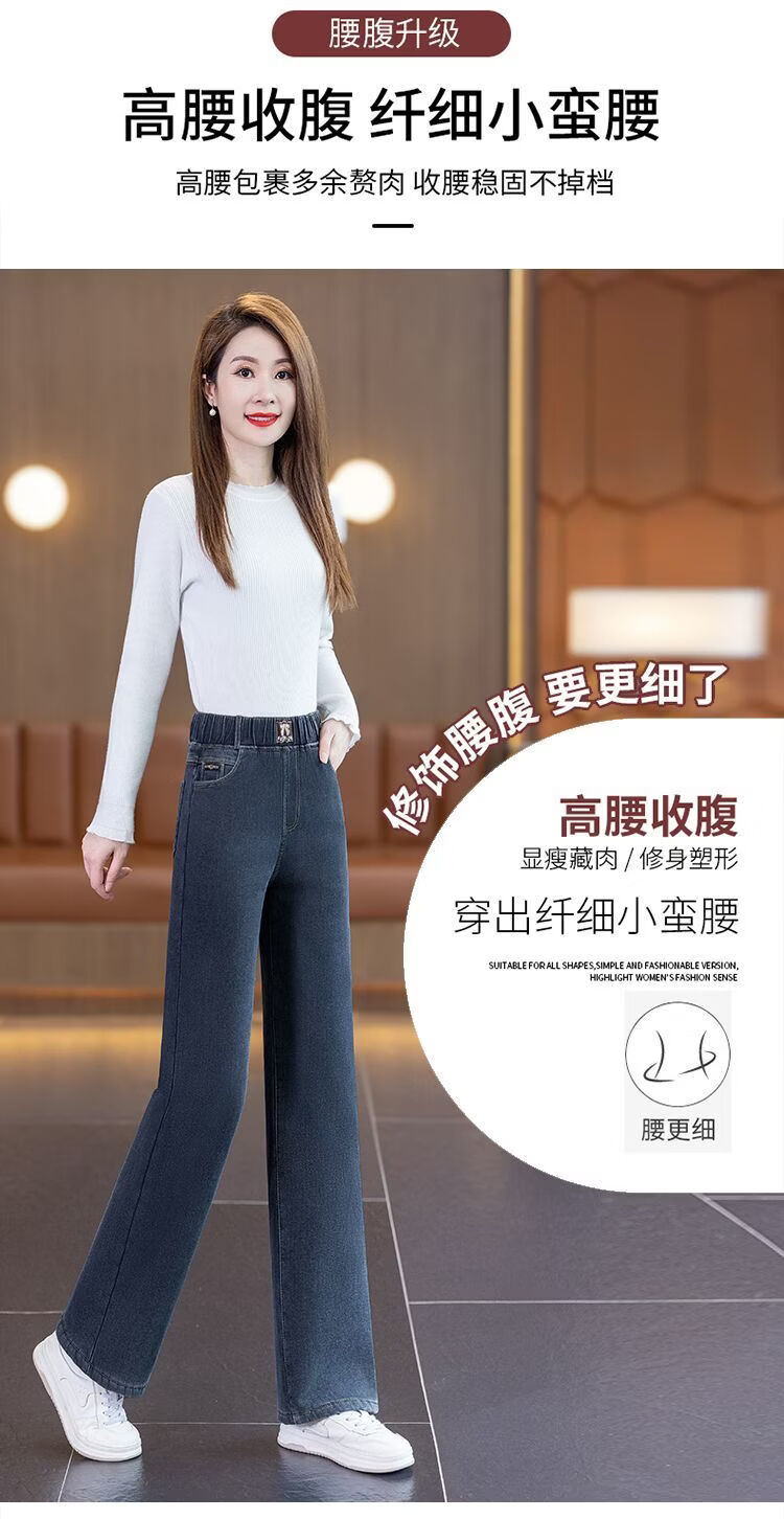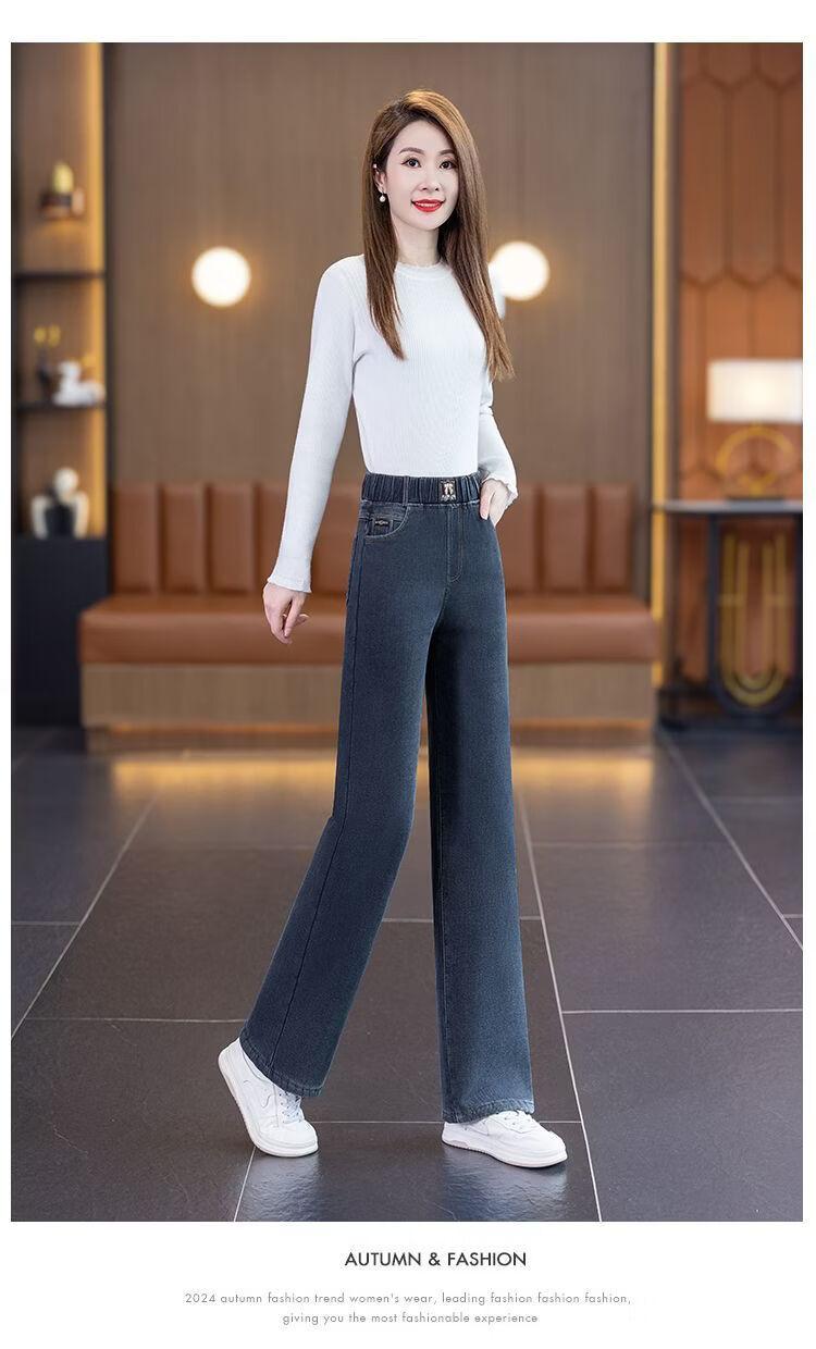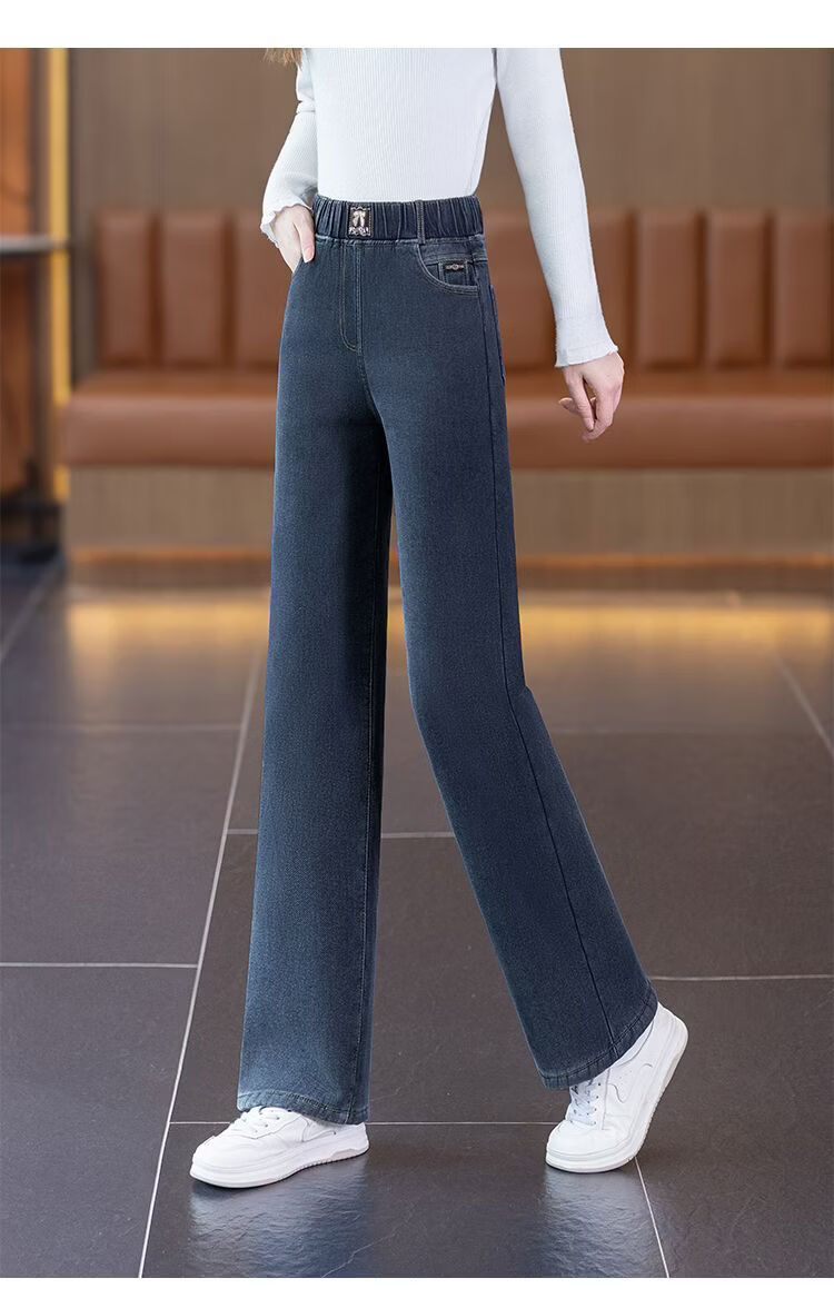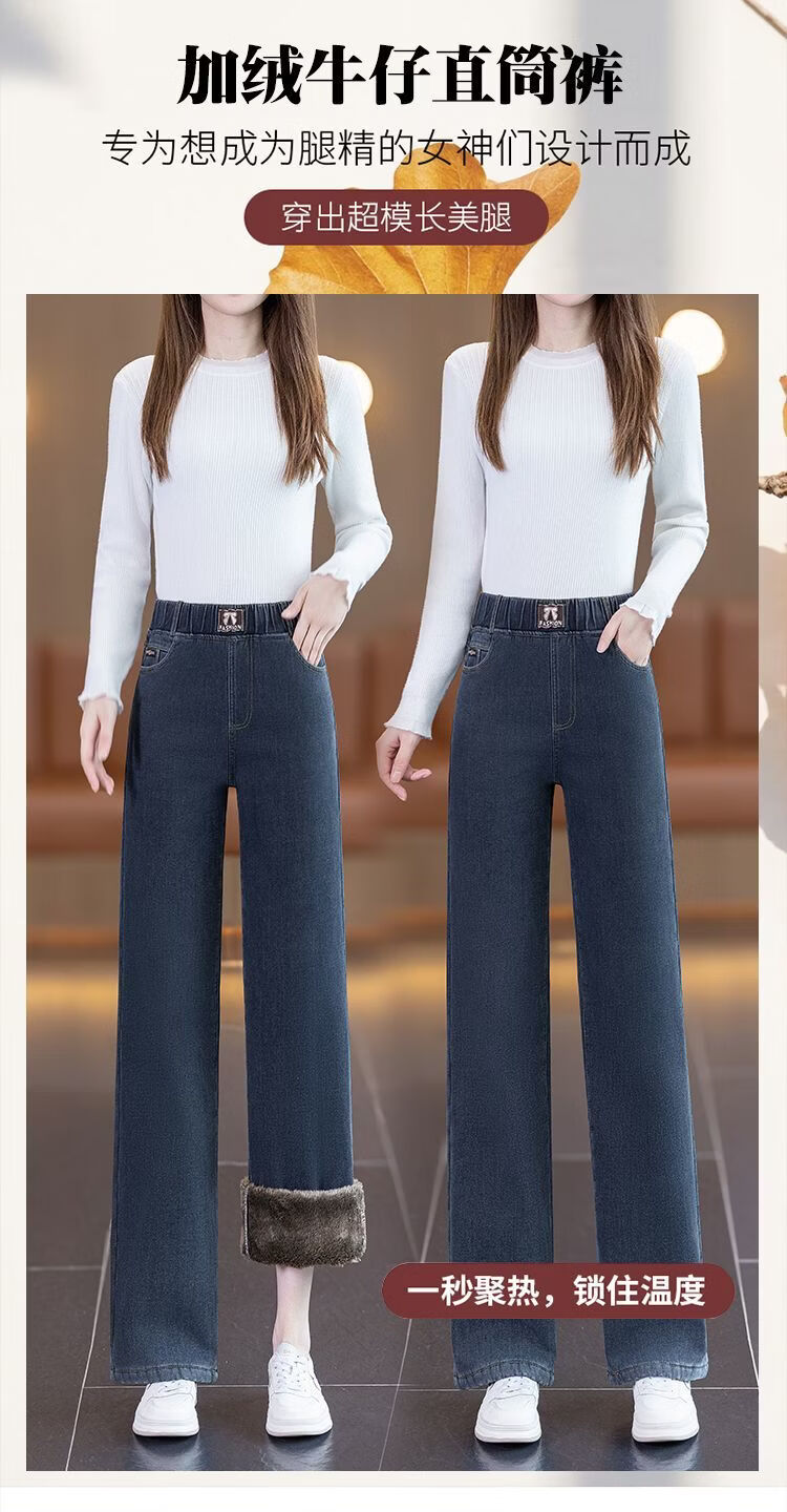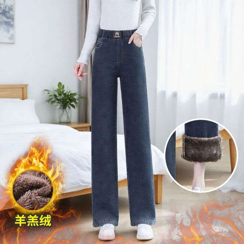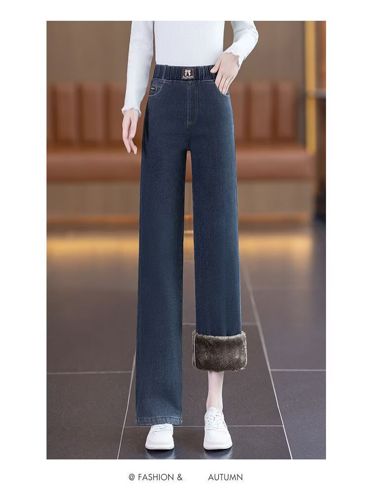 ROMON sherpa narrow straight jeans for women 2026 autumn and winter new style small plus velvet thickened winter straight pants blue gray - sherpa - 9 points 157 or less 26 recommended 80-90