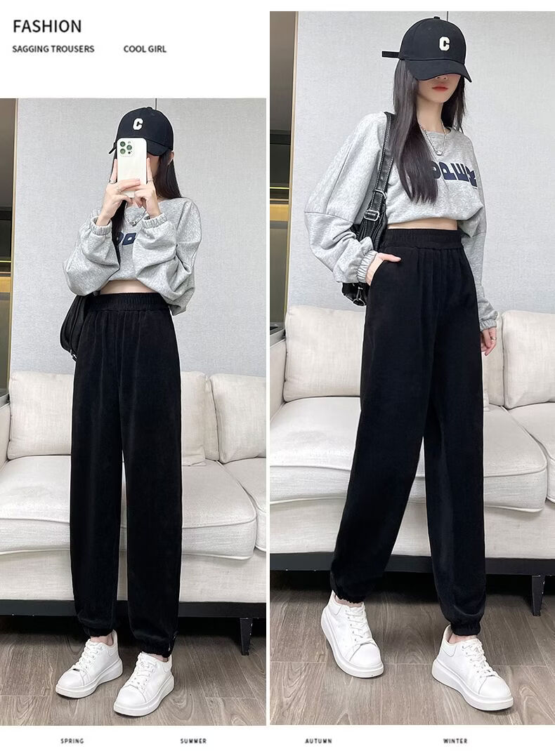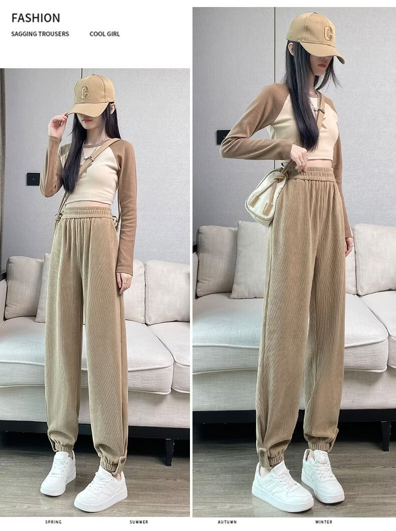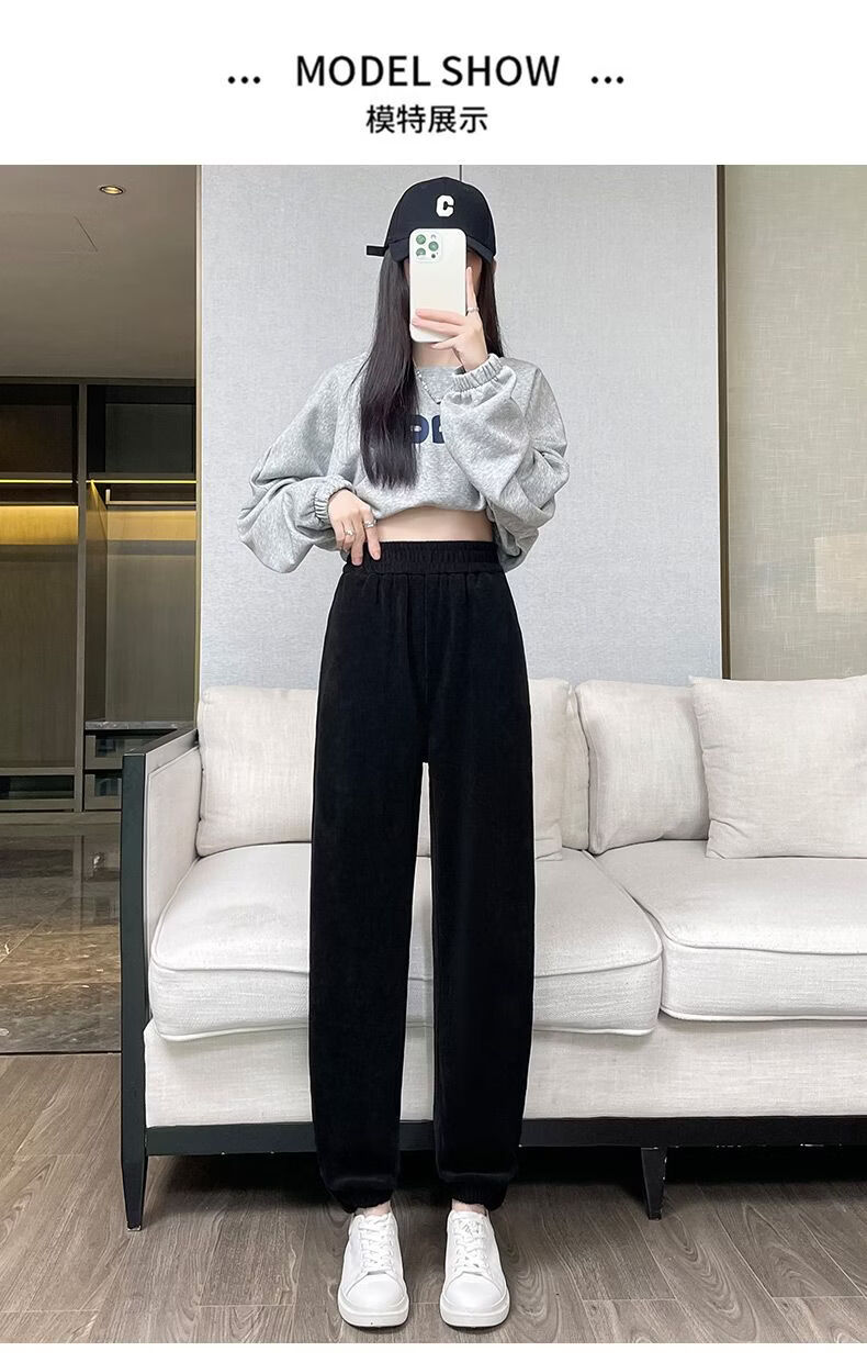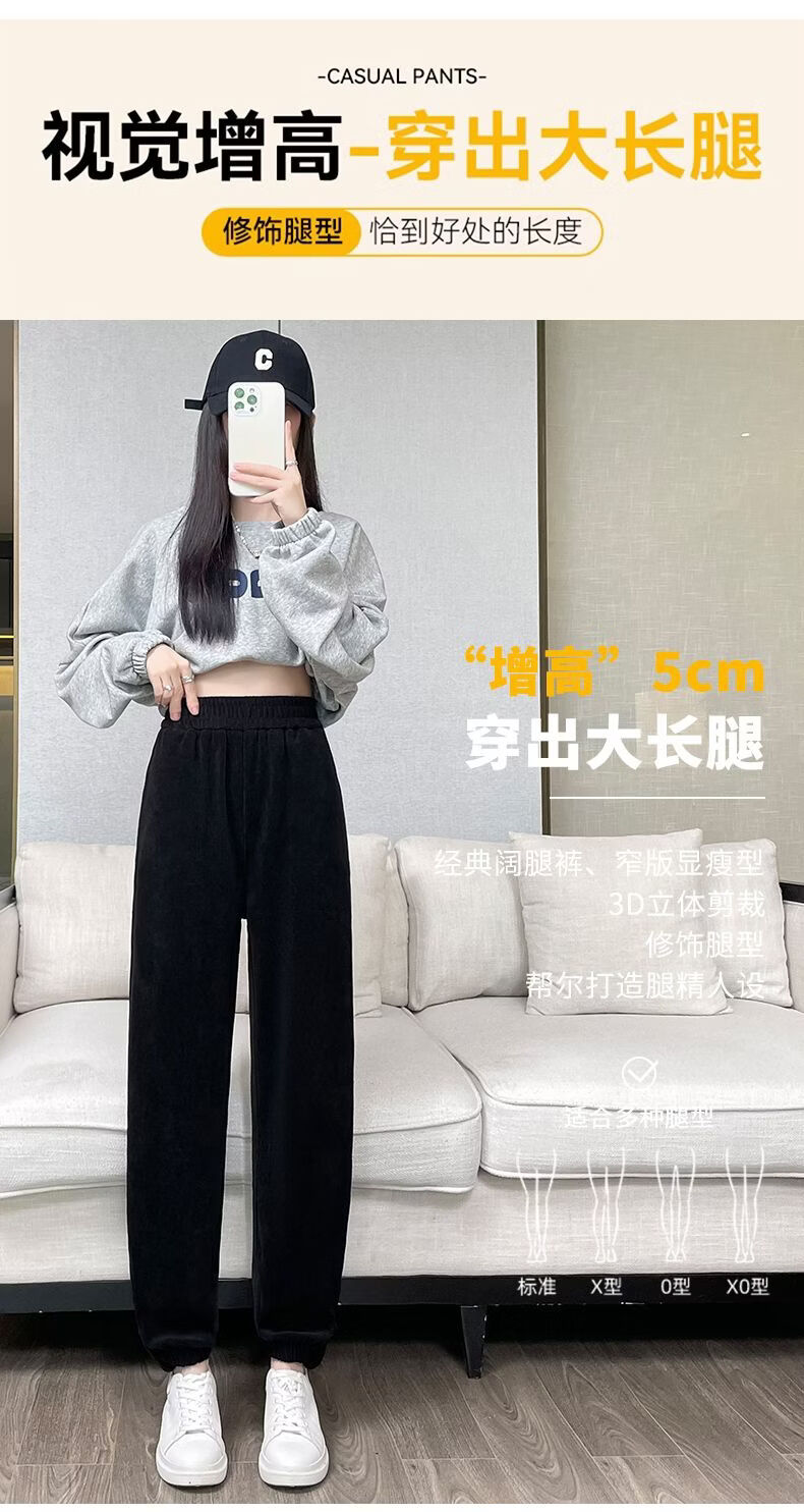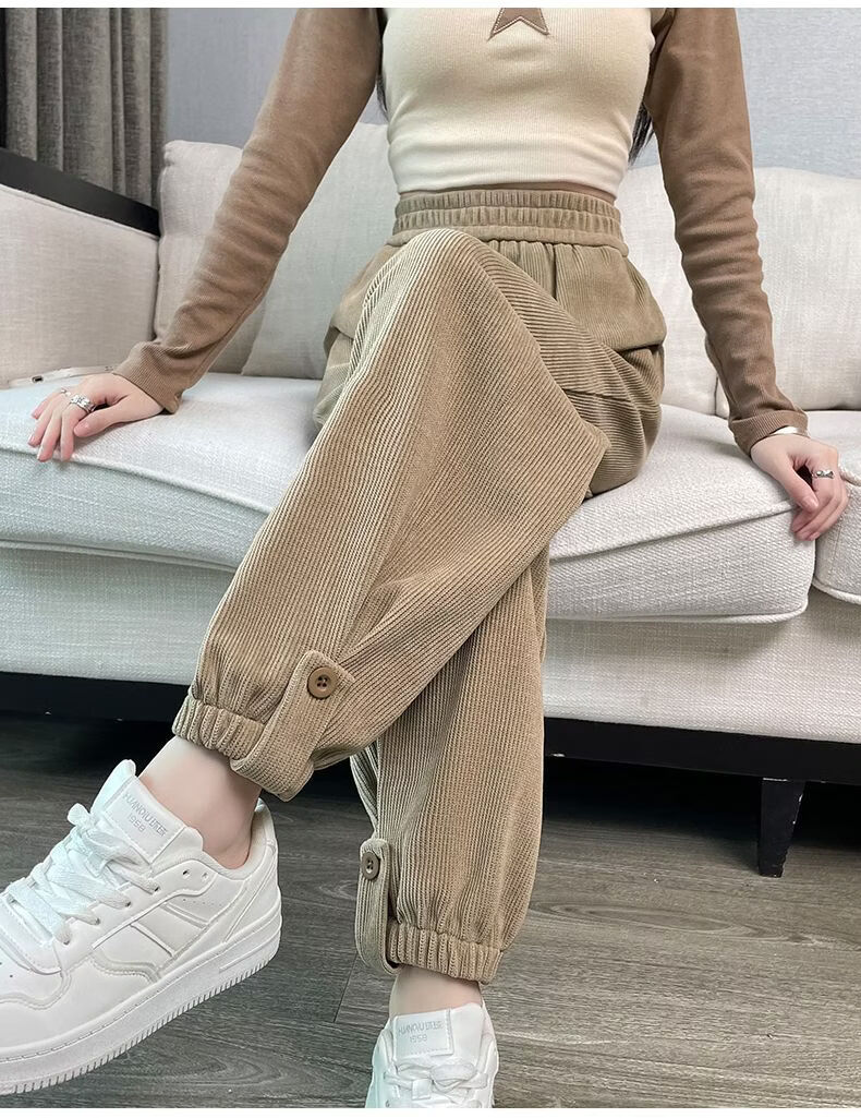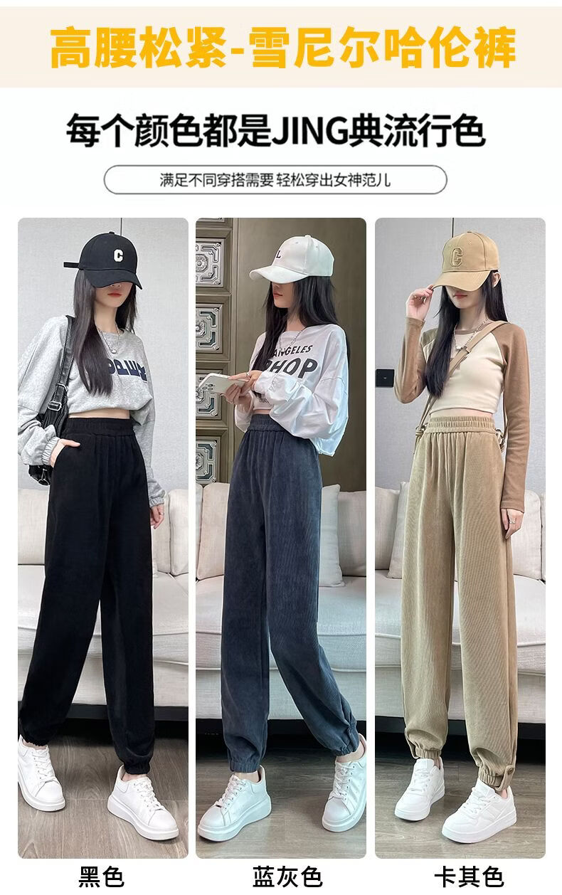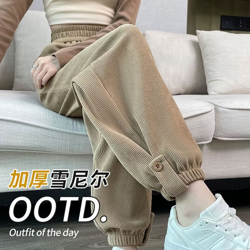 ROMON Chenille sweatpants for women autumn and winter 2026 new radish harem sweatpants corduroy pants plus velvet casual pants khaki 232 M recommended 98-110Jin Jin equals 0.5 kg