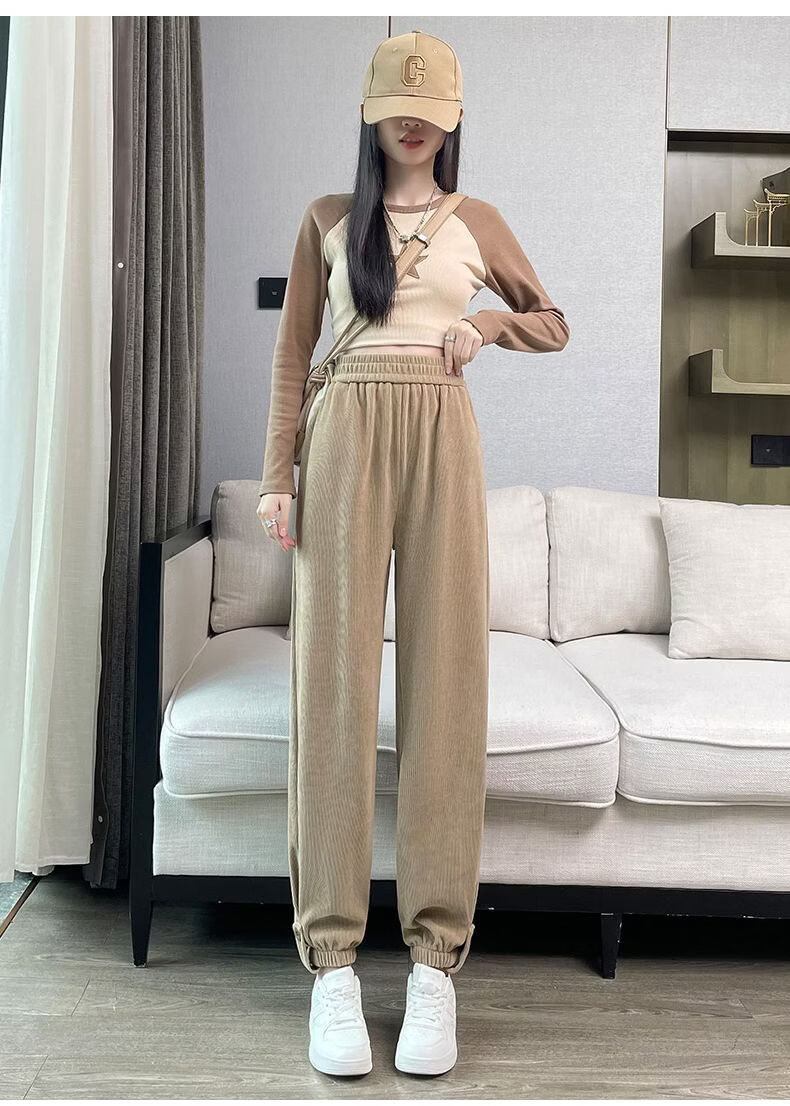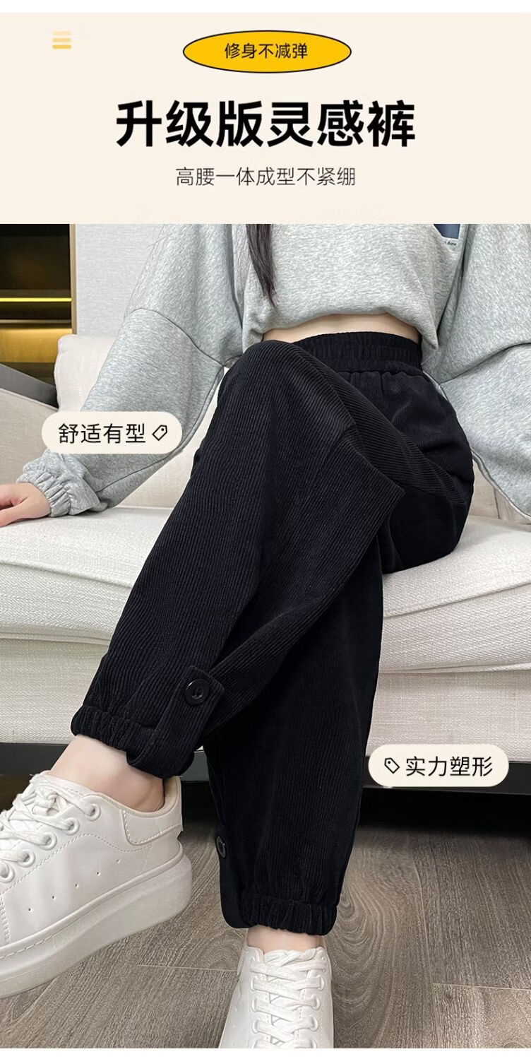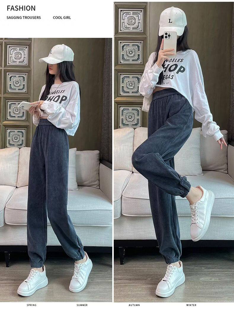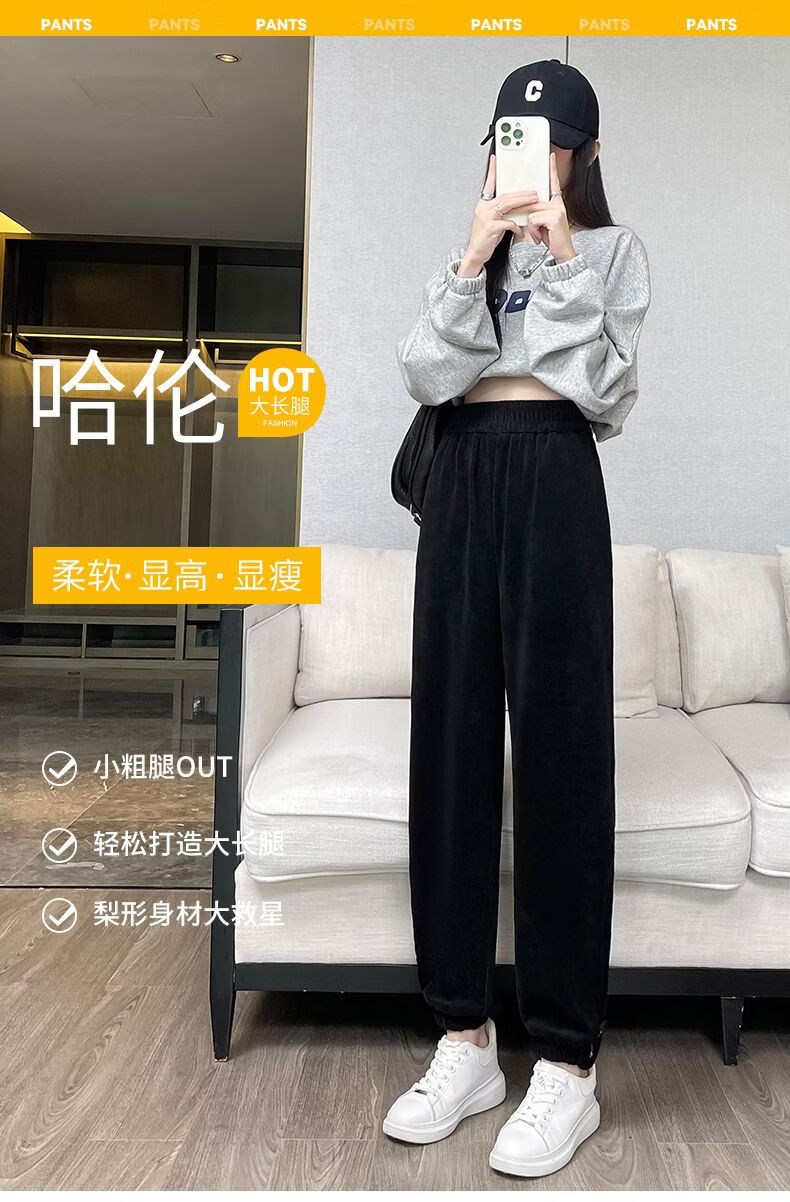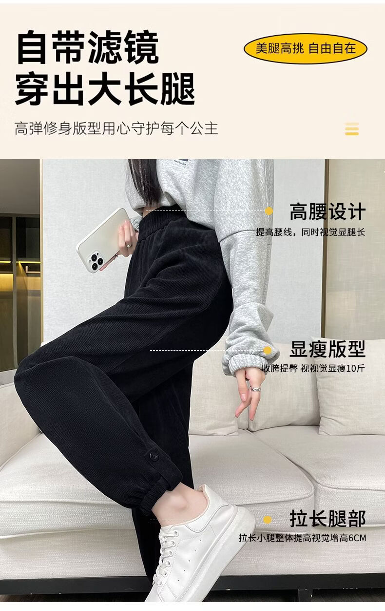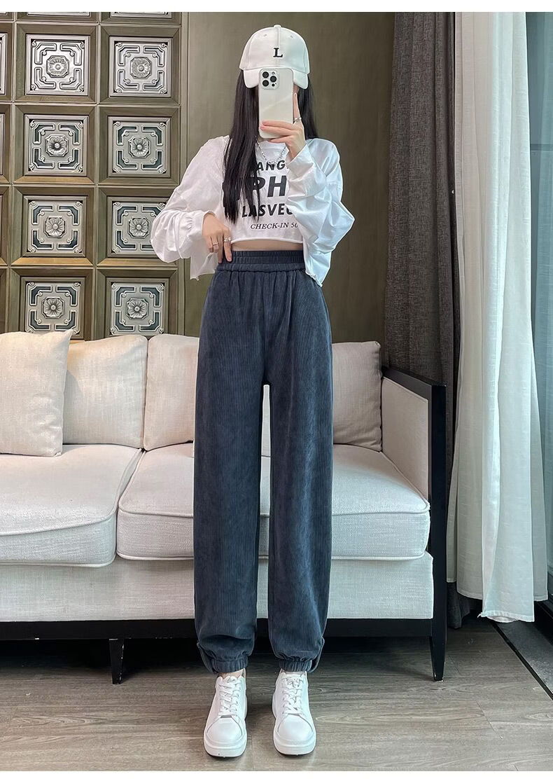 ROMON Chenille sweatpants for women autumn and winter 2026 new radish harem sweatpants corduroy pants plus velvet casual pants khaki 232 M recommended 98-110Jin Jin equals 0.5 kg